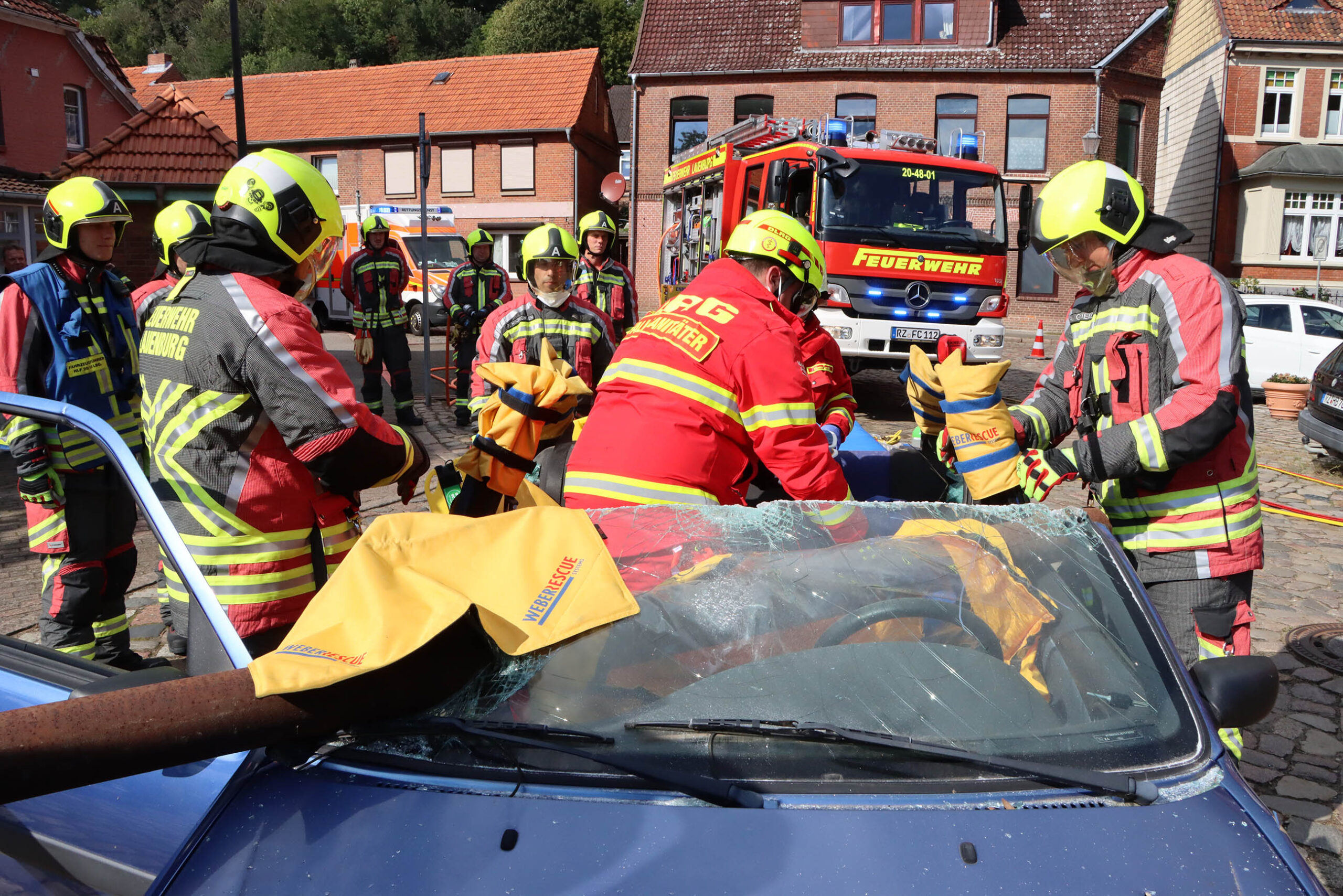Um 8 Uhr Morgens trafen die Mitglieder der Lauenburger Feuerwehr an der Wache an der Lauenburger Reeperbahn ein. Grund war die Abnahme der Leistungsbewertung Roter Hahn Stufe 5. Schon seit mehreren Wochen hatten sich die Mitglieder auf diesen Tag vorbereitet.