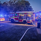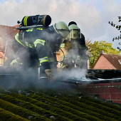 Unter dem Stichwort "Schuppenbrand" wurde die Feuerwehr am Freitagmorgen in ein Lauenburger Wohngebiet alarmiert. Beim ausrücken der ersten Kräfte meldete die Leitstelle über Funk, das es bereits mehrere Anrufe zu diesem Einsatz gibt und das Feuer nun auf einen Garagenkomplex übergreifen soll. Nach der kurzen Einsatzfahrt erreichten die Kräfte die Einsatzstelle. Das Feuer war in einer Schuppenanlage ausgebrochen, die Erreichbarkeit musste jedoch erst erkundet werden. Durch einen Garten in der Memellandstraße verschafften sich die Einsatzkräfte Zutritt zu dem Gelände. Unter Atemschutz ging ein Trupp schnell gegen die Flammen vor. Währenddessen erkundete der Einsatzleiter die Einsatzstelle von der anderen Seite. Dafür musste er mit dem ELW in eine Nebenstraße umsetzen. Aus dem Garagenkomplex drang dichter Qualm, was zum Anlass genommen wurde, das Stichwort auf "FEU 2" zu erhöhen. Damit rückten die Wehren aus Buchhorst, Schnakenbek, Krüzen sowie der B-Dienst der HLR nach. Während das Feuer im Anbau schnell eingedämmt war, übernahmen die eintreffenden Kräfte der Feuerwehr Buchhorst die Öffnung der Dachhaut. Mit mehreren Wärmebildkameras wurde nach Glutnestern gesucht. Die Feuerwehren aus Schnakenbek und Krüzen stellten Atemschutzgeräteträger in Bereitstellung. Nachdem jedoch die Kontrolle des Daches abgeschlossen war, konnte Schließlich die Rückmeldung "Feuer aus" gegeben werden. Für die Stärkung der Einsatzkräfte verteilte die ansässige Bäckerei Lührs Gebäck an die Einsatzkräfte. Dafür ein herzlicher Dank! - Die Einsatzstelle wurde schließlich an die Polizei übergeben.