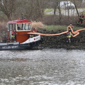 Eine Gewässerverunreinigung forderte am Dienstagmorgen die Einsatzkräfte der Lauenburger Feuerwehr. Mitarbeiter der Werft war die Verschmutzung aufgefallen, sie alarmierten sofort die Feuerwehr über den Notruf 112. Wehrführer Lars Heuer erkundete die Lage, forderte rasch seine Mitglieder nach. Das Arbeitsboot wurde besetzt, gleichzeitig brachte die Besatzung des Unimog auch das Rettungsboot zu Wasser. Von Land teilten sich die Mannschaften von HLF und TLF auf. Die Besatzung des Gerätewagen Öl hat derweil die benötigten Ölsperren ab, welche durch die Boote und die Mannschaften an Land in Stellung gebracht wurden. Gemeinsam mit der Wasserschutzpolizei aus Niedersachsen koordinierte Einsatzleiter Heuer seine Kräfte. Bei dem Einsatz stellte die Hitzler Werft dankenswerter Weise ein zusätzliches Arbeitsboot zur Verfügung. Nach rund 2 Stunden konnten die Einsatzkräfte an der Wache wieder aufklaren.