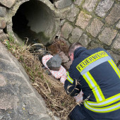 Nur wenige Augenblicke nachdem der erste Einsatz beendet war forderte der Bauhof Lauenburg Unterstützung durch die Feuerwehr an. Das Regenwasser aus der Oberstadt gelangt über Rohrleitungen in die Elbe. Die Gefahr: Gewässerverunreinigung, da nicht ausgeschlossen werden konnte das bereits Betriebsstoffe in die Kanalisation gelangt waren fuhren die Einsatzkräfte mit dem HLF, TLF sowie dem KdoW und GW-Öl in die Elbstraße. Vor mehreren Regenwasserabläufen mussten Absorber und Ölsperren gelegt werden.