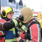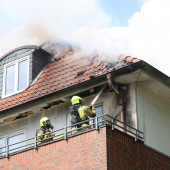 Zur Unterstützung der Feuerwehr Geesthacht rückte am Sonntagnachmittag die Drehleiter gemeinsam mit dem LF 10 aus. In der Mühlenstraße war es zu einem Dachstuhlbrand gekommen. Die Kräfte aus Geesthacht waren bereits im Einsatz und hatten ihre Drehleiter in einer Nebenstraße in Stellung gebracht. Lauenburgs Wehrführer Lars Heuer machte sich mit dem KdoW bereits vor den Großfahrzeugen auf den Weg um den Einsatz der Lauenburger Kräfte mit dem Einsatzleiter abzustimmen. Ersten Angaben zufolge, sollte sich das Feuer von einem Balkon über den Dachunterschlag in den Dachstuhl ausgebreitet haben. Die Drehleiter sollte vor dem Objekt in Stellung gebracht werden um das ausbreiten der Flammen im vorderen Bereich des Hauses einzudämmen. Um ausreichend Atemschutzträger bereitstellen zu können rückte das LF 10 mit 3 Trupps aus. Die Besatzung der Drehleiter rüstete sich mit Atemschutz aus, um sich gegen den gefährlichen Brandrauch zu schützen. Mit einem Einreißhaken wurden Dachpfannen gelöst um an darunter liegende Glutnester abzulöschen. Der Einsatz zog sich über mehrere Stunden hin. Schließlich konnte der Rückbau beginnen, sodass alle Kräfte einrücken konnten.