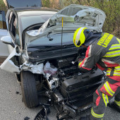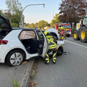 Zu einem Verkehrsunfall zwischen mehreren Fahrzeugen wurde die Feuerwehr am Donnerstagnachmittag alarmiert. Ersten Angaben zufolge gab es einen Zusammenstoß zwischen einem Transporter und einem Trecker. In der Folge kollidierten dann noch weitere Fahrzeuge. Aufgrund der unübersichtlichen Lage und unklarer Anzahl von Verletzten alarmierte die Leitstelle unter dem Stichwort „R5“ neben de Feuerwehr auch mehrere Rettungswagen sowie die Einsatzleitung Rettungsdienst. An der Einsatzstelle angekommen ging Einsatzleiter Heuer sofort zur Erkundung vor. Eingeschlossen war niemand mehr. Die Patienten wurden bereits durch die eingetroffenen Rettungsmittel versorgt. Unter den Unfallfahrzeugen war auch ein Elektrofahrzeug. Mithilfe des auf dem HLF mitgeführten Tablets konnten alle notwendigen Schritte durchgeführt werden, um das Fahrzeug stromlos zu machen. Der Akku wurde wiederholt mittels Wärmebildkamera kontrolliert. Nachdem alle Patienten durch den Rettungsdienst abtransportiert waren, war auch die Arbeit für die Feuerwehr erledigt. Die Einsatzstelle wurde an die Polizei übergeben.