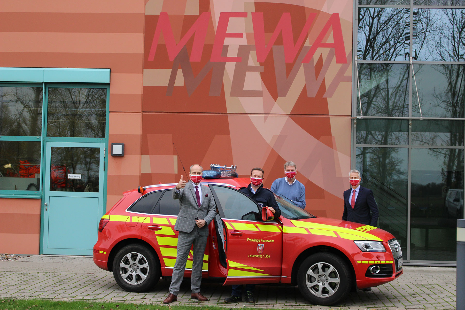 Mit einer großzügigen Spende unterstützt die Mewa Textil-Service AG die Freiwillige Feuerwehr Lauenburg. „Wir spenden für ihre Arbeit 4000 Euro. Der Feuerwehr zu helfen, ist Teil unseres sozialen Engagements und schon eine gute Tradition“, sagte Jörg Naegeli, der als Geschäftsführer für den Kundenservice und die Distribution im Lauenburger Standort des Unternehmens an der Hermann-Gebauer-Straße zuständig ist. „Seit sieben Jahren dürfen wir uns jährlich über eine Spende der Mewa freuen“, zeigte sich Wehrführer Lars Heuer dankbar. Das Geld soll der Jugendarbeit zugutekommen, damit der Nachwuchs für den späteren Dienst in der Freiwilligen Feuerwehr ausgebildet ist und als Team wachsen kann. Derzeit machen in der Lauenburger Jugendfeuerwehr 30 Kinder und Jugendliche im Alter von zehn bis 18 Jahren mit. In der Kinderabteilung sind 15 „Miniretter“ im Alter von sechs bis zehn Jahren dabei. Derzeit sind keine Treffen der Nachwuchsretter möglich Während die Kleinen sich spielerisch mit der Technik und der Arbeit der Feuerwehr vertraut machen, lernen die Jugendlichen die Dienstvorschriften und Strukturen kennen, beteiligen sich zudem an Wettbewerben. „Derzeit können wir wegen der Pandemie allerdings keine Treffen durchführen. Bis Ende des Jahres ist das leider so“, berichtete Lars Heuer. Doch die Hoffnung ist groß, dass es irgendwann im Laufe des nächsten Jahres wieder damit losgehen kann. Die Arbeit in der Jugendfeuerwehr bringe für die jungen Leute auch einen persönlichen Nutzen. „Das ehrenamtliche Engagement ist ein Plus bei den Bewerbungen für einen Ausbildungsplatz. Verantwortung zu tragen und sich für das Team einzusetzen, ist auch im Beruf wichtig“, erläuterte Jörg Naegeli.