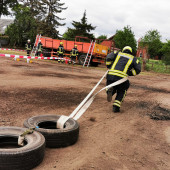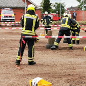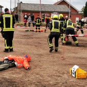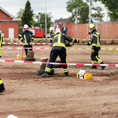 Bei bestem Wetter richtete im Jahr 2019 die Feuerwehr Lanze das Amtswehrfest aus. Neben Feuerwehren des Amtes Lütau war auch traditionell die Feuerwehr Lauenburg eingeladen. Etwas völlig neues hatten sich die Mitglieder der Nachbarwehr für die Wettkämpfe ausgedacht. Längst sind Schnelligkeitsübungen aus der Mode gekommen. – Deshalb stand in diesem Jahr „Fit for Fire“ auf dem Plan. Ein umfangreicher Parcours mit verschiedenen Stationen musste bewältigt werden. Zunächst begrüßte aber Amtswehrführer Thomas Netz alle Amts- Gast und Jugendfeuerwehren zu der Veranstaltung. Im Anschluss ging es dann an den Start. Immer zwei Feuerwehren traten gleichzeitig an. Den Start machte eine Station, an welcher mit einer Motorkettensäge, ein vorher festgelegtes Maß Holz gesägt werden musste. Das Stück diente im Anschluss als Staffelholz und wurde schnellstmöglich zur nächsten Station transportiert. Mit vollem Körpereinsatz mussten im nächsten Abschnitt zwei Autoreifen, befestigt an Schläuchen über den sandigen Boden geschleppt werden. Unter jubelndem Applaus zog Tarik Heins die Reifen über die Strecke, zum Start der Station 3. Hier wartete Tobias Bohne darauf, einen schweren Dummy zu retten. – Zurück zum Start und den Staffelstab holen. Weiter ging es zum Löschangriff. Mithilfe einer Kübelspritze musste ein Zielgetroffen werden, nachdem sie mit einem Feuerwehr-Knoten auf einen Anhänger gehoben wurde. Bei der letzten Station musste Heiko Raubenheimer nochmal alles geben. Mit einem Spalthammer mussten ein Baumstamm im Autoreifen über eine Distanz von 10 Meter geschlagen werden. Schließlich sollte noch ein geworfener Leinenbeutel das Ziel treffen. Noch vor dem Rivalen, der Feuerwehr Buchhorst beendete die Staffel den Parcours, ob das aber für den Sieg reichte, stand jetzt noch nicht fest. Um die Zeit für wartende Feuerwehren zu überbrücken stand noch eine extra Station ohne Wertung bereit. Zum Bullenreiten konnten die Mitglieder freiwillig antreten. Schließlich führte der traditionelle Marsch durch die Gemeinde, angeführt vom Feuerwehr-Musikzug Lauenburg Süd alle teilnehmenden Feuerwehren in die große Festhalle. Hier fand zum Ende der Veranstaltung auch die Siegerehrung statt. – Bevor die Plätze verkündet wurden, wurden jedoch auch noch Beförderungen durchgeführt. Schließlich kam das, worauf alle gewartet hatten. Die Platzierungen wurden verkündet. Auf Platz 4 von 11 landete die Feuerwehr Lauenburg, die Nachbarwehr aus Buchhorst sicherte sich Platz eins. Sie hat am wenigsten Fehlerpunkte bekommen. – Unsere Jugendfeuerwehr lag vor der JF Basedow auf Platz 1.