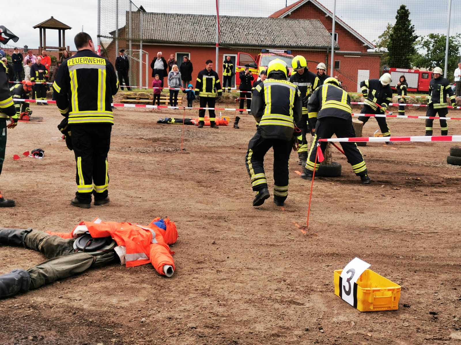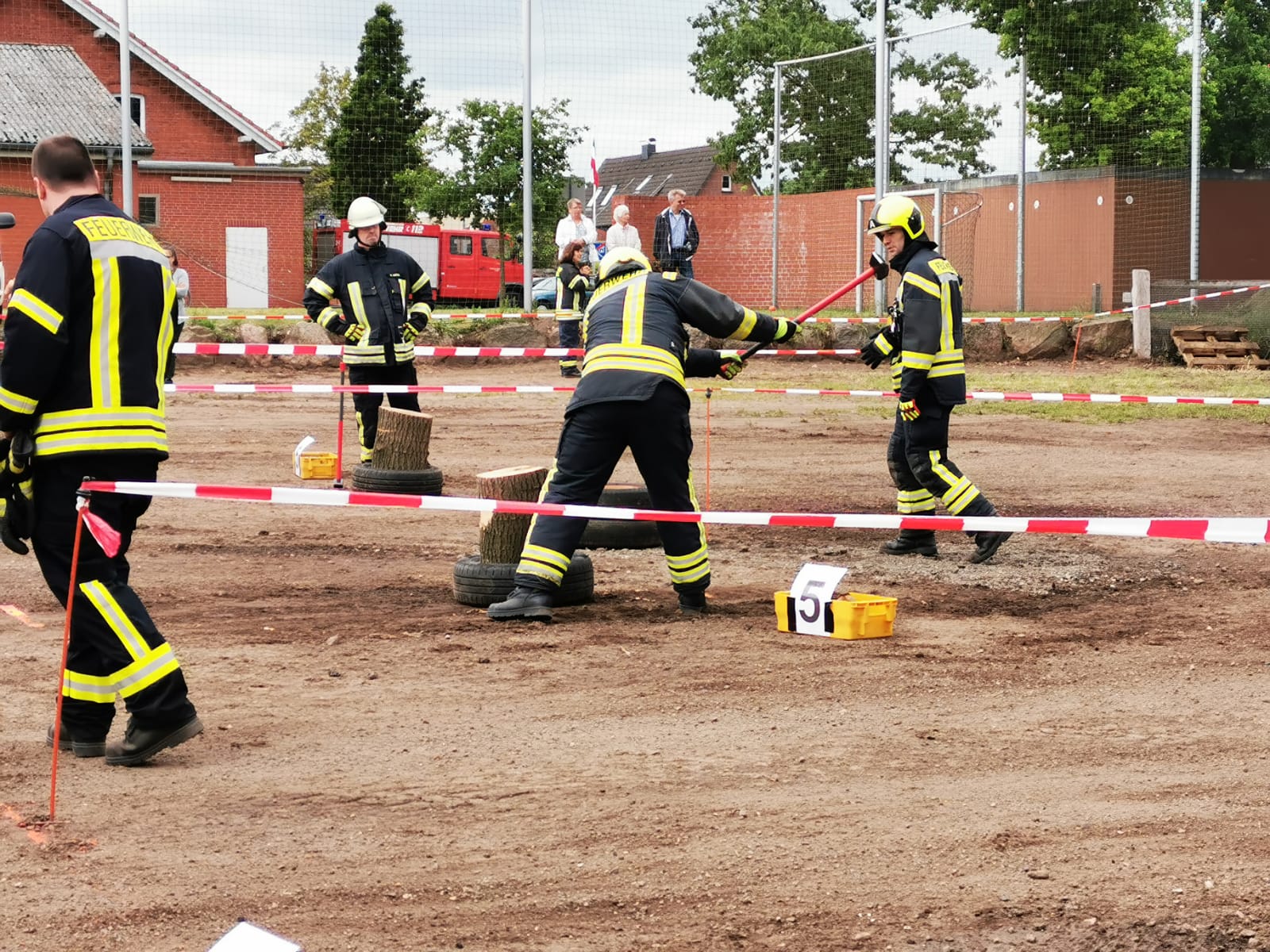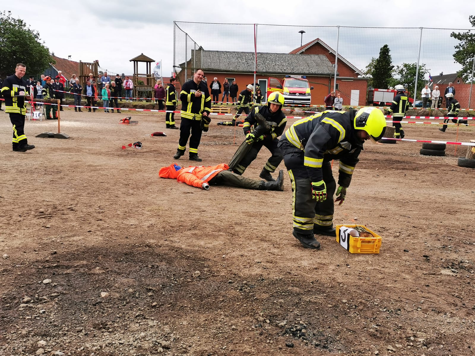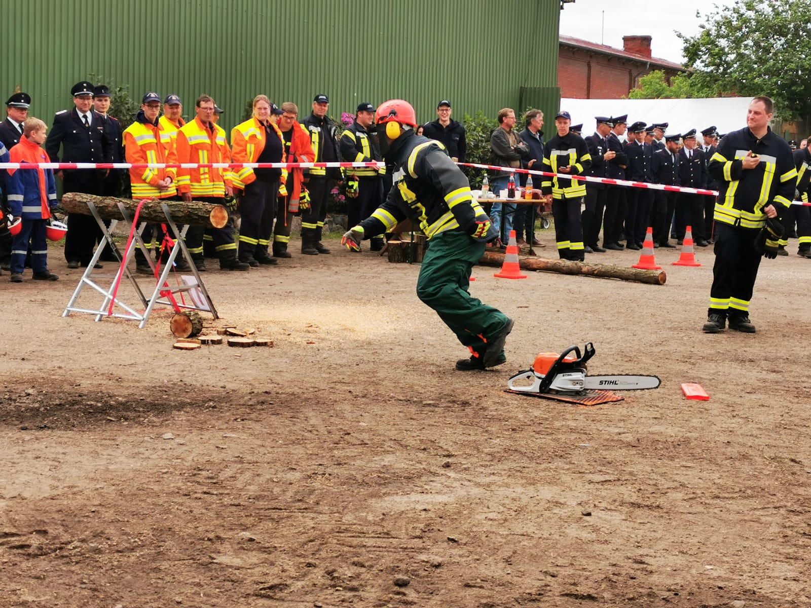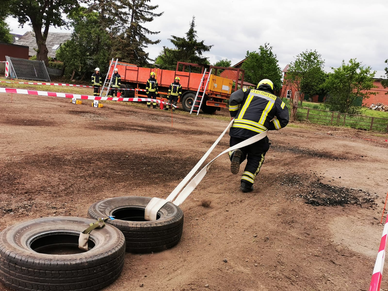 Bei bestem Wetter richtete im Jahr 2019 die Feuerwehr Lanze das Amtswehrfest aus. Neben Feuerwehren des Amtes Lütau war auch traditionell die Feuerwehr Lauenburg eingeladen. Etwas völlig neues hatten sich die Mitglieder der Nachbarwehr für die Wettkämpfe ausgedacht. Längst sind Schnelligkeitsübungen aus der Mode gekommen. – Deshalb stand in diesem Jahr „Fit for Fire“ auf dem Plan. Ein umfangreicher Parcours mit verschiedenen Stationen musste bewältigt werden. Zunächst begrüßte aber Amtswehrführer Thomas Netz alle Amts- Gast und Jugendfeuerwehren zu der Veranstaltung. Im Anschluss ging es dann an den Start. Immer zwei Feuerwehren traten gleichzeitig an. Den Start machte eine Station, an welcher mit einer Motorkettensäge, ein vorher festgelegtes Maß Holz gesägt werden musste. Das Stück diente im Anschluss als Staffelholz und wurde schnellstmöglich zur nächsten Station transportiert. Mit vollem Körpereinsatz mussten im nächsten Abschnitt zwei Autoreifen, befestigt an Schläuchen über den sandigen Boden geschleppt werden. Unter jubelndem Applaus zog Tarik Heins die Reifen über die Strecke, zum Start der Station 3. Hier wartete Tobias Bohne darauf, einen schweren Dummy zu retten. – Zurück zum Start und den Staffelstab holen. Weiter ging es zum Löschangriff. Mithilfe einer Kübelspritze musste ein Zielgetroffen werden, nachdem sie mit einem Feuerwehr-Knoten auf einen Anhänger gehoben wurde. Bei der letzten Station musste Heiko Raubenheimer nochmal alles geben. Mit einem Spalthammer mussten ein Baumstamm im Autoreifen über eine Distanz von 10 Meter geschlagen werden. Schließlich sollte noch ein geworfener Leinenbeutel das Ziel treffen. Noch vor dem Rivalen, der Feuerwehr Buchhorst beendete die Staffel den Parcours, ob das aber für den Sieg reichte, stand jetzt noch nicht fest. Um die Zeit für wartende Feuerwehren zu überbrücken stand noch eine extra Station ohne Wertung bereit. Zum Bullenreiten konnten die Mitglieder freiwillig antreten. Schließlich führte der traditionelle Marsch durch die Gemeinde, angeführt vom Feuerwehr-Musikzug Lauenburg Süd alle teilnehmenden Feuerwehren in die große Festhalle. Hier fand zum Ende der Veranstaltung auch die Siegerehrung statt. – Bevor die Plätze verkündet wurden, wurden jedoch auch noch Beförderungen durchgeführt. Schließlich kam das, worauf alle gewartet hatten. Die Platzierungen wurden verkündet. Auf Platz 4 von 11 landete die Feuerwehr Lauenburg, die Nachbarwehr aus Buchhorst sicherte sich Platz eins. Sie hat am wenigsten Fehlerpunkte bekommen. – Unsere Jugendfeuerwehr lag vor der JF Basedow auf Platz 1.
