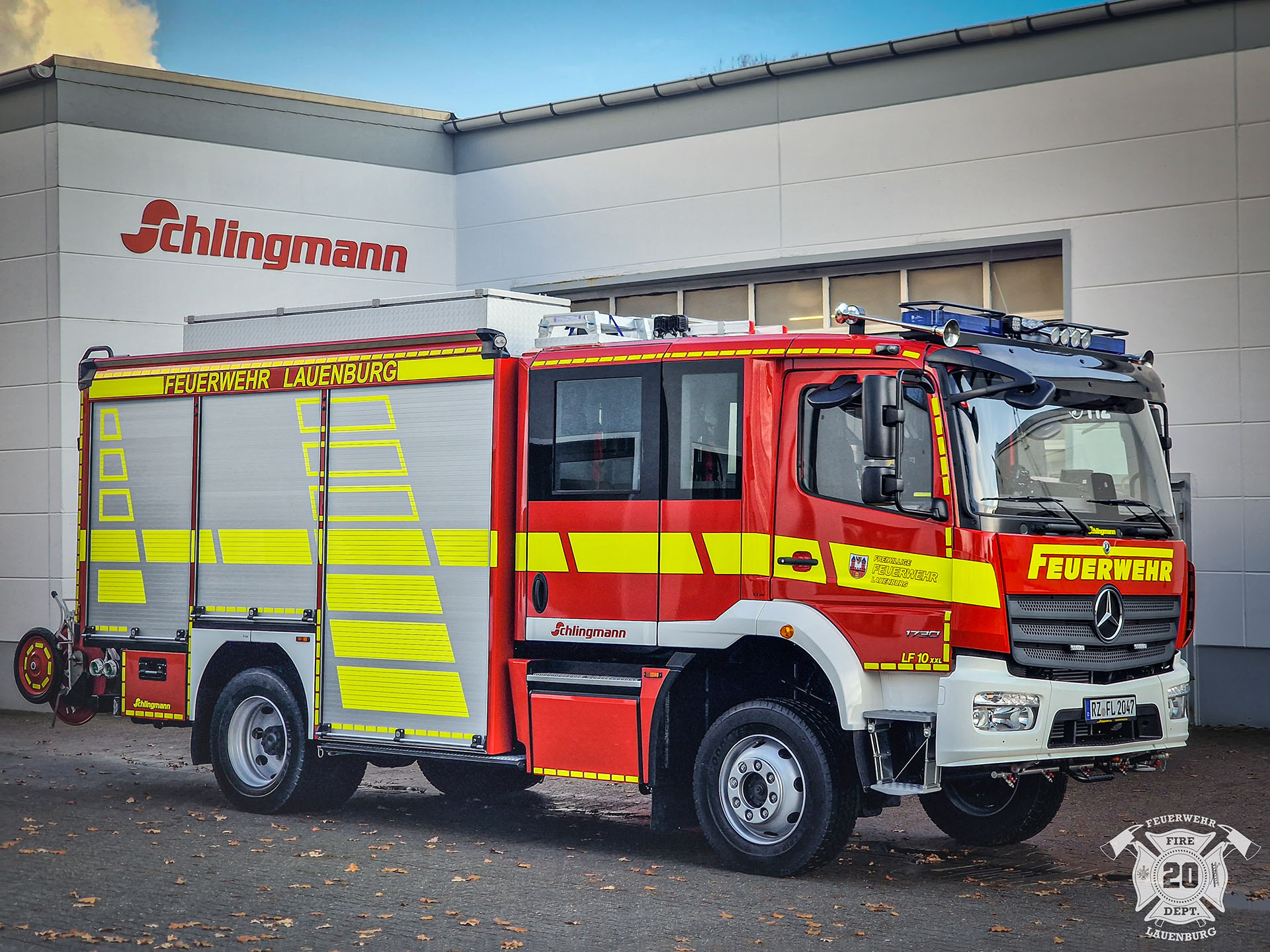 Die Kräfte waren gerade erst von einem PKW Brand eingerückt, da fuhr auch das neue LF 10 über die Lauenburger Elbbrücke. An der Wache war schon alles für den Empfang des neuen Löschfahrzeug vorbereitet. Am Mittwoch Morgen machte sich eine Abordnung der Feuerwehr auf den Weg nach Dissen, um das neue Löschfahrzeug, welches schon über lange Zeit geplant war abzuholen. „Immer wieder hatte sich der Liefertermin aufgrund von Lieferengpässen verschoben. Doch nun hat es doch noch rechtzeitig zum Weihnachtsfest geklappt“ freut sich Lauenburgs Wehrführer Lars Heuer. Nach der technischen Abnahme von Fahrzeug und Beladung im Werk machte sich die Abordnung auf den Rückweg. Auf dem Hof der Feuerwehr hatten sich zahlreiche Mitglieder versammelt, den Grill und eine Feuerschale aufgebaut. Lautstark fuhr das neue LF 10 XXL über den Schüsselteich zur Wache. Im Blaulichtgewitter wurde es von staunenden Blicken in Empfang genommen. Die Mitglieder konnten einen ersten Blick auf das Fahrzeug werfen, das im technischen dem LF 20 gleicht. Die Beladung ist jedoch eine andere. Die Mitglieder der Arbeitsgruppe erklärten viele neue Ausrüstungsgegenstände und neuere Technik am Fahrzeug. Das LF 10 löst das LF 8 aus Baujahr 1996 ab und bringt einen enormen technischen Fortschritt. So verfügt das Fahrzeug zum Beispiel über einen 2500l fassenden Wassertank, einen Frontsprühbalken, um auch während der Fahrt Wasser abgeben zu können und eine umfangreichere Beladung zur Brandbekämpfung. Die offizielle Übergabe für Mitglieder und geladene Gäste findet am 8. Januar statt. In Kürze werden wir auf unseren Seiten umfassend über den Neuzugang berichten.