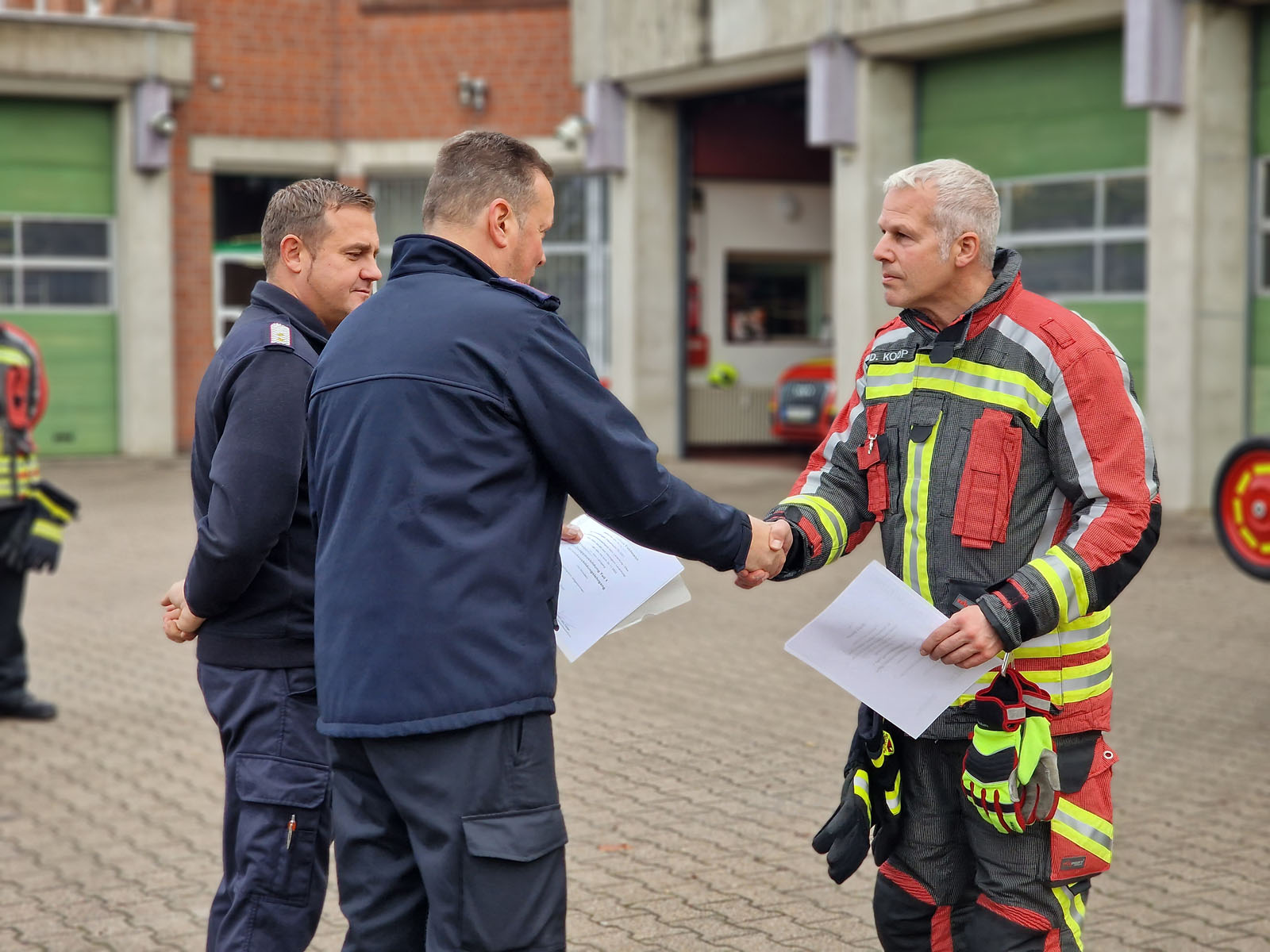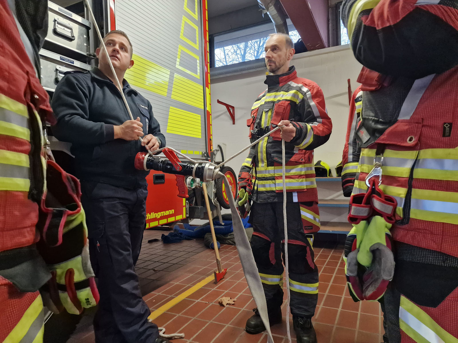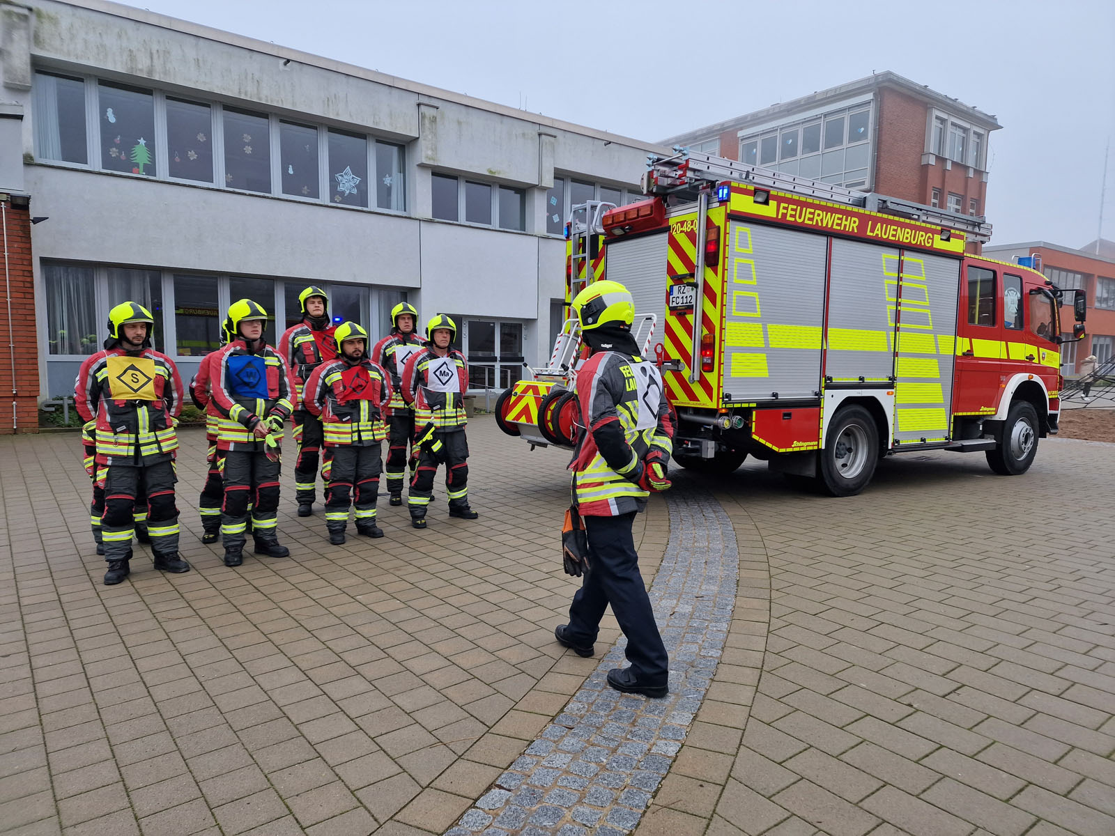 Am Samstag fand die Abschlussprüfung der Feuerwehr Grundausbildung statt. Eine Frau und 7 Männer hatten zuvor über mehrere Wochen die 70 Stunden umfassende Ausbildung in der Lauenburger Feuerwehr durchlaufen. „Der Grundlehrgang ist Voraussetzung für den Werdegang in jeder Feuerwehr.“ erklärt Wehrführer Lars Heuer. „Grundlagen wie die Strukturen in der Feuerwehr, Rechte und Pflichten aber auch Brandlehre gehören zu den Themenfeldern“ ergänzt sein Stellvertreter Dennis Lühr. Die Mitglieder erlernten in der Ausbildung den sicheren Umgang mit der technischen Ausrüstung der Großfahrzeuge. Zum Beispiel dem Hydraulischen Rettungssatz, mit dem bei einem Verkehrsunfall Patient aus einem deformierten Fahrzeug befreit werden können. Aber auch die Aufgabenverteilung bei einem Brandeinsatz wurde geprobt. „Der Löschangriff nach FwDv 3 (Feuerwehr Dienstvorschrift 3) ist standardisiert und muss beherrscht werden“ erklärt Mustafa Barcin, der bereits seit der Jugendfeuerwehr dabei ist. Auch der Einsatz von tragbaren Leitern war Bestandteil der Ausbildung und wurde an diesem Samstag abverlangt. Um 8 Uhr ging es für die Prüflinge los. Zunächst forderte ein theoretischer Test das erlernte Wissen ab. Anschließend mussten verschiedene Feuerwehrknoten angelegt und erklärt werden. Nach einer kurzen Verschnaufpause ging es an die Albinus Gemeinschaftsschule. Der Löschangriff stand auf dem Plan, die Anwärter wurden in Trupps eingeteilt. Symbole kennzeichneten die verschiedenen Trupps und damit verbundene Aufgaben. Routiniert gingen die Mitglieder vor. Binnen kurzer Zeit kam Wasser am 1. Rohr an. „Als Maschinist bediene ich die Pumpe und Aggregate am Fahrzeug“ erklärt Detlef Koop, einer der Anwärter. „Ich achte darauf, das jederzeit genügend Wasser an den Strahlrohren ankommt“ so Koop weiter. Gleichzeitig baute der Wassertrupp eine Schlauchleitung von einem nahen Hydranten auf. Dennis Bünning, der erst vor kurzem aus Frankfurt nach Lauenburg gezogen ist, verlegte mit Collin Jänicke der ebenfalls bereits in der Jugendfeuerwehr war, mithilfe einer Schlauchhaspel die B-Schläuche zum Hydranten. Mit Bravour meisterte die Mannschaft diese Prüfung. Nachdem alles aufgeklart war, mussten Leitern aufgestellt werden. Der Gruppenführer teilte seine Mannschaft ein, und schon ging es los. Die 3-teilige Schiebleiter wurde vom Dach des HLF geholt und zum Aufstellort gebracht. Mit klaren Kommandos dirigierte Leif Späth seine Trupps in die richtige Position. Eines der Stützbeine sicherte Madeline Jänicke, die als einzige Frau in diesem Jahr an der Anwärterausbildung teilnahm. Sie war mit ihren beiden Mitstreitern bereits seit langer Zeit in der Jugendfeuerwehr und sogar als Jugendgruppenleiterin eingesetzt. Nachdem der Einsatz der Schiebbleiter geprobt war, kam auch die 4-teilige Steckleiter zum Einsatz. Hier hatte Brian Busch das Kommando. Er lenkte seine Mannschaft in die richtige Position und stellte die Leiter, wie in der FwDv 10 gelernt auf. Schließlich ging es zurück zur Feuerwache, wo Prüfer Dennis Lühr die Nachbesprechung leitete. Kurz darauf konnte Wehrführer Lars Heuer die Lehrgangszertifikate an die Teilnehmer überreichen. Ferdinand Feldmann freute sich sehr. „Mit absolvierter Grundausbildung können nun auch weitere Lehrgänge an der Feuerwehr technischen Zentrale in Elmenhorst besucht werden“ erklärt er. „So möchte ich nach dem Funklehrgang zum Atemschutzgeräteträger ausgebildet werden“ sagt Feldmann. „Wir freuen uns riesig über 8 neue ausgebildete Mitstreiter in unseren Reihen und würden uns freuen auch im kommenden Jahr wieder einen Grundlehrgang mit neuen Mitgliedern durchzuführen“ sagt Lars Heuer abschließend. Interessierte Bürger sind bei der Feuerwehr jederzeit herzlich willkommen. Der Dienstplan wird auf der Webseite der Lauenburger Feuerwehr unter „Termine“ veröffentlicht.