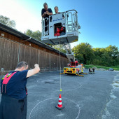 Erstmalig in der Geschichte richtete die Feuerwehr Lauenburg die Ausbildungs- und Übungsfahrt des Amtes Lütau aus. Bereits seit Wochen war eine Gruppe von Mitgliedern der Lauenburger Wehr mit den Vorbereitungen und Planungen beschäftigt. Insgesamt mussten 10 Stationen ausgearbeitet werden, an denen die Wehren des Amtes Lütau, sowie die Jugendfeuerwehr Lauenburg Aufgaben absolvieren mussten. Dabei galt es bereits erlerntes Wissen in der Praxis einzusetzen. So mussten die Kräfte in Lanze auf dem Hof des Lohnunternehmen Jürgen Grimm eine Person unter einem schweren Gewicht mit Hilfe von Hebekissen befreien. Dabei musste die Last stets gesichert und die Person betreut werden. Am Lauenburger Klärwerk musste eine Person aus einem LKW gerettet werden. Dabei mussten die Kräfte auf engstem Raum in der Kabine agieren. An der Rettungswache in Basedow unterstützten Kollegen der HLR die Veranstaltung. Das Wissen rund um Erste-Hilfe wurde abgefordert. Neben einem theoretischen Fragebogen mussten die Einsatzkräfte auch eine Reanimation mit einem AED durchführen. Schließlich musste der Patient mittels Tragetuch auf die die neue Elektrische Trage befördert werden. Nach einer kurzen Vorführung der neuen Technik des RTW ging es für die Mitglieder weiter. Bei einer Wasserrettungsübung am Kieswerk Mennecke musste eine Person mit dem Schlauchboot aus dem Wasser gerettet werden. Dabei war das Zusammenspiel von Besatzung des Bootes sowie an Land entscheidend. Denn alle Stationen wurden mit Punkten bewertet. In Buchhorst ging es neben einer Spiel -und Spaß Station auch um Geschicklichkeit. Am Korb der Drehleiter hing ein Ball der an verschiedenen Stellen stehenden Pylonen abgesetzt werden musste. Schließlich war noch Treffsicherheit gefragt. Aus 25m höhe musste eine Wasserbombe möglichst zielgenau geworfen werden. Insgesamt gab es 10 Stationen rund um die Feuerwehr, an denen alle Wehren ihr Können zeigen konnten. Nachdem alle Wehren am Nachmittag wieder an der Feuerwache eingetroffen waren, gab es einen Imbiss und schließlich die Siegerehrung. Die Feuerwehr Buchhorst verteidigte ihren 1. Platz und konnte damit den Wanderpokal behalten. 2. Wurde die Feuerwehr Lanze, auf Platz 3 folgte Basedow. Die Jugendfeuerwehr Lauenburg konnte mit den Aktiven mithalten und belegte den 7. Platz!