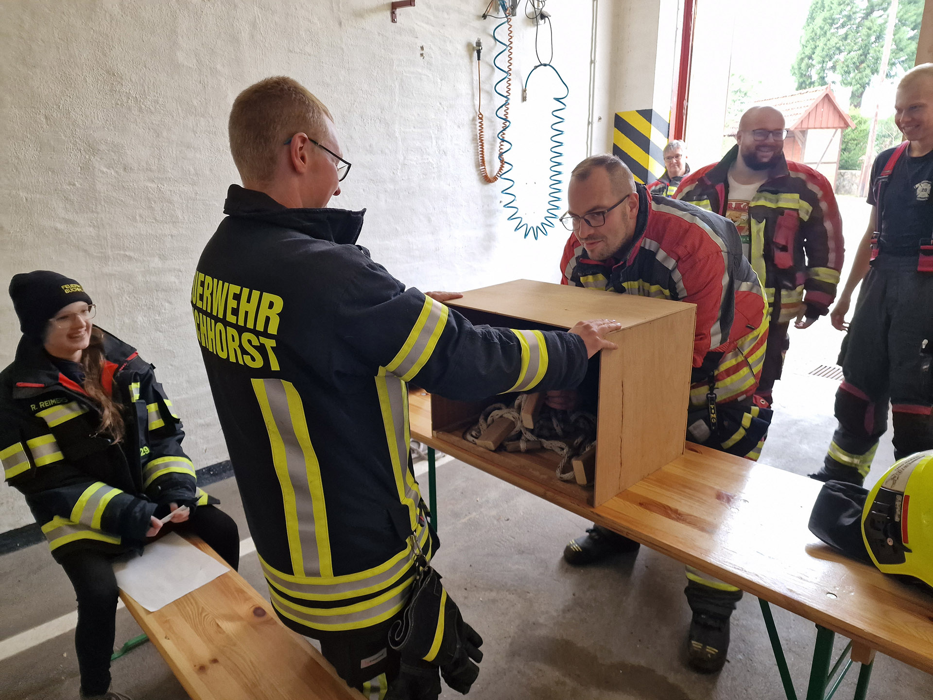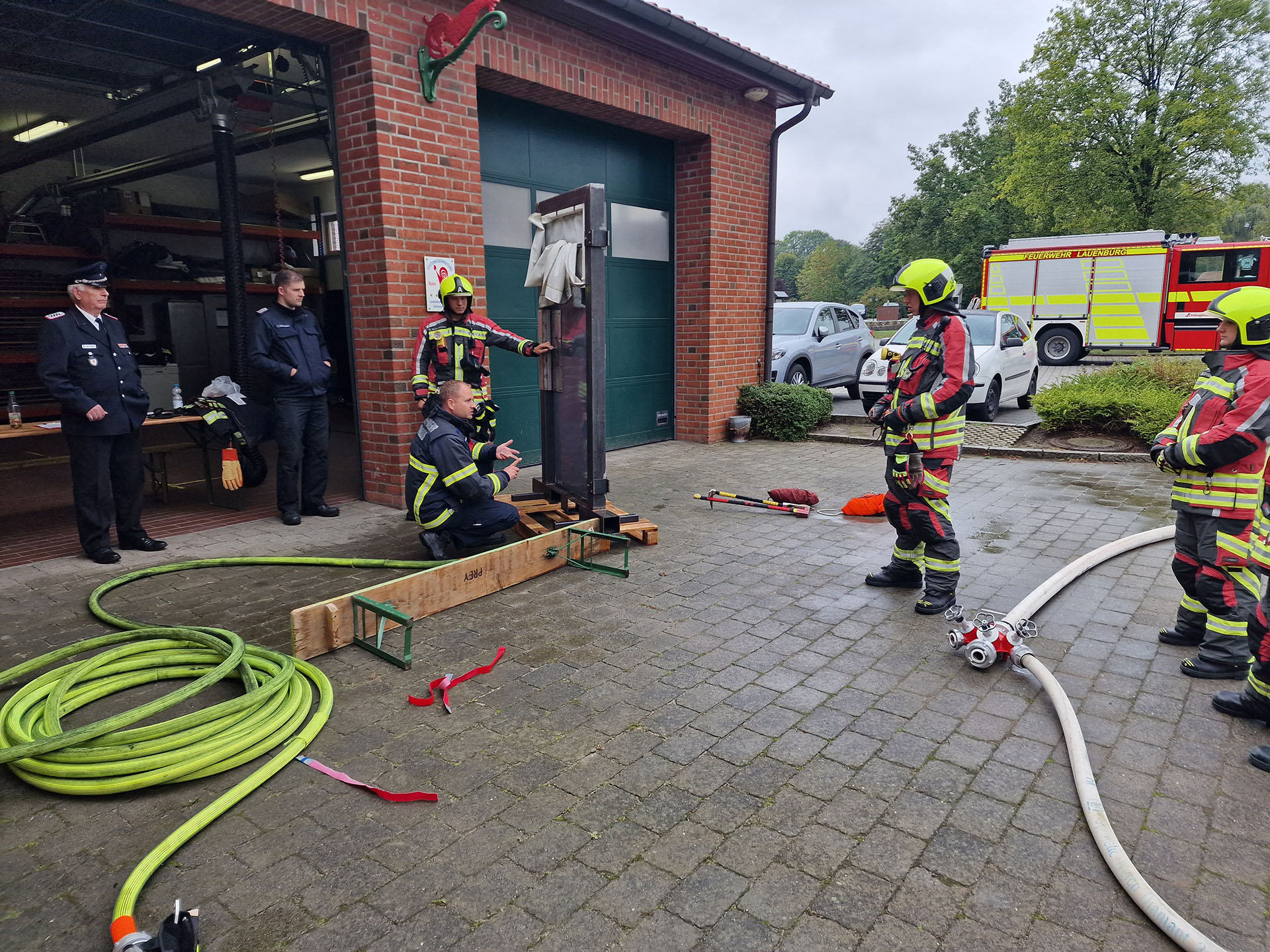 Am Sonntag fand nach einer Corona bedingten Pause wieder die Ausbildungs- und Übungsfahrt des Amtes Lütau statt. In diesem Jahr richtete die Feuerwehr Buchhorst das Event aus. Früh um 7 Uhr ging an der Feuerwache in Buchhorst los. Nach einer Stärkung mit Kaffee und Brötchen schwärmten die Feuerwehren zu den verschiedenen Stationen aus. An verschiedenen Orten im Amt mussten die Besatzungen der verschiedenen Fahrzeuge mit ihrem Equipment Aufgaben bewerkstelligen. So ging es für die Lauenburger zuerst nach Lanze, eine Katze musste von einem Baum gerettet werden. Dazu wurde die 3-Teilige Steckleiter vom Fahrzeug entnommen und in Stellung gebracht. Zusätzlich gab es einige theoretische Fragen. Weiter ging es durch Buchhorst, auf dem Gelände der Firma Hansebeton musste ein Übungsdummy über eine schiefe Ebene gerettet werden, kurz darauf fanden sich die Kräfte bei einem angenommenen Wohnungsbrand in einem Einfamilienhaus wieder. Unter Atemschutz ging der Trupp in das verwinkelte Innere einer Werkhalle vor. Das THW stelle ebenso eine Station. Mit einem Greifzug musste ein Fahrzeug gegen Wegrollen gesichert werden. Die Aufgabe wurde bewerkstelligt und durch Tipps und Tricks der Kollegen vom THW abgerundet. In weiteren Stationen mussten Knoten blind ertastet und anschließend durchgeführt werden. In Krüzen war technischer Verstand und der Umgang mit dem Gefahrguthelfer gefragt. Schließlich ging es zur letzten Station, in Krukow war unter einem Baumstamm eine Übungspuppe eingeklemmt. Mit Hebekissen wurde der schwergewichtige Stamm angehoben, um die Person zu retten. Dabei wurde der Freiraum stets mit Holz gesichert und die Last abgestützt. Nachdem die Person gerettet war, wurde zurück gebaut und es ging zum Mittagessen nach Buchhorst. Nach Grußworten von Amtswehrführer Thomas Netz und Amtsvorsteher Gerd Lüttge vollzog Florian Lüttge die Siegerehrung. – „Jeder hat heute gewonnen, der ein bisschen neues Wissen mitgenommen hat“ unterstreicht der Buchhorster Wehrführer. Dennoch gab es Punkte an den einzelnen Stationen, die eine Platzierung zeigen. Die Frauen und Männer aus Lauenburg sicherten sich den 1. Platz und rückten schließlich stolz wieder ein. – Wir bedanken uns bei den Amtsfeuerwehren, das wir wieder Teil der Veranstaltung sein durften.