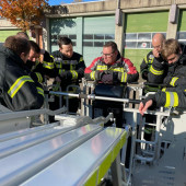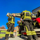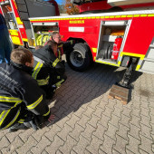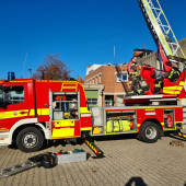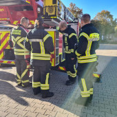 Am Donnerstag besuchte der aktuelle Ausbildungslehrgang der Integrierten Regionalleitstelle Süd sowie ein Mitstreiter der Kooperativen Leitstelle West die Feuerwehr Lauenburg. Thema war der Einsatz von Hubrettungsmitteln. Die Auszubildenden sind allesamt erfahrene Mitarbeiter aus dem Rettungsdienst. Zuletzt hatten sie in ihrer Ausbildung eine Feuerwehrgrundausbildung zum Truppführer erfolgreich bestanden. In verschiedenen Modulen lernen die werdenden Disponenten nun die Umfangreichen Themen kennen. Darunter den Einsatz von Drehleitern und Hubrettungsbühnen. Um den Einsatz besser planen und abschätzen zu können wurde dieser Ausbildungstag erarbeitet. Zunächst wurde theoretisches Wissen rund um die Spezialfahrzeuge vermittelt. Rettungshöhen, mögliche Reichweiten und Einsatzmöglichkeiten wurden besprochen. Anschließend ging es zur Praxis. Nachdem bei der Fahrzeugkunde Ausrüstungsgegenstände wie Sprungpolster, Sturmleinen, Streusalz und deren Einsatzzweck erklärt wurde konnten die Teilnehmer selbst hoch hinaus. Mit dem Rettungskorb ging es auf bis zu 32m Arbeitshöhe. In verschiedenen Übungen wurde n Szenarien aus vergangenen Einsätzen durchgeführt. So zum Beispiel die Rettung mittels Schleifkorbtrage. Bis Feierabend waren alle Teilnehmer aktiv und motiviert dabei.