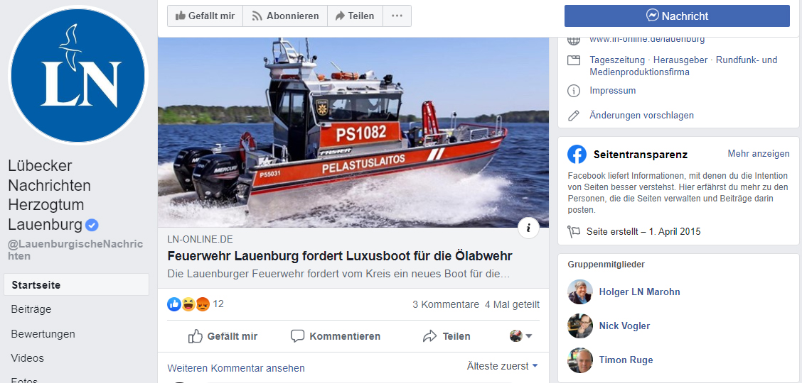 Titelbild: Screenshot Facebookseite der LN Online Herzogtum Lauenburg, weitere Fotos: FF Lauenburg und Faster Boats