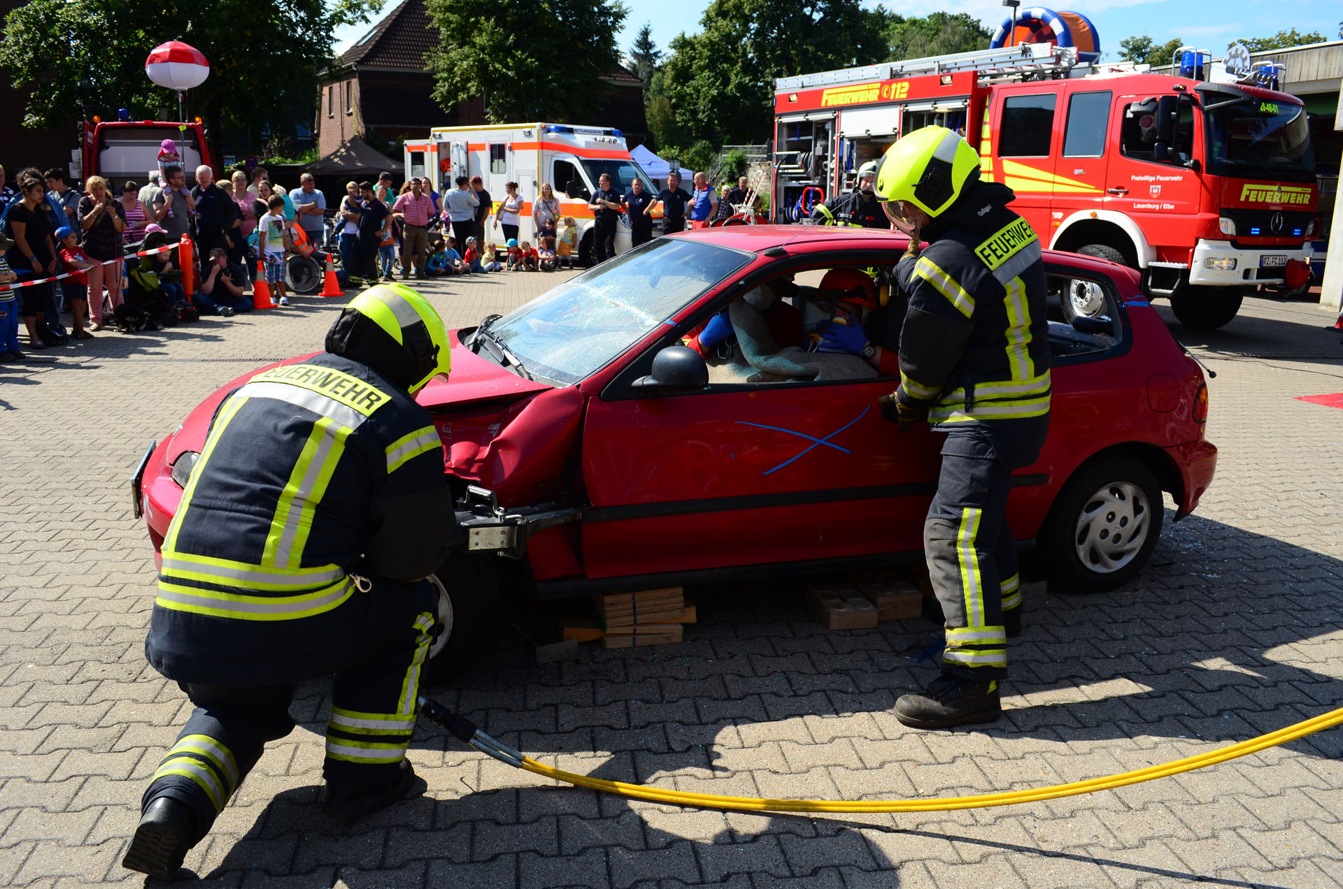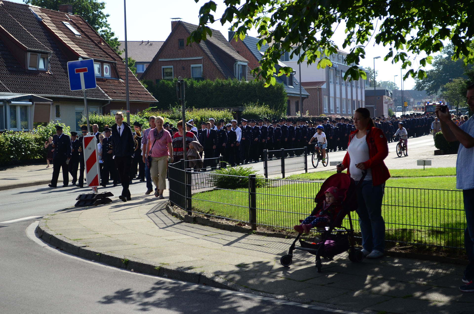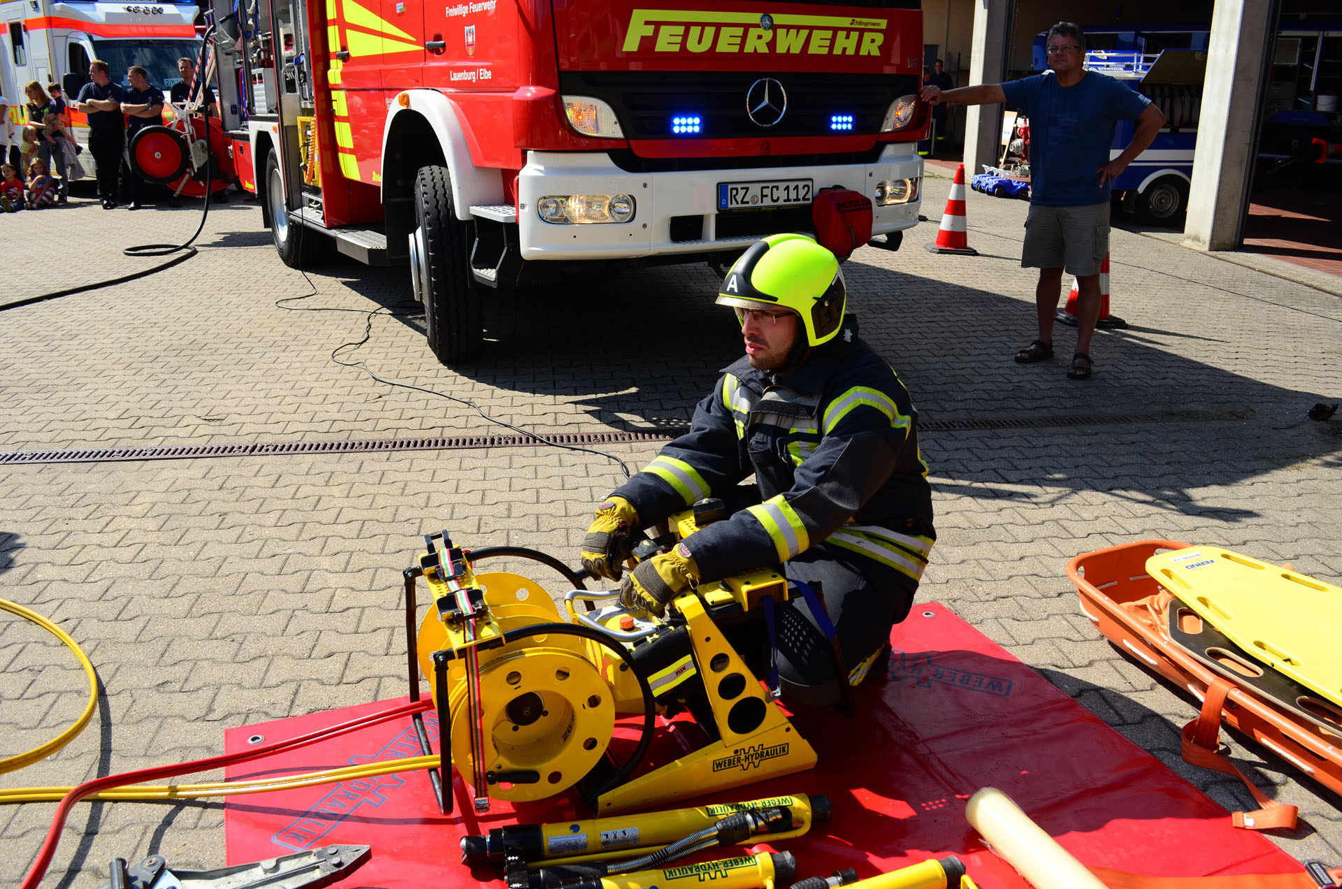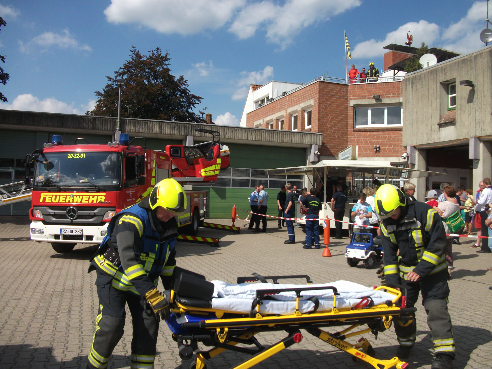 140 Jahre Freiwillige Feuerwehr Lauenburg Elbe und 25 Jahre Partnerschaft zur Feuerwehr Boizenburg wurden vom 28. – 29. August in Lauenburg gefeiert. Ein großer Kommerz lud zahlreiche Gäste von Politik, befreundeten Vereinen und Institutionen, Freunde und Gäste der Feuerwehr am Freitagabend ein. Pünktlich um 19:00Uhr begrüßte Wehrführer Lars Heuer die Gäste, freute sich sehr Über den zahlreichen Besuch, der sogar aus Luxemburg angereist war. Vertreter der Stadt wie zum Beispiel Bürgermeister Thiede und den Bürgervorsteher von Lauenburg konnte Heuer ebenso begrüßen wie Verantwortliche der Stadt Boizenburg. Rund 200 Gäste fanden in der Fahrzeughalle der Feuerwache Platz, die bereits Tage vorher gründlich gesäubert wurde. Dekoration hauchte dem Gebäude einen wohnlichen Charakter ein, die strahlenden Einsatzfahrzeuge auf dem Innenhof geleiteten die Gäste zum Eingang. In Zahlreichen Grußworten überbrachten Vertreter von Politik und befreundeten Feuerwehren sowie Vereinen beste Glückwünsche zum 140-Jährigen Bestehen. Die durchweg ehrenamtliche Arbeit ist hoch anzusehen, verdient höchsten Respekt hieß es. Damit auch künftig die Einsatzkräfte aber auch die Jugendfeuerwehr sicher zu Einsätzen und Ausflügen kommen überreichte Bürgermeister Andreas Thiede symbolisch ein gebasteltes Mannschaftstransportfahrzeug, „auf dem Bewusst keine Marke abgebildet ist“ unterstreicht Thiede. Zur Zeit läuft die Ausschreibung für das neue Fahrzeug, dass den Ansprüchen der Feuerwehr genügen muss, um den täglichen Aufgaben Dienst zu leisten, erklärt er. Nachdem die Grußworte überbracht wurden, konnte noch eine Beförderung vorgenommen werden. Schriftführer Ingo Drewelowsky wurde im Rahmen seiner Tätigkeit vom Hauptfeuerwehrmann zum Löschmeister befördert. Anschließend steuerte Heuer gezielt auf 20:30 Uhr zu, die Enthüllung der neuen Internetpräsenz stand bevor. Unter Leitung von Sebastian Majchrzak bauten vier engagierte Mitglieder die neue Webpräsenz für moderne Öffentlichkeitsarbeit aus. Darunter sind auch Andreas Rogge, Timo Naujoks und Sebastian Porthun. Für die Enthüllung hatten sie sich etwas ganz besonderes einfallen lassen, eine Minute vorher erschien auf der großen Leinwand ein Countdown. Die Spannung stieg, bevor schließlich der Lauenburg typische Melderton erschrill. Hektische Bilder zeigten den nächtlichen Einsatzablauf, aufschrecken im Schlaf, rein in die Schuhe und mit dem Auto zur Wache… – Dort in die Einsatzkleidung und mit den Großfahrzeugen zum Einsatzort. – Anschließend wurde es wieder ruhiger, der Blick über die Schulter zeigte die Eingabe von www.feuerwehr-lauenburg.de im Suchfeld, anschließend war die neue Webpräsenz aktiv. Der Trailer sollte die stätige Aktualität der Webseite unterstreichen. Einsätze sollen künftig so zeitnah und informativ wie möglich eingepflegt werden. Nach der Veröffentlichung zückten viele Ihr Handy, um die neuen Seiten zu erforschen, was problemlos möglich ist, denn die neue Webseite ist vollständig mobilfähig. Im Anschluss gab es ein reichhaltiges Buffet, das allen hungrigen Gästen und Mitgliedern schmeckte. Am nächsten Morgen ging es schon früh los, am Schloss startete der große Marsch durch die Stadt, die gesamte Feuerwehr Lauenburg war mit der Einsatzabteilung, Ehren- und Jugendfeuerwehr angetreten. Daneben Mitglieder der Feuerwehr Boizenburg und zahlreiche aktive der umliegenden Gemeindewehren. Beeindruckend setzte sich der lange Marsch in Bewegung durch den Askanierring ging es über die Berliner Straße und den Büchener Weg schließlich in die Reeperbahn. Dort ging der Marsch in den Tag der offenen Tür über. Auf dem großen Freigelände lockten Spiel und Spaß für die kleinen genauso wie „Mit-mach Stationen“ für Erwachsene. Viele Besucher strömten zu den frisch heraus geputzten Löschfahrzeugen auf dem Parkplatz, in Reih standen hier die Großfahrzeuge, offene Geräteräume luden zum Staunen ein. Mitglieder erklärten interessierten die Geräte und Technik, verdeutlichten so den Umfang der ehrenamtlichen Ausbildung. Auf dem Innenhof lockten Alarmübungen. Um 12 Uhr alarmierte Torben Heuer, Pressesprecher der Feuerwehr, den Rettungsdienst und ein Hilfeleistungslöschfahrzeug. Ein Verkehrsunfall mit eingeklemmter Person war Ziel der Einsatzfahrt. Nach Erkundung durch den Fahrzeugführer gingen die Trupps vor, mit schwerem hydraulischem Gerät wurden zunächst die Türen und schließlich das Dach des PKW entfernt. Nun war eine schonende Rettung des Verunfallten möglich. Während der Übung erläuterte Heuer, was die Einsatzkräfte gerade tun, was die nächsten Schritte sind und worauf es ankommt. Im Anschluss konnten Erwachsene sich selbst an der Rettungsschere versuchen. Gruppenführer Heiko Raubenheimer erklärte den Besuchern den Umgang mit dem schweren hydraulischen Gerät. An einem zweiten Auto wurden Türen entfernt, Dächer eingeschnitten und Scheiben entfernt. Neben dem Löschzug-Gefahrgut der sich im Neubau mit seinen umfangreichen Aufgaben präsentierte war auch die Drehleiter eine große Attraktion. Der Blick von 31 Metern Höhe über die schöne Elbestadt lockte viele an. Die Magirus Leiter kam aber auch noch bei einer Alarmübung zum Einsatz. Gemeinsam mit dem Rettungswagen wurde eine Personenrettung vorgeführt. Von der Dachterrasse wurde eine vermeidlich erkrankte Person mit der Trage des Rettungswagens auf den sicheren Boden befördert. Wurst, Fleisch, Kaffee und Kuchen sorgten für die kulinarische Abrundung des sonnigen Samstages. Viele Besucher aus dem benachbarten Boizenburg feierten mit uns die Partnerschaft, Fans von weither angereist interessierten sich für die Vielfalt der Einsatzfahrzeuge und interessanten Motive. In den Räumlichkeiten des THW stellten Helfer die umfangreiche Ausstattung der Lauenburger Ortsgruppe aus. Auf dem Triftweg brachten sie am Morgen die THW-Riesenrutsche in Stellung, ein Magnet für die kleinen. Neben einer Fettexplosion