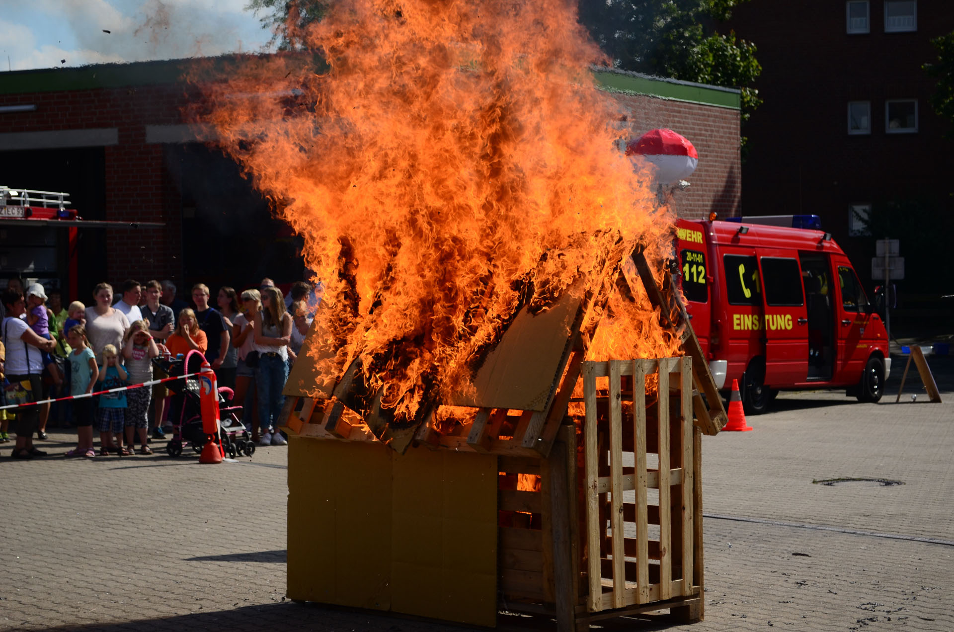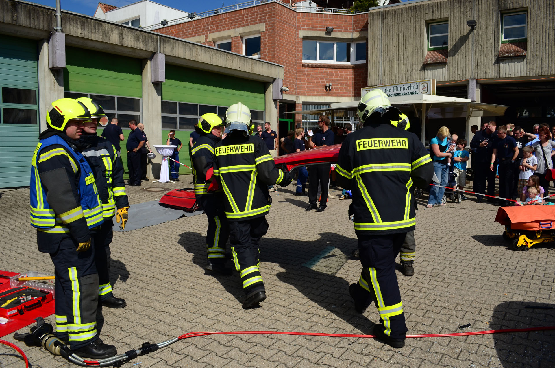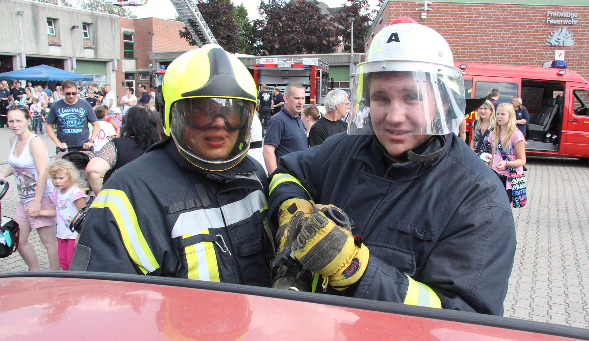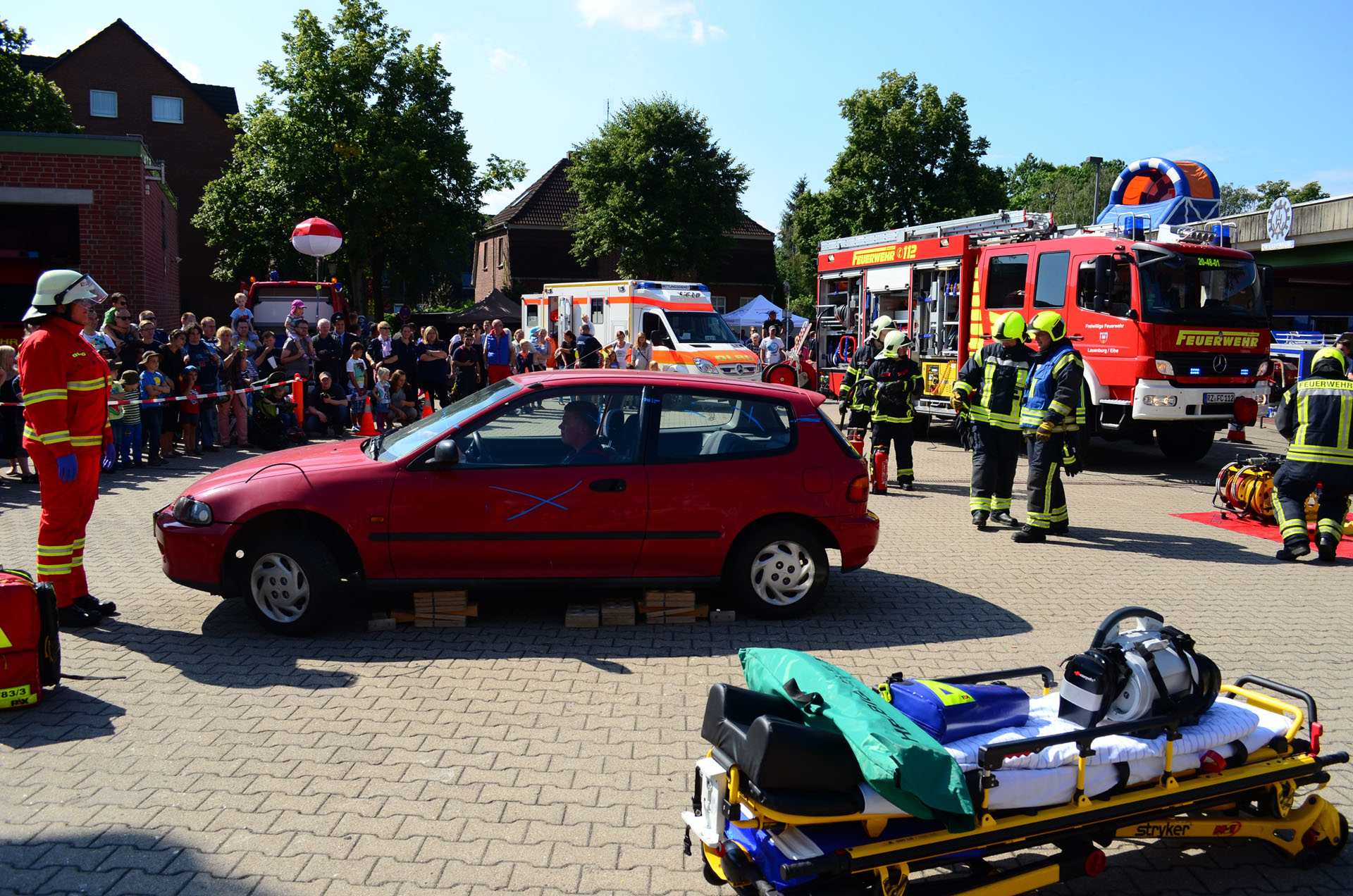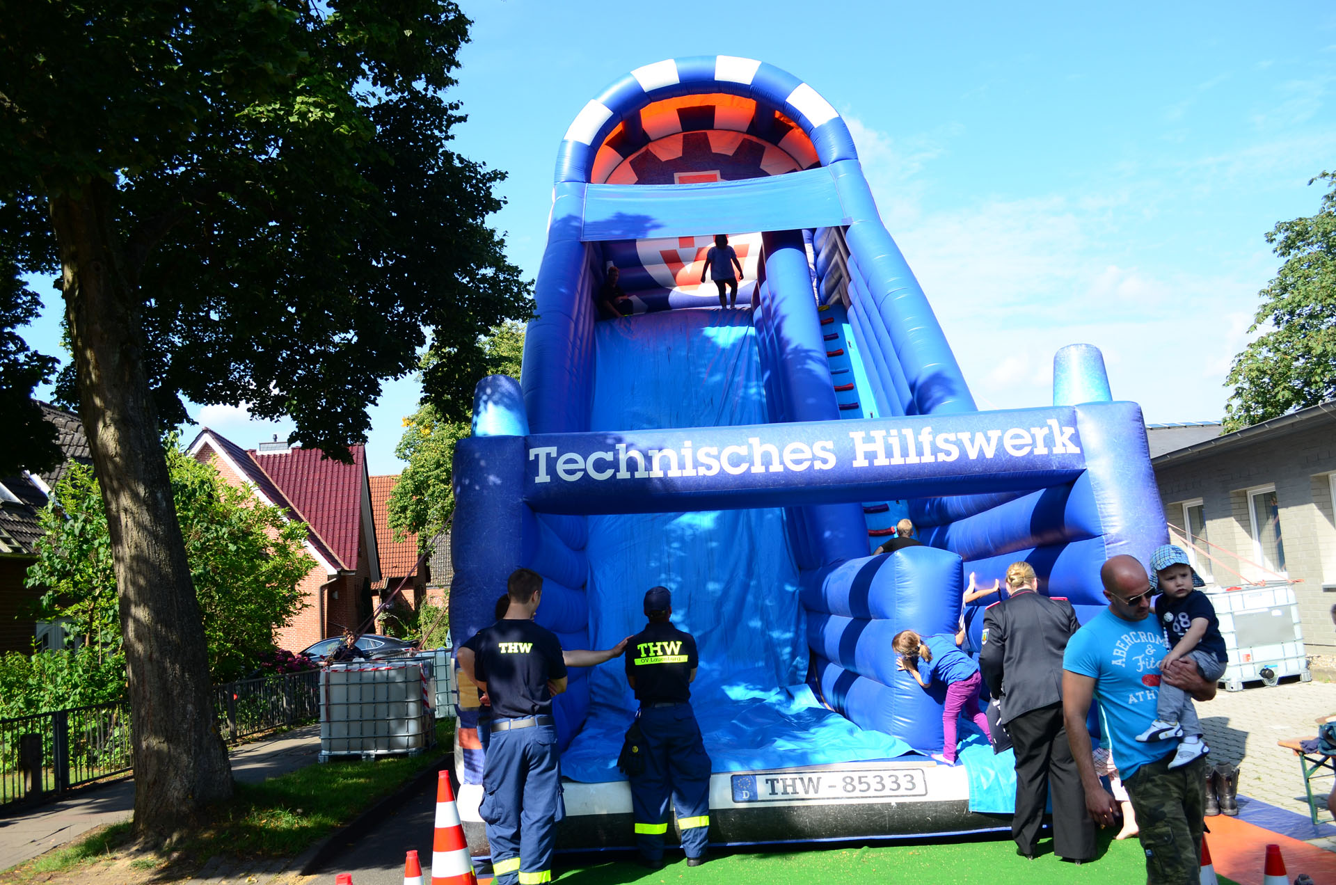 140 Jahre Freiwillige Feuerwehr Lauenburg Elbe und 25 Jahre Partnerschaft zur Feuerwehr Boizenburg wurden vom 28. – 29. August in Lauenburg gefeiert. Ein großer Kommerz lud zahlreiche Gäste von Politik, befreundeten Vereinen und Institutionen, Freunde und Gäste der Feuerwehr am Freitagabend ein. Pünktlich um 19:00Uhr begrüßte Wehrführer Lars Heuer die Gäste, freute sich sehr Über den zahlreichen Besuch, der sogar aus Luxemburg angereist war. Vertreter der Stadt wie zum Beispiel Bürgermeister Thiede und den Bürgervorsteher von Lauenburg konnte Heuer ebenso begrüßen wie Verantwortliche der Stadt Boizenburg. Rund 200 Gäste fanden in der Fahrzeughalle der Feuerwache Platz, die bereits Tage vorher gründlich gesäubert wurde. Dekoration hauchte dem Gebäude einen wohnlichen Charakter ein, die strahlenden Einsatzfahrzeuge auf dem Innenhof geleiteten die Gäste zum Eingang. In Zahlreichen Grußworten überbrachten Vertreter von Politik und befreundeten Feuerwehren sowie Vereinen beste Glückwünsche zum 140-Jährigen Bestehen. Die durchweg ehrenamtliche Arbeit ist hoch anzusehen, verdient höchsten Respekt hieß es. Damit auch künftig die Einsatzkräfte aber auch die Jugendfeuerwehr sicher zu Einsätzen und Ausflügen kommen überreichte Bürgermeister Andreas Thiede symbolisch ein gebasteltes Mannschaftstransportfahrzeug, „auf dem Bewusst keine Marke abgebildet ist“ unterstreicht Thiede. Zur Zeit läuft die Ausschreibung für das neue Fahrzeug, dass den Ansprüchen der Feuerwehr genügen muss, um den täglichen Aufgaben Dienst zu leisten, erklärt er. Nachdem die Grußworte überbracht wurden, konnte noch eine Beförderung vorgenommen werden. Schriftführer Ingo Drewelowsky wurde im Rahmen seiner Tätigkeit vom Hauptfeuerwehrmann zum Löschmeister befördert. Anschließend steuerte Heuer gezielt auf 20:30 Uhr zu, die Enthüllung der neuen Internetpräsenz stand bevor. Unter Leitung von Sebastian Majchrzak bauten vier engagierte Mitglieder die neue Webpräsenz für moderne Öffentlichkeitsarbeit aus. Darunter sind auch Andreas Rogge, Timo Naujoks und Sebastian Porthun. Für die Enthüllung hatten sie sich etwas ganz besonderes einfallen lassen, eine Minute vorher erschien auf der großen Leinwand ein Countdown. Die Spannung stieg, bevor schließlich der Lauenburg typische Melderton erschrill. Hektische Bilder zeigten den nächtlichen Einsatzablauf, aufschrecken im Schlaf, rein in die Schuhe und mit dem Auto zur Wache… – Dort in die Einsatzkleidung und mit den Großfahrzeugen zum Einsatzort. – Anschließend wurde es wieder ruhiger, der Blick über die Schulter zeigte die Eingabe von www.feuerwehr-lauenburg.de im Suchfeld, anschließend war die neue Webpräsenz aktiv. Der Trailer sollte die stätige Aktualität der Webseite unterstreichen. Einsätze sollen künftig so zeitnah und informativ wie möglich eingepflegt werden. Nach der Veröffentlichung zückten viele Ihr Handy, um die neuen Seiten zu erforschen, was problemlos möglich ist, denn die neue Webseite ist vollständig mobilfähig. Im Anschluss gab es ein reichhaltiges Buffet, das allen hungrigen Gästen und Mitgliedern schmeckte. Am nächsten Morgen ging es schon früh los, am Schloss startete der große Marsch durch die Stadt, die gesamte Feuerwehr Lauenburg war mit der Einsatzabteilung, Ehren- und Jugendfeuerwehr angetreten. Daneben Mitglieder der Feuerwehr Boizenburg und zahlreiche aktive der umliegenden Gemeindewehren. Beeindruckend setzte sich der lange Marsch in Bewegung durch den Askanierring ging es über die Berliner Straße und den Büchener Weg schließlich in die Reeperbahn. Dort ging der Marsch in den Tag der offenen Tür über. Auf dem großen Freigelände lockten Spiel und Spaß für die kleinen genauso wie „Mit-mach Stationen“ für Erwachsene. Viele Besucher strömten zu den frisch heraus geputzten Löschfahrzeugen auf dem Parkplatz, in Reih standen hier die Großfahrzeuge, offene Geräteräume luden zum Staunen ein. Mitglieder erklärten interessierten die Geräte und Technik, verdeutlichten so den Umfang der ehrenamtlichen Ausbildung. Auf dem Innenhof lockten Alarmübungen. Um 12 Uhr alarmierte Torben Heuer, Pressesprecher der Feuerwehr, den Rettungsdienst und ein Hilfeleistungslöschfahrzeug. Ein Verkehrsunfall mit eingeklemmter Person war Ziel der Einsatzfahrt. Nach Erkundung durch den Fahrzeugführer gingen die Trupps vor, mit schwerem hydraulischem Gerät wurden zunächst die Türen und schließlich das Dach des PKW entfernt. Nun war eine schonende Rettung des Verunfallten möglich. Während der Übung erläuterte Heuer, was die Einsatzkräfte gerade tun, was die nächsten Schritte sind und worauf es ankommt. Im Anschluss konnten Erwachsene sich selbst an der Rettungsschere versuchen. Gruppenführer Heiko Raubenheimer erklärte den Besuchern den Umgang mit dem schweren hydraulischen Gerät. An einem zweiten Auto wurden Türen entfernt, Dächer eingeschnitten und Scheiben entfernt. Neben dem Löschzug-Gefahrgut der sich im Neubau mit seinen umfangreichen Aufgaben präsentierte war auch die Drehleiter eine große Attraktion. Der Blick von 31 Metern Höhe über die schöne Elbestadt lockte viele an. Die Magirus Leiter kam aber auch noch bei einer Alarmübung zum Einsatz. Gemeinsam mit dem Rettungswagen wurde eine Personenrettung vorgeführt. Von der Dachterrasse wurde eine vermeidlich erkrankte Person mit der Trage des Rettungswagens auf den sicheren Boden befördert. Wurst, Fleisch, Kaffee und Kuchen sorgten für die kulinarische Abrundung des sonnigen Samstages. Viele Besucher aus dem benachbarten Boizenburg feierten mit uns die Partnerschaft, Fans von weither angereist interessierten sich für die Vielfalt der Einsatzfahrzeuge und interessanten Motive. In den Räumlichkeiten des THW stellten Helfer die umfangreiche Ausstattung der Lauenburger Ortsgruppe aus. Auf dem Triftweg brachten sie am Morgen die THW-Riesenrutsche in Stellung, ein Magnet für die kleinen. Neben einer Fettexplosion