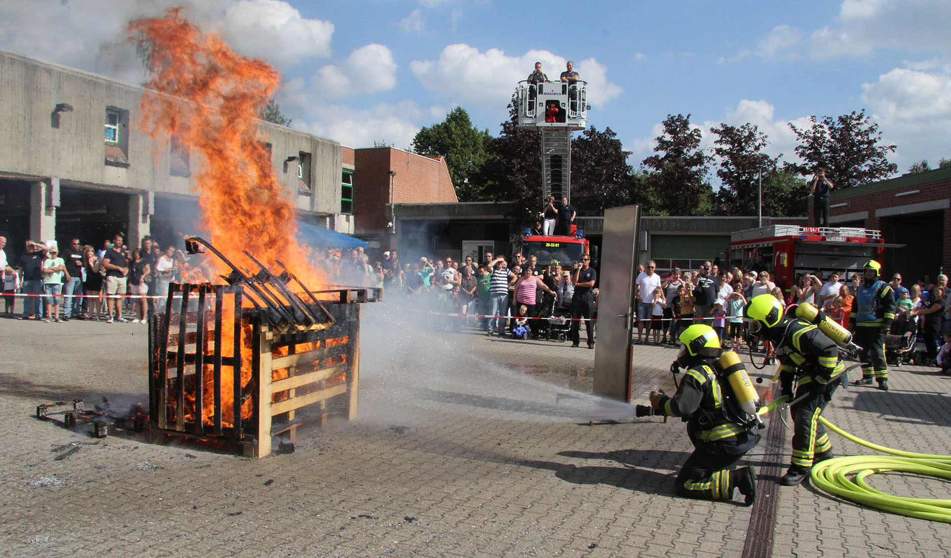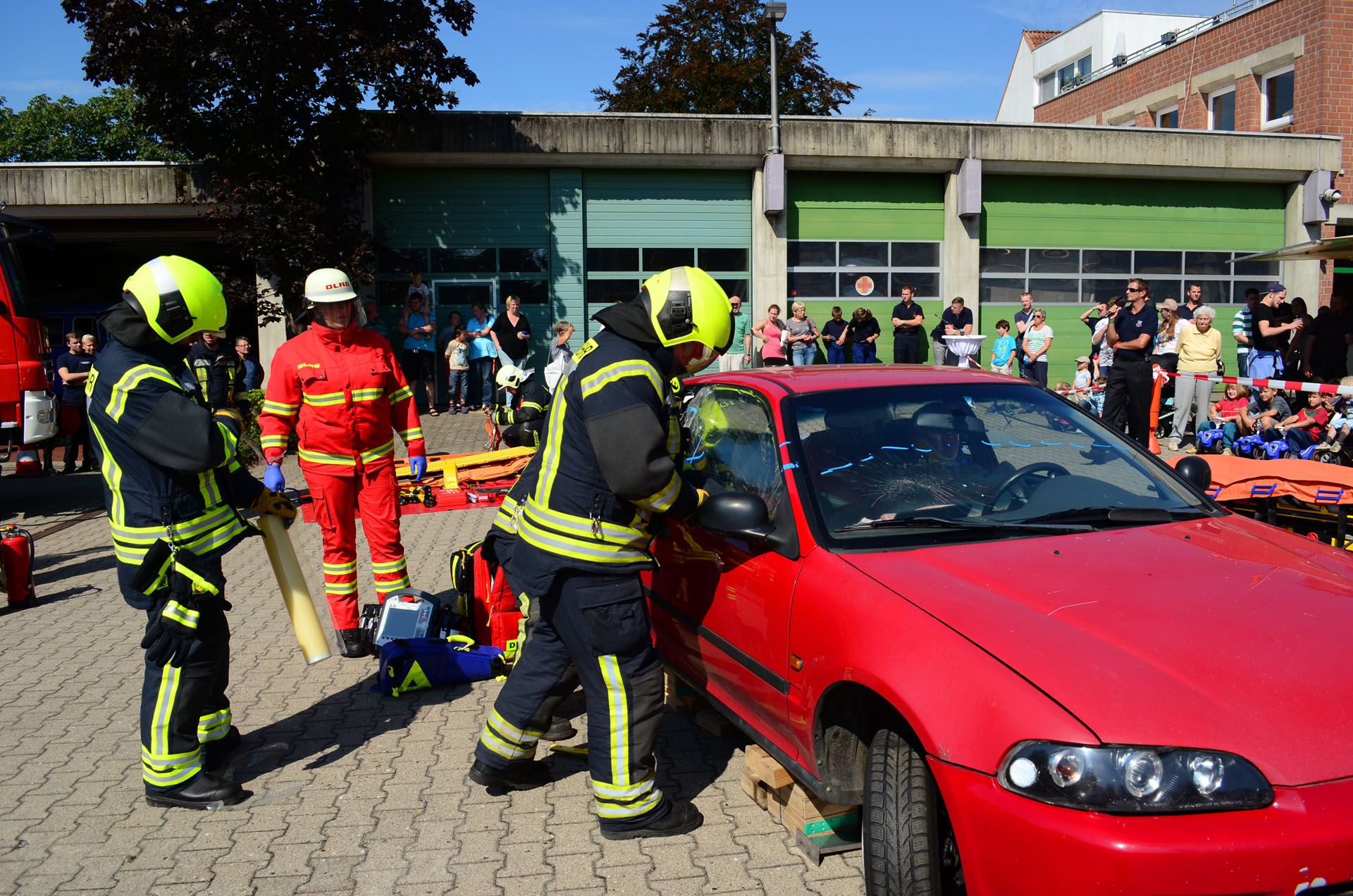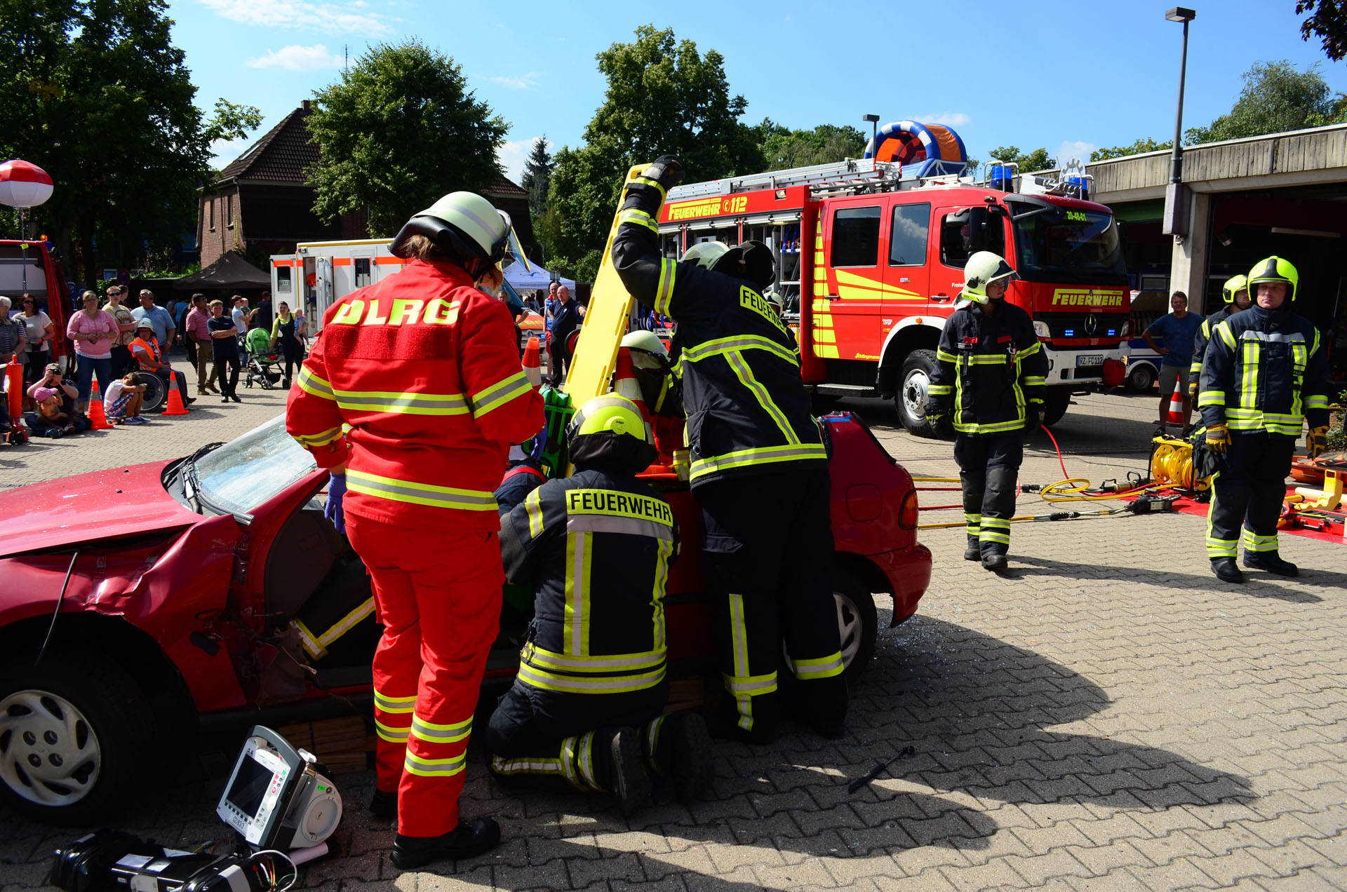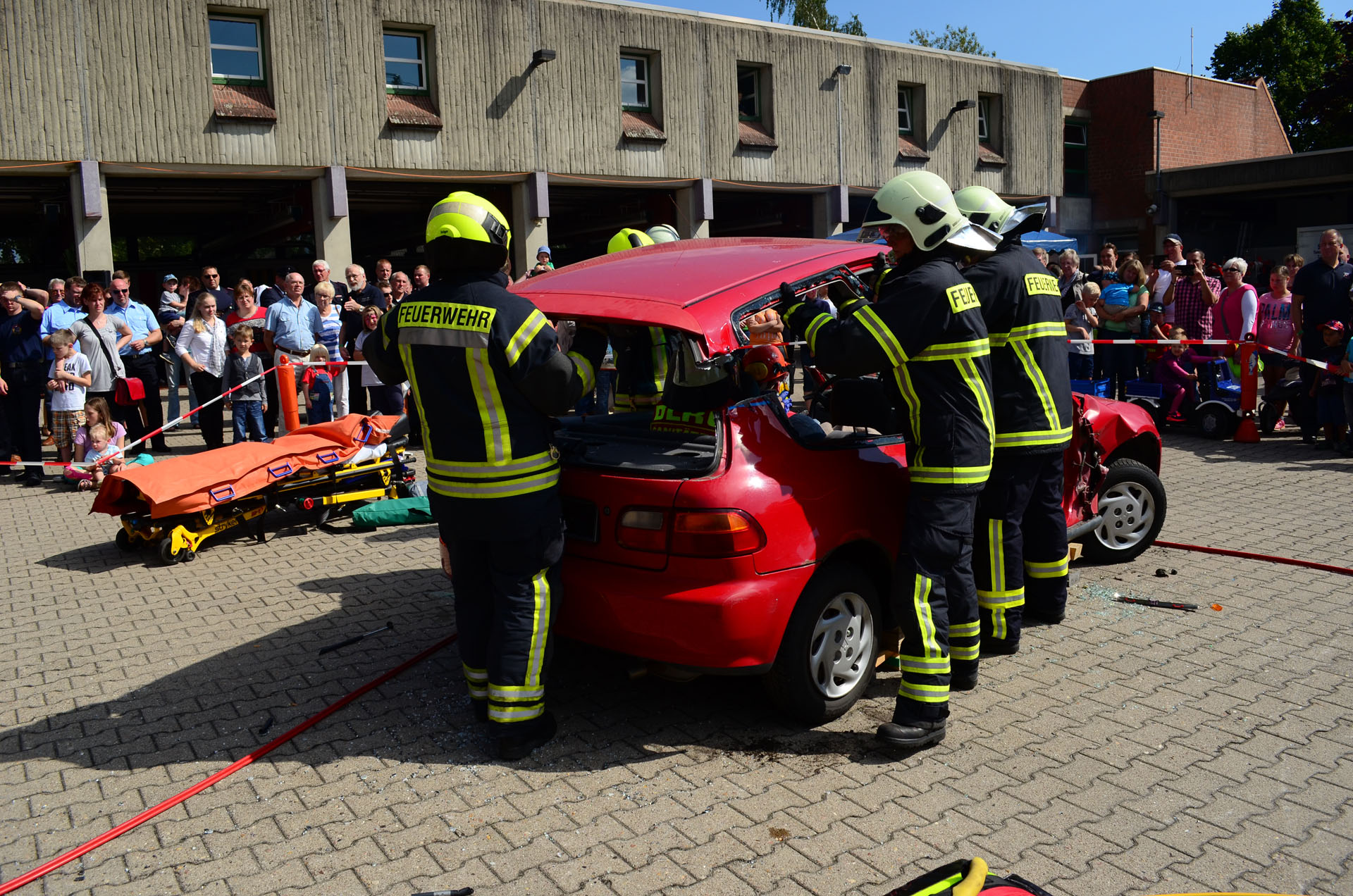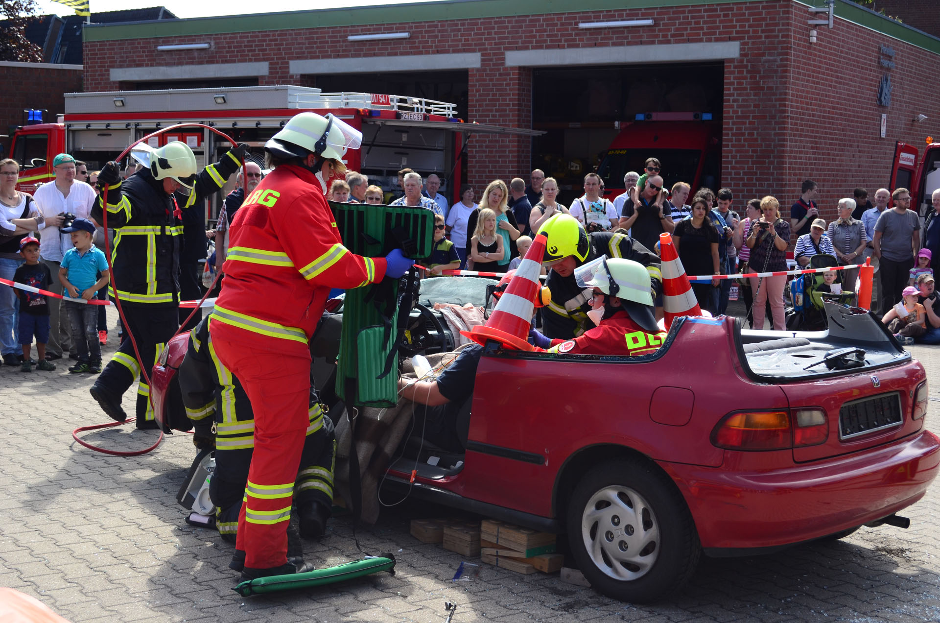 140 Jahre Freiwillige Feuerwehr Lauenburg Elbe und 25 Jahre Partnerschaft zur Feuerwehr Boizenburg wurden vom 28. – 29. August in Lauenburg gefeiert. Ein großer Kommerz lud zahlreiche Gäste von Politik, befreundeten Vereinen und Institutionen, Freunde und Gäste der Feuerwehr am Freitagabend ein. Pünktlich um 19:00Uhr begrüßte Wehrführer Lars Heuer die Gäste, freute sich sehr Über den zahlreichen Besuch, der sogar aus Luxemburg angereist war. Vertreter der Stadt wie zum Beispiel Bürgermeister Thiede und den Bürgervorsteher von Lauenburg konnte Heuer ebenso begrüßen wie Verantwortliche der Stadt Boizenburg. Rund 200 Gäste fanden in der Fahrzeughalle der Feuerwache Platz, die bereits Tage vorher gründlich gesäubert wurde. Dekoration hauchte dem Gebäude einen wohnlichen Charakter ein, die strahlenden Einsatzfahrzeuge auf dem Innenhof geleiteten die Gäste zum Eingang. In Zahlreichen Grußworten überbrachten Vertreter von Politik und befreundeten Feuerwehren sowie Vereinen beste Glückwünsche zum 140-Jährigen Bestehen. Die durchweg ehrenamtliche Arbeit ist hoch anzusehen, verdient höchsten Respekt hieß es. Damit auch künftig die Einsatzkräfte aber auch die Jugendfeuerwehr sicher zu Einsätzen und Ausflügen kommen überreichte Bürgermeister Andreas Thiede symbolisch ein gebasteltes Mannschaftstransportfahrzeug, „auf dem Bewusst keine Marke abgebildet ist“ unterstreicht Thiede. Zur Zeit läuft die Ausschreibung für das neue Fahrzeug, dass den Ansprüchen der Feuerwehr genügen muss, um den täglichen Aufgaben Dienst zu leisten, erklärt er. Nachdem die Grußworte überbracht wurden, konnte noch eine Beförderung vorgenommen werden. Schriftführer Ingo Drewelowsky wurde im Rahmen seiner Tätigkeit vom Hauptfeuerwehrmann zum Löschmeister befördert. Anschließend steuerte Heuer gezielt auf 20:30 Uhr zu, die Enthüllung der neuen Internetpräsenz stand bevor. Unter Leitung von Sebastian Majchrzak bauten vier engagierte Mitglieder die neue Webpräsenz für moderne Öffentlichkeitsarbeit aus. Darunter sind auch Andreas Rogge, Timo Naujoks und Sebastian Porthun. Für die Enthüllung hatten sie sich etwas ganz besonderes einfallen lassen, eine Minute vorher erschien auf der großen Leinwand ein Countdown. Die Spannung stieg, bevor schließlich der Lauenburg typische Melderton erschrill. Hektische Bilder zeigten den nächtlichen Einsatzablauf, aufschrecken im Schlaf, rein in die Schuhe und mit dem Auto zur Wache… – Dort in die Einsatzkleidung und mit den Großfahrzeugen zum Einsatzort. – Anschließend wurde es wieder ruhiger, der Blick über die Schulter zeigte die Eingabe von www.feuerwehr-lauenburg.de im Suchfeld, anschließend war die neue Webpräsenz aktiv. Der Trailer sollte die stätige Aktualität der Webseite unterstreichen. Einsätze sollen künftig so zeitnah und informativ wie möglich eingepflegt werden. Nach der Veröffentlichung zückten viele Ihr Handy, um die neuen Seiten zu erforschen, was problemlos möglich ist, denn die neue Webseite ist vollständig mobilfähig. Im Anschluss gab es ein reichhaltiges Buffet, das allen hungrigen Gästen und Mitgliedern schmeckte. Am nächsten Morgen ging es schon früh los, am Schloss startete der große Marsch durch die Stadt, die gesamte Feuerwehr Lauenburg war mit der Einsatzabteilung, Ehren- und Jugendfeuerwehr angetreten. Daneben Mitglieder der Feuerwehr Boizenburg und zahlreiche aktive der umliegenden Gemeindewehren. Beeindruckend setzte sich der lange Marsch in Bewegung durch den Askanierring ging es über die Berliner Straße und den Büchener Weg schließlich in die Reeperbahn. Dort ging der Marsch in den Tag der offenen Tür über. Auf dem großen Freigelände lockten Spiel und Spaß für die kleinen genauso wie „Mit-mach Stationen“ für Erwachsene. Viele Besucher strömten zu den frisch heraus geputzten Löschfahrzeugen auf dem Parkplatz, in Reih standen hier die Großfahrzeuge, offene Geräteräume luden zum Staunen ein. Mitglieder erklärten interessierten die Geräte und Technik, verdeutlichten so den Umfang der ehrenamtlichen Ausbildung. Auf dem Innenhof lockten Alarmübungen. Um 12 Uhr alarmierte Torben Heuer, Pressesprecher der Feuerwehr, den Rettungsdienst und ein Hilfeleistungslöschfahrzeug. Ein Verkehrsunfall mit eingeklemmter Person war Ziel der Einsatzfahrt. Nach Erkundung durch den Fahrzeugführer gingen die Trupps vor, mit schwerem hydraulischem Gerät wurden zunächst die Türen und schließlich das Dach des PKW entfernt. Nun war eine schonende Rettung des Verunfallten möglich. Während der Übung erläuterte Heuer, was die Einsatzkräfte gerade tun, was die nächsten Schritte sind und worauf es ankommt. Im Anschluss konnten Erwachsene sich selbst an der Rettungsschere versuchen. Gruppenführer Heiko Raubenheimer erklärte den Besuchern den Umgang mit dem schweren hydraulischen Gerät. An einem zweiten Auto wurden Türen entfernt, Dächer eingeschnitten und Scheiben entfernt. Neben dem Löschzug-Gefahrgut der sich im Neubau mit seinen umfangreichen Aufgaben präsentierte war auch die Drehleiter eine große Attraktion. Der Blick von 31 Metern Höhe über die schöne Elbestadt lockte viele an. Die Magirus Leiter kam aber auch noch bei einer Alarmübung zum Einsatz. Gemeinsam mit dem Rettungswagen wurde eine Personenrettung vorgeführt. Von der Dachterrasse wurde eine vermeidlich erkrankte Person mit der Trage des Rettungswagens auf den sicheren Boden befördert. Wurst, Fleisch, Kaffee und Kuchen sorgten für die kulinarische Abrundung des sonnigen Samstages. Viele Besucher aus dem benachbarten Boizenburg feierten mit uns die Partnerschaft, Fans von weither angereist interessierten sich für die Vielfalt der Einsatzfahrzeuge und interessanten Motive. In den Räumlichkeiten des THW stellten Helfer die umfangreiche Ausstattung der Lauenburger Ortsgruppe aus. Auf dem Triftweg brachten sie am Morgen die THW-Riesenrutsche in Stellung, ein Magnet für die kleinen. Neben einer Fettexplosion