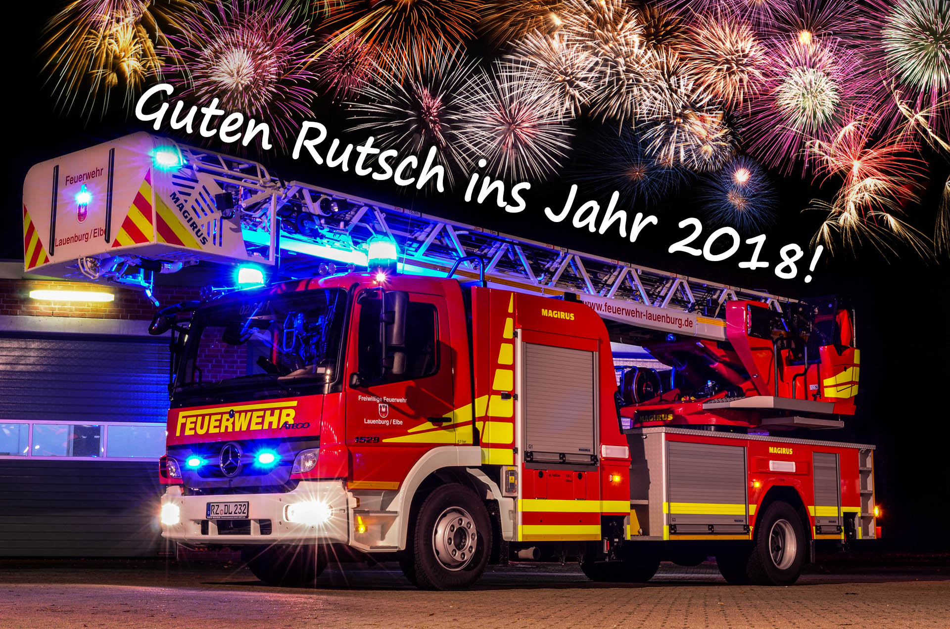 Die freiwillige Feuerwehr Lauenburg wünscht Ihnen und Ihren Familien einen guten Rutsch und vor allem viel Glück und Erfolg im neuen Jahr 2018! In diesem Jahr beschäftigten uns bis zum aktuellen Zeitpunkt 188 Einsätze, wir wünschen uns das es dabei bleibt. Stets konnten Sie unser Wirken auf diesen Seiten verfolgen, einen Einblick in die Arbeit Ihrer Freiwilligen Feuerwehr gewinnen. Diese Arbeit leisten wir ehrenamtlich, so auch in dieser Nacht. Wir bitten Sie deshalb darum, dass Sie umsichtig mit Feuerwerkskörpern umgehen, weshalb wir Ihnen noch ein paar Tipps für eine sichere Silvesternacht mit auf dem Weg geben möchten: – Verwenden sie nur geprüfte Pyrotechnik, zu erkennen am BAM-Siegel (Bundesanstalt für Materialprüfung) – Achten sie unbedingt auf die Gebrauchshinweise der Hersteller (Mindestabstände usw.) – Um Brandgefahren vorzubeugen schützen sie ihre Wohnung oder ihr Haus, indem sie zum Beispiel brennbare Gegenstände wie Möbel oder sonstigen Hausrat von Balkonen entfernen. Halten sie nach Möglichkeit auch Fenster und Türen geschlossen – Um eventuelle Schäden am eigenen Fahrzeug zu vermeiden, parken sie dieses nach Möglichkeit in der Garage oder stellen es in einer ruhigen Seitenstraße ab – Halten sie einen Mindestabstand von 200 Metern beim abfeuern von Pyrotechnik zu Reetdachhäusern, Altenheimen, Kirchen und Fachwerkhäussern ein – Raketen nur senkrecht in den Himmel starten lassen und eine standsichere „Startrampe“ verwenden !!!
