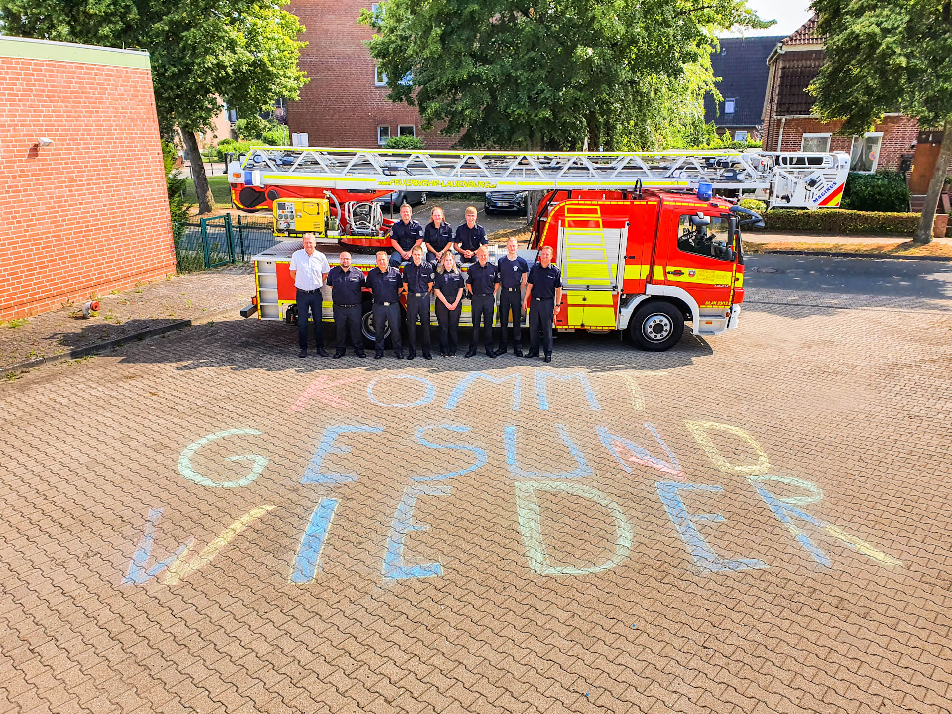 Am frühen Sonntagmorgen starte eine Gruppe der Feuerwehr Lauenburg zur Unterstützung bei den Aufräumarbeiten in Südwesten des Landes. Gemeinsam mit anderen Kräften aus dem Kreis Herzogtum Lauenburg versammelten sich die Helfer um 5 Uhr an der Feuerwehr-Technischen-Zentrale in Elmenhorst. Die Koffer, gepackt für eine Woche wurden in einen Reisebus verladen. Denn die Lauenburger lösen im Krisengebiet eine Mannschaft ab, die bereits vergangene Woche mit Kreis Fahrzeugen losgefahren ist. „Wir rechnen damit vor Ort unglaubliche Bilder zu sehen“ sagt Zugführer Björn Koberstein. „Wir werden mit anpacken wo Hilfe gebraucht wird“ ergänzt er. Zur Verabschiedung der Einsatzkräfte kam auch Bürgermeister Andreas Thiede. „Ich wünsche Ihnen für den Einsatz alles Gute, kommen Sie heile und gesund wieder!“ Gab er den 2 Frauen und 7 Männern mit auf den Weg. Die Mini-Retter unserer Feuerwehr verabschiedeten die Kräfte in ganz besonderer Form, mit einem riesigen Kreideschriftzug an der Ausfahrt wünschten Sie den Kräften eine Gesunde Heimkehr. Die gesamte Feuerwehr Lauenburg ist Stolz auf unsere Kräfte im Einsatz und hofft auf eine gesunde Rückkehr. Wir berichten weiter über den Einsatz von vor Ort.