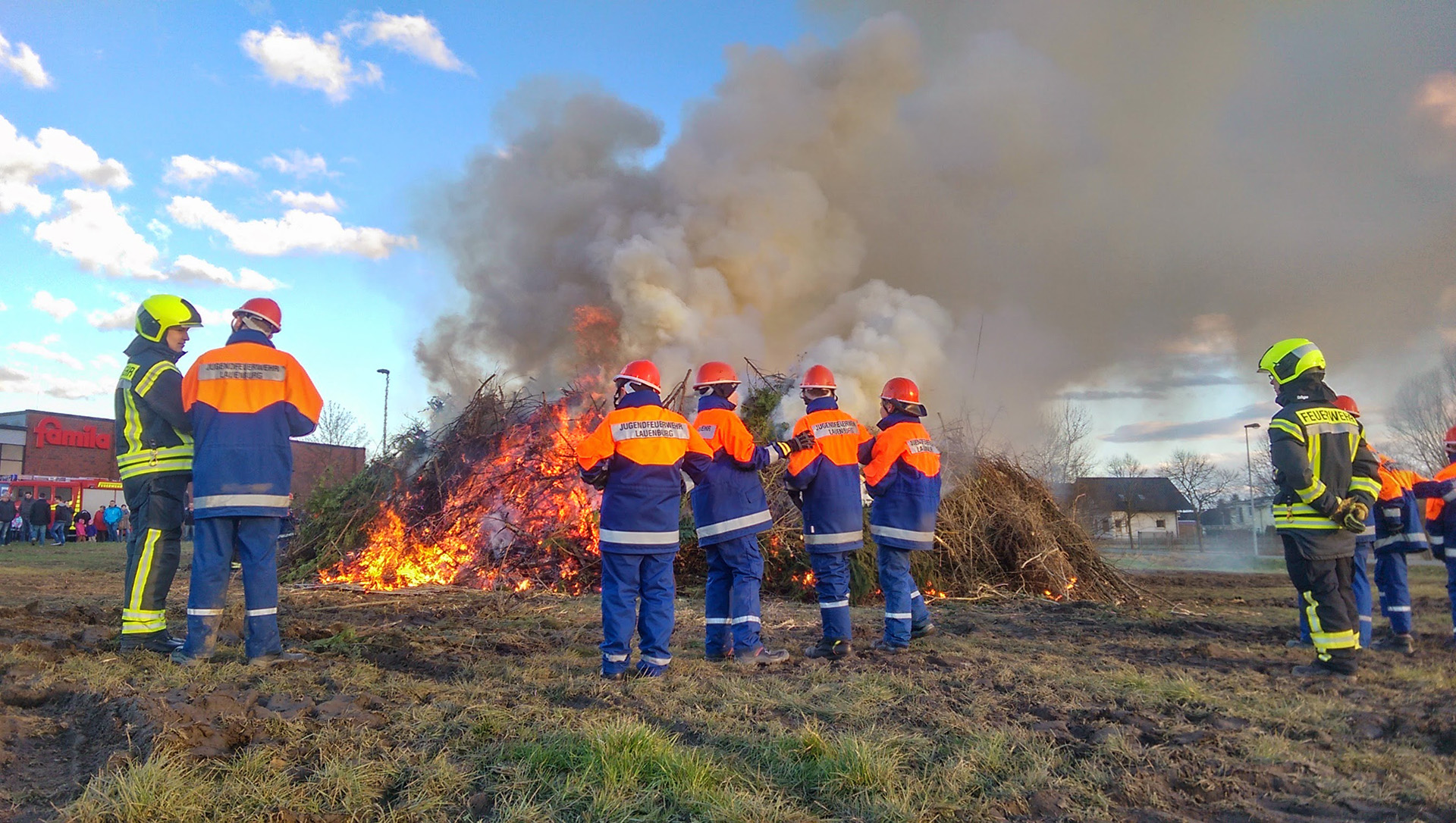 Am kommenden Samstag dem 26.3. findet wieder das alljährliche Osterfeuer auf der Wiese bei Famila statt. Für das leibliche Wohl sorgt die Jugendfeuerwehr, Wurst vom Grill stehen neben Getränken für unsere Besucher bereit. Wie in jedem Jahr, dürfen Sie uns auch diesmal Grünschnitt aus Ihren Gärten anliefern. Um jedoch eine Kontrolle hierüber zu behalten, beschränken wir die Zeit der Anlieferung von: 9 bis 12 Uhr. Bitte sehen Sie davon ab, behandelte Hölzer, dicke Stämme oder Wurzeln mitzubringen, diese werden nicht angenommen! Zum Osterfeuer begrüßen wir Sie dann ab 19:00 Uhr, die Jugendfeuerwehr entfacht das Feuer mit Fackeln, gemeinsam mit Ihnen genießen wir dann die wohlige Wärme. Wir freuen uns auf Ihren Besuch.