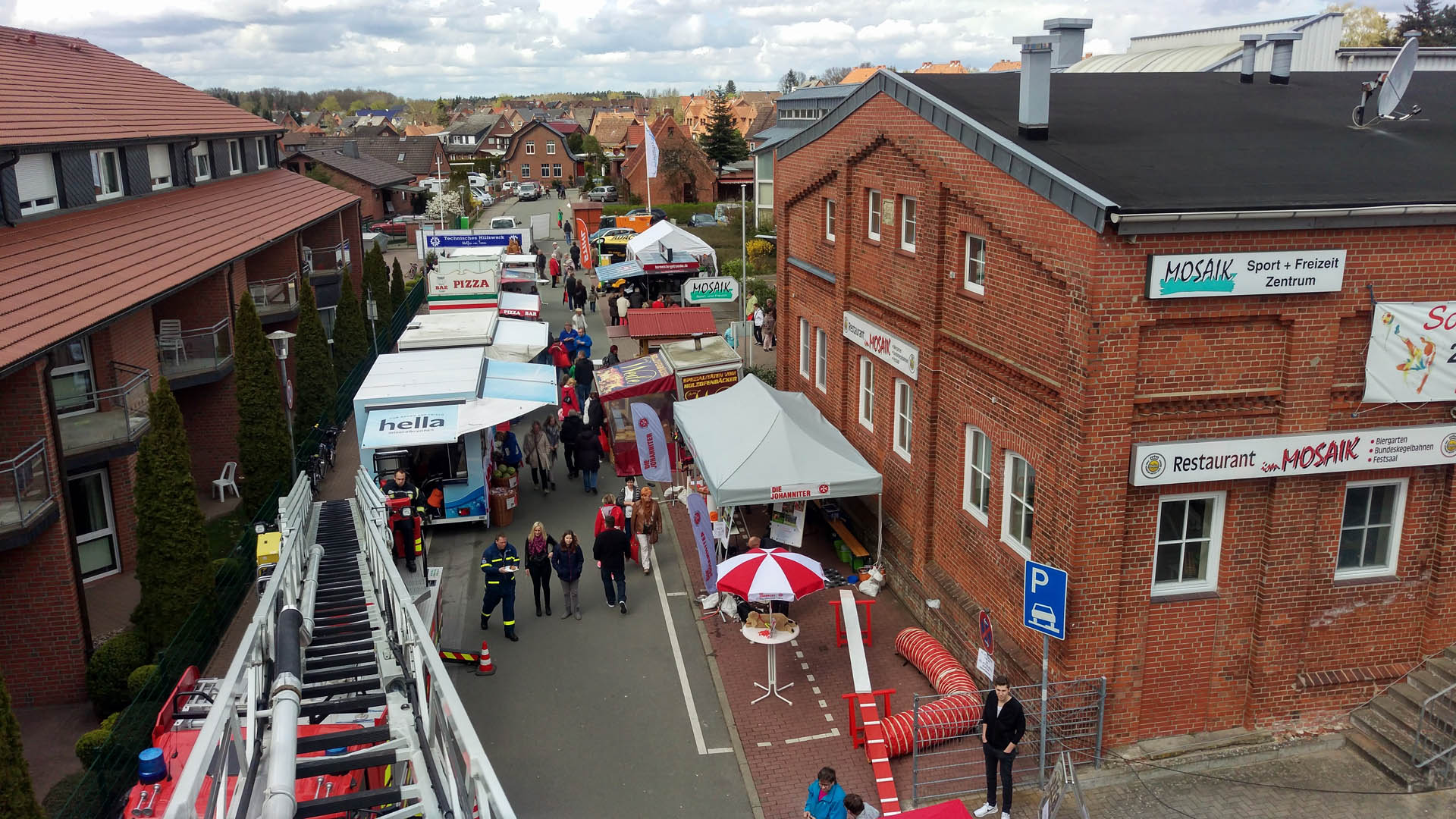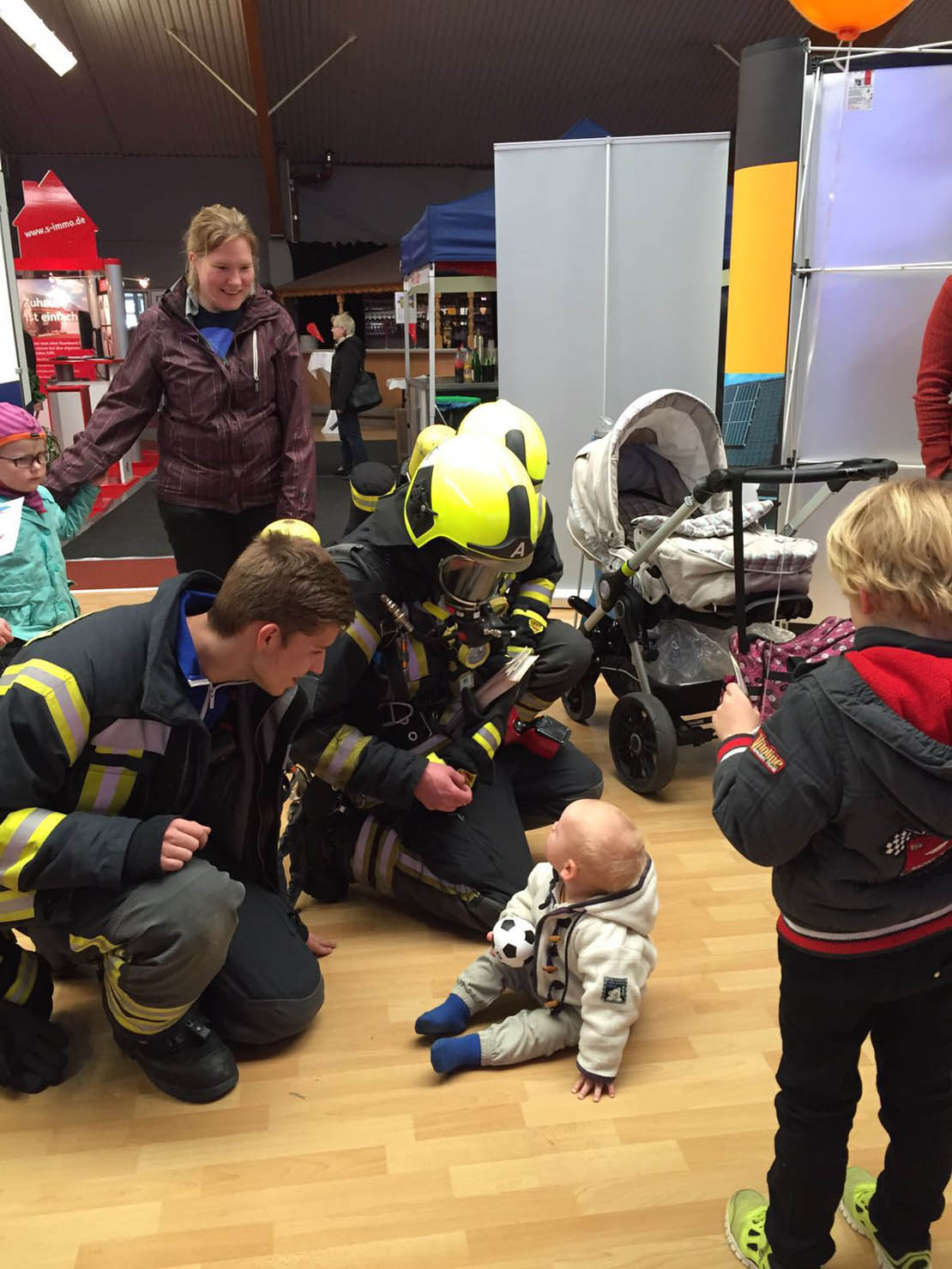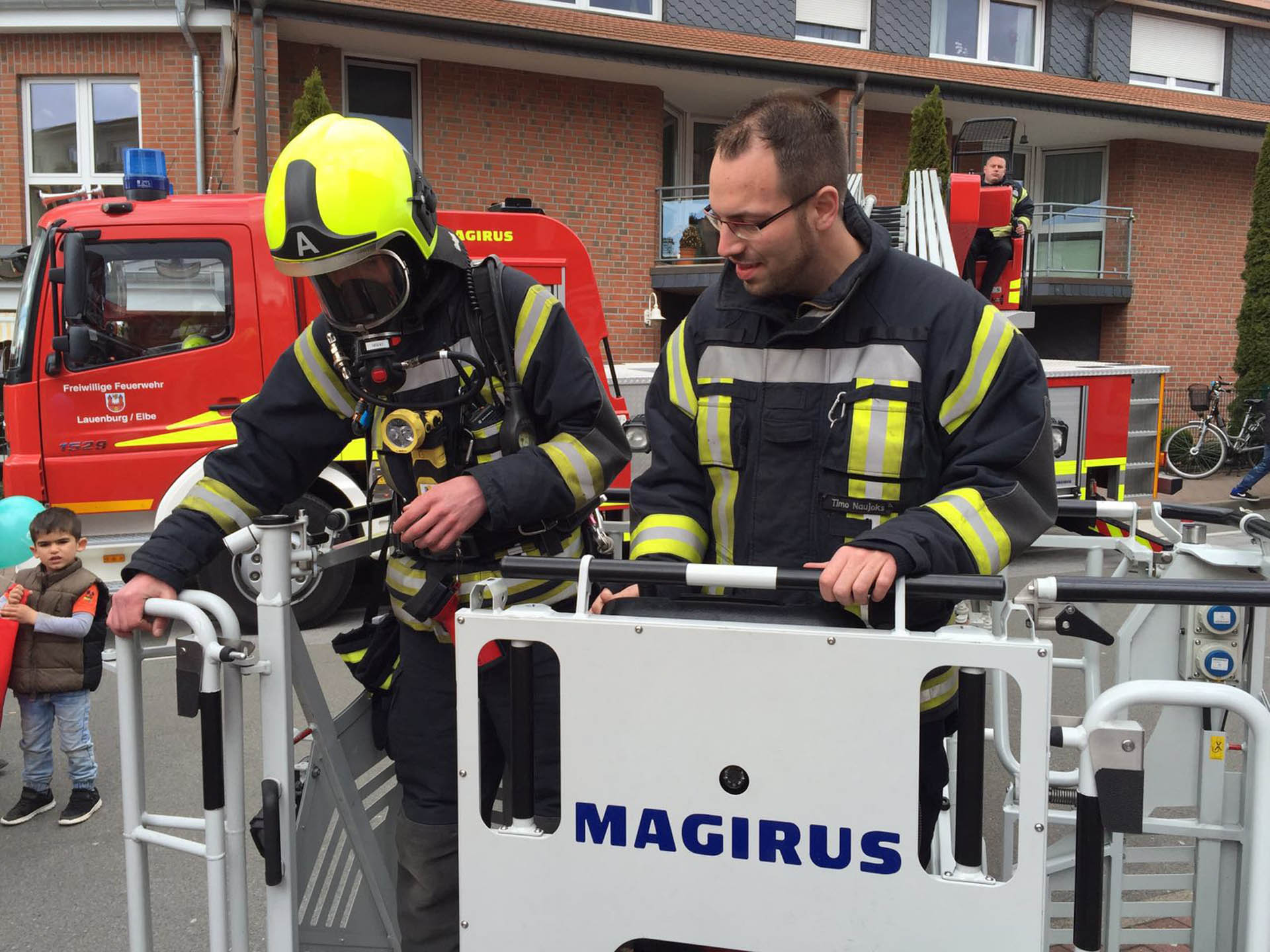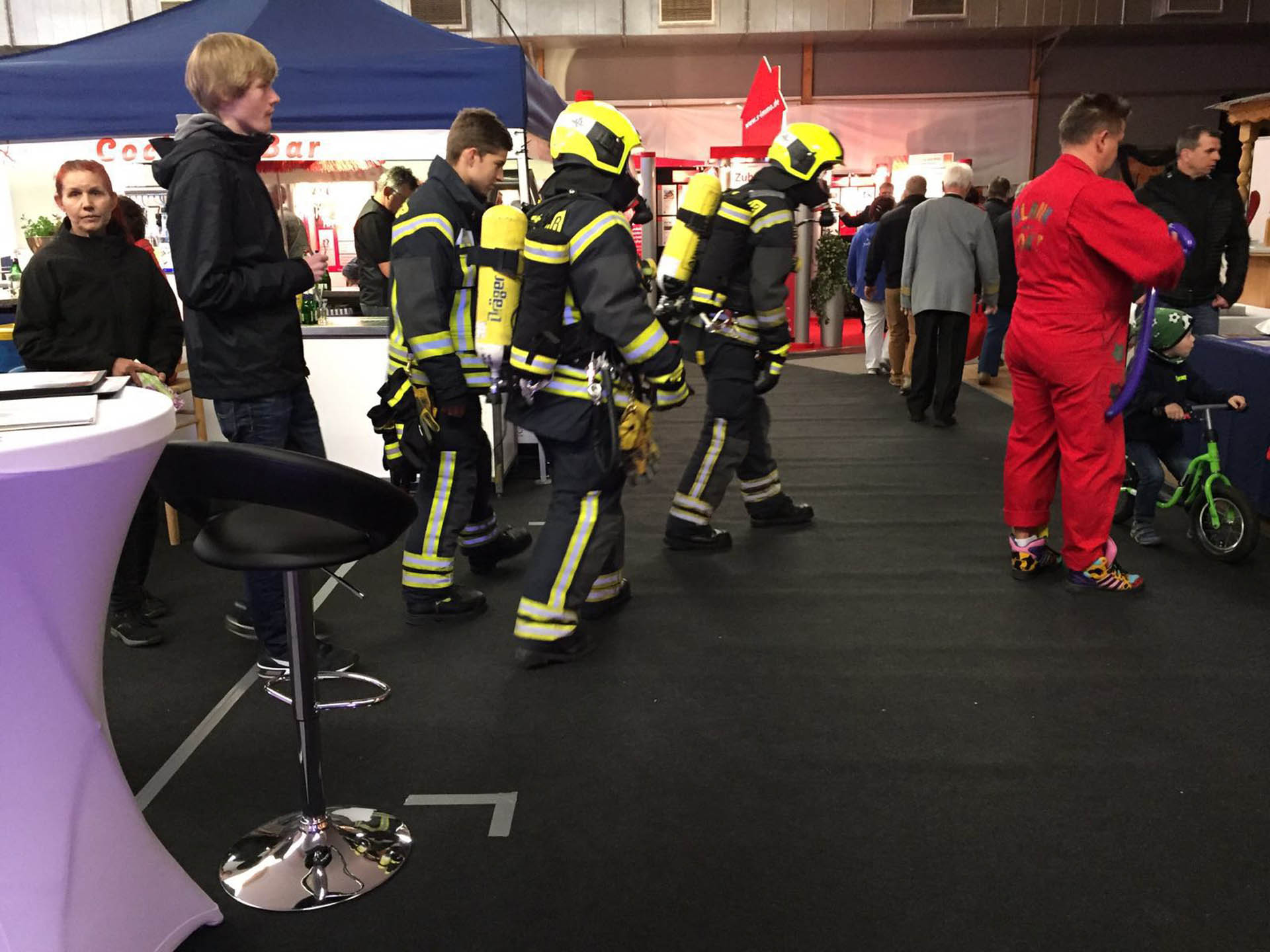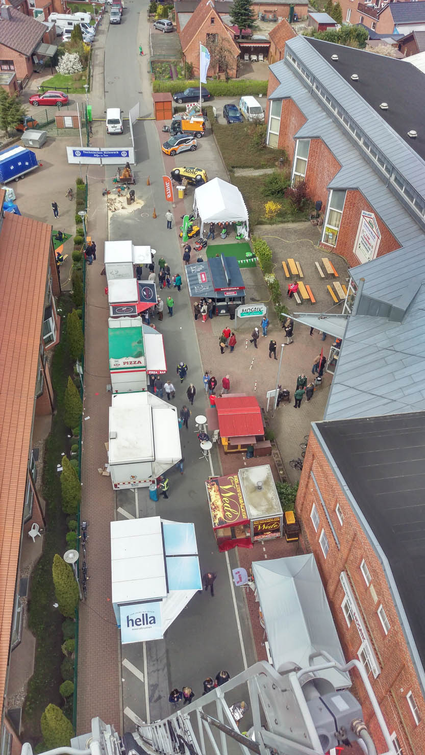 Auf der Gewerbeschau der Wirtschaftlichen Vereinigung Lauenburg im Mosaik präsentierten sich am Wochenende mehr als 80 Aussteller aus Lauenburg und dem Umland. Noch größer, noch schöner, noch attraktiver als in den Vorjahren, so wurde ein sehr interessantes Ausstellungsgelände organisiert. Neben zahlreichen kulinarischen Angeboten präsentierten sich auf mehreren hundert Quadratmetern unter anderem Handwerksbetriebe, Dienstleister, Autohäuser, Versicherungen, Geldinstitute, Vereine sowie die Versorgungsbetriebe Elbe. Im Außenbereich waren neben einem Überschlagsimulator des ADAC auch die Hilfsorganisationen vertreten. Die Riesenrutsche des THW war der Magnet für alle Kinder. Wie eine überdimensionale Hüpfburg ragte sie bis über das Dach des angrenzenden Pflegeheimes empor. Die Rettungshundestaffel war vertreten, die DLRG stellte einen Rettungswagen aus und rundete das Bild neben der Feuerwehr ab. Alle Besucher pilgerten an den Großfahrzeugen der Feuerwehr vorbei. Das HLF lud mit der umfassenden Beladung zum Staunen ein und auch die Drehleiter beeindruckte Groß und Klein. Wie ein Torbogen ragte sie über den Eingangsbereich. Immer wieder sorgte die Feuerwehr auch in den Messehallen für Aufsehen – immer dann, wenn der Atemschutztrupp mit schwerem Gerät durch die Gänge zog. Viele Besucher nutzten die Gelegenheit und machten Fotos mit den Rettern, ließen sich Ausrüstungsgegenstände erklären und lobten das Ehrenamt. An beiden Messetagen besuchten mehrere Tausend Menschen die Veranstaltung, versuchten ihr Glück beim Gewinnspiel eines Urlaubes oder bei kleineren Aktionen. Immer wieder waren während der beiden Tage Motorengeräusche im Außenbereich zu hören, Holzspäne flogen und beeindruckte Besucher schauten zu: Grund war ein Künstler, der mit seinen Motorkettensägen Figuren aus Baumstämmen schnitzte. Am Sonntagnachtmittag wurden zwei Figuren versteigert. Der Erlös einer Eule ging an die Jugendfeuerwehr, wofür wir uns auch an dieser Stelle noch einmal herzlich bedanken möchten. Gegen Abend wurde es dann leerer, die Betriebe begannen mit den Abbauarbeiten und auch die Feuerwehr packte zusammen. Nach zwei Tagen auf der Gewerbeschau rückten die Freiwilligen wieder ein.