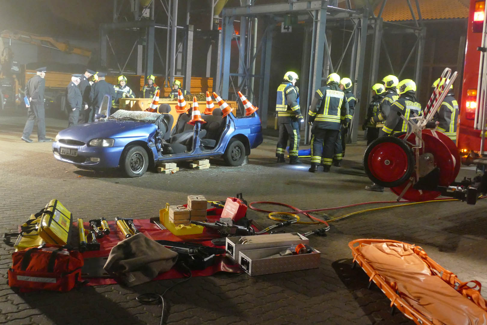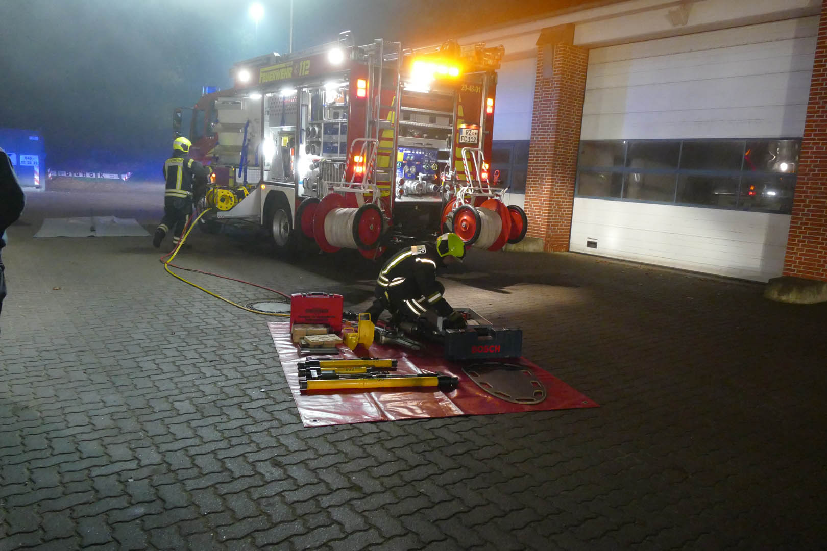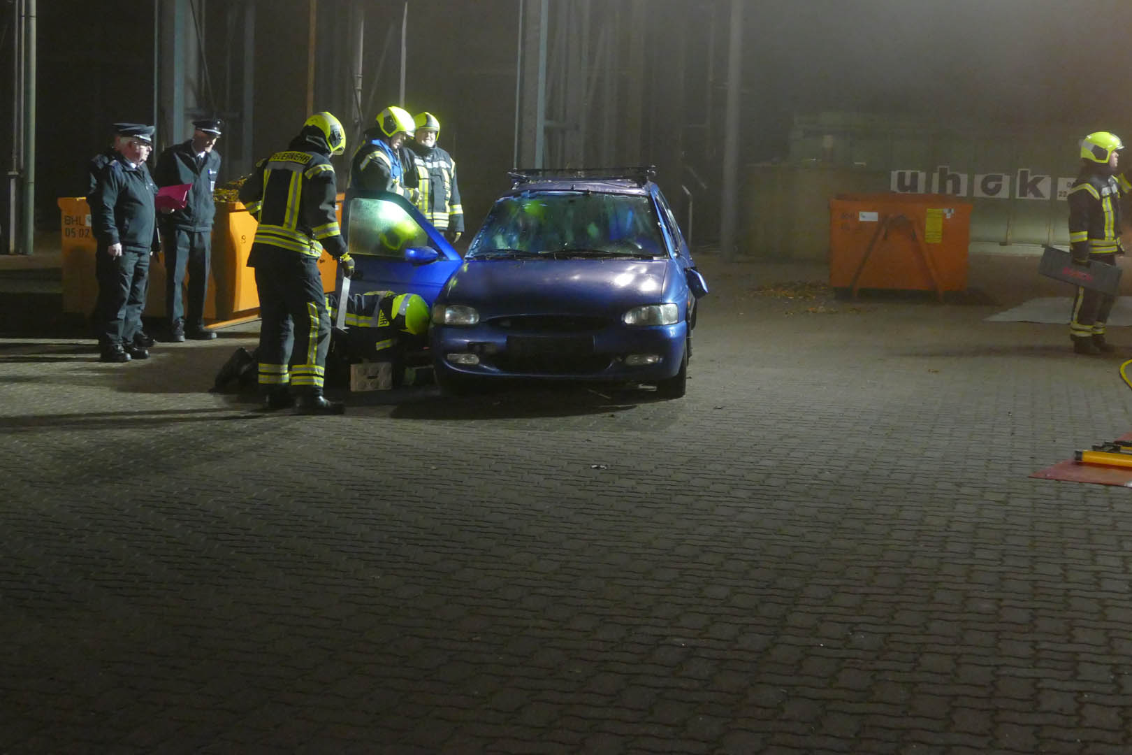 Zur Abnahme der Leistungsbewertung Roter Hahn III trat am Montagabend die Feuerwehr Lauenburg pünktlich um 19 Uhr an. In verschiedenen Einsatzlagen mussten die Aktiven ihr Können unter Beweis stellen. Beim Formaldienst marschierte die gesamte Wehr auf dem Innenhof, einheitliches Auftreten war hier gefragt. Anschließend hielt der Sicherheitsbeauftrage einen Unterricht über die Gefahren auf dem Weg zur Einsatzstelle. Schon zuhause besteht Unfallgefahr, etwa durch herumliegendes Spielzeug erklärt Thomas Jänicke. Auch der Stellvertretende Wehrführer Dennis Lühr machte in einer Präsentation auf das geruch- und farblose Kohlenmonoxid aufmerksam. Beide Unterrichte waren Bestandteil der Leistungsbewertung. Lühr erklärte wie es zur Bildung des gefährlichen Gases kommt. – Ursache ist eine unvollständige Verbrennung, etwa durch eine defekte Heizungsanlage. Im Anschluss ging es für den 2. Zug zur ersten Einsatzübung. Am Bauhof wurde ein Übungsszenario aufgebaut. „Verkehrsunfall eingeklemmte Person“ meldete Zugführer Florian Grundmann an seine Mannschaft auf HLF und LF16. Routiniert begannen die Kräfte mit der Versorgung des Dummys im Fahrzeug, bereiteten die Rettung vor. Schweres hydraulisches Gerät wurde in Stellung gebracht und die Einsatzstelle ausgeleuchtet. Wenig später begann der Wassertrupp mit der Befreiung der Person. In mehreren Schritten wurden zunächst die Türen des PKW entfernt, bis schließlich das Dach abgetrennt wurde. Mit einem Spineboard wurde der Verunfallte gerettet. Während der Rettung waren zwei Rettungsassistenten mit der Versorgung der Person beschäftigt, betreuten sie wie es auch im Ernstfall geschehen würde. Im Anschluss bereitete sich der 1. Zug vor. Am Lütten Markt war eine unklare Rauchentwicklung aus einem Geschäftsgebäude gemeldet worden. Von zwei Seiten wurden Löschfahrzeuge in Stellung gebracht. In Windeseile brachten die Mannschaften Verteiler und Schläuche in Stellung. Der Angriffstrupp ging unter Atemschutz in das Gebäude vor. Das 30m Schlauchpaket wurde vor dem Eingang in Stellung gebracht. Der extra lange C-Schlauch verhindert ein verhaken zum Beispiel an Möbelstücken im Gebäude. Währenddessen stand bereits ein zweiter Trupp vor dem Gebäude bereit. – Der Sicherungstrupp kann im Notfall eingreifen, sorgt für die Sicherheit des im Einsatz befindlichen Atemschutztrupps oder unterstützt bei der Rettung einer Person. Nach kurzer Zeit wurde „Feuer aus“ gemeldet. Nach dem Einsatz wurde das Gebäude belüftet, um die Verqualmung zu beseitigen. Zurück an der Feuerwache ging es an die Auswertung. Vor der angetretenen Wehr überbrachte Andreas Knoop, Leiter der Bewertungskommission die freudige Botschaft. Die Feuerwehr Lauenburg hat mit Bravur die III Stufe erreicht. Alle Mitglieder der Kommission waren mit dem ruhigen und sicheren Auftreten von Mannschaft und Führung sehr zufrieden. Kritikpunkte gab es keine, das machte auch Wehrführer Heuer sichtlich stolz. Gegen kurz nach 23 Uhr übergab Thorsten Möller, Stellvertretender Kreiswehrführer dann die Urkunde und somit den dritten Stern.