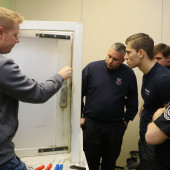 Um im Ernstfall bestens vorbereitet zu sein, absolvierten am Samstag 18 Mitglieder der Lauenburger Feuerwehr ein Türöffnungsseminar. Unschwer erkennen Besucher unserer Webseite das Notfall-Türöffnungen den Schwerpunkt unserer Arbeit ausmachen. Wir kommen immer dann zum Einsatz, wenn Gefahr im Verzug ist. Etwa bei medizinischen Notfällen oder vermutete Gefahr zum Beispiel bei piependen Rauchwarnmeldern. Mit drei Ausbildern kam das Team vom Schlüsseldienst Schultz aus Lübeck. Hauptberuflich sind viele der Mitarbeiter bei der Berufsfeuerwehr beschäftigt, so konnten die Ausbilder gezielt auf unsere Einsatzkräfte eingehen. Zunächst wurde mit einem theoretischen Block in den Tag gestartet, wie sind Schlösser aufgebaut und welche Arten von Schlössern gibt es. David Schlutz, der Chef der Firma erklärte auch anhand von Modellen die Funktionsweise und Mechanik der verschiedenen Schließsysteme. Schließlich ging es über zu Praxis. Eingeteilt in drei Gruppen rotierten die Mitglieder über die verschiedenen Stationen. Es mussten zugefallene Türen mit Drähten oder Blechen geöffnet werden. Auch Spezialwerkzeuge kamen zum Einsatz. Der korrekte Einsatz konnte an extra mitgebrachten Übungstüren trainiert werden. An der nächsten Station ging es darum einen Zugang über ein Fenster zu schaffen. Sind Fenster gekippt, so hat die Feuerwehr oft eine Chance hierüber einen Zugang zum Objekt und so z.B. zum Patienten zu schaffen. An der 3. Station ging es um verschlossene Türen. Neben den uns bekannten Werkzeugen wurde auch der "Maho-Fix" vorgestellt. Mit dem Werkzeug kann das Schloss blitzschnell gebrochen und zerstört werden. Mit dem nötigen Zubehör und etwas Fingerspitzengefühl ließen sich die Übungstüren so schneller als bisher öffnen. Auch einen Exkurs zum fräsen machten die interessierten Mitglieder. Dabei wird mit einem Gradschleifer unter ohrenbetäubendem Lärm der Schließkanal zerstört. Mit Werkzeug kann anschließend das Schloss geöffnet werden. Nach 8 Stunden Unterricht blickten die Mitglieder und das Team vom Schlüsseldienst Schultz auf einen erfolgreichen Tag zurück. Die Mitglieder haben viel neues Wissen erlangt und den Umgang mit vorhanden Werkzeugen vertieft.