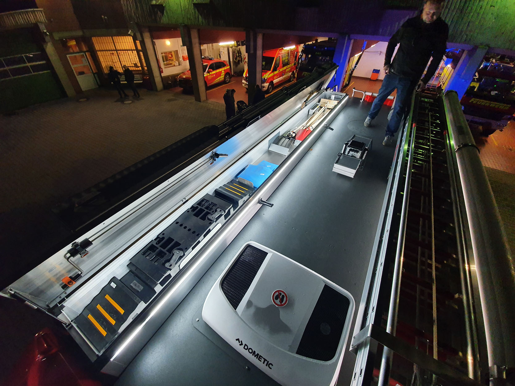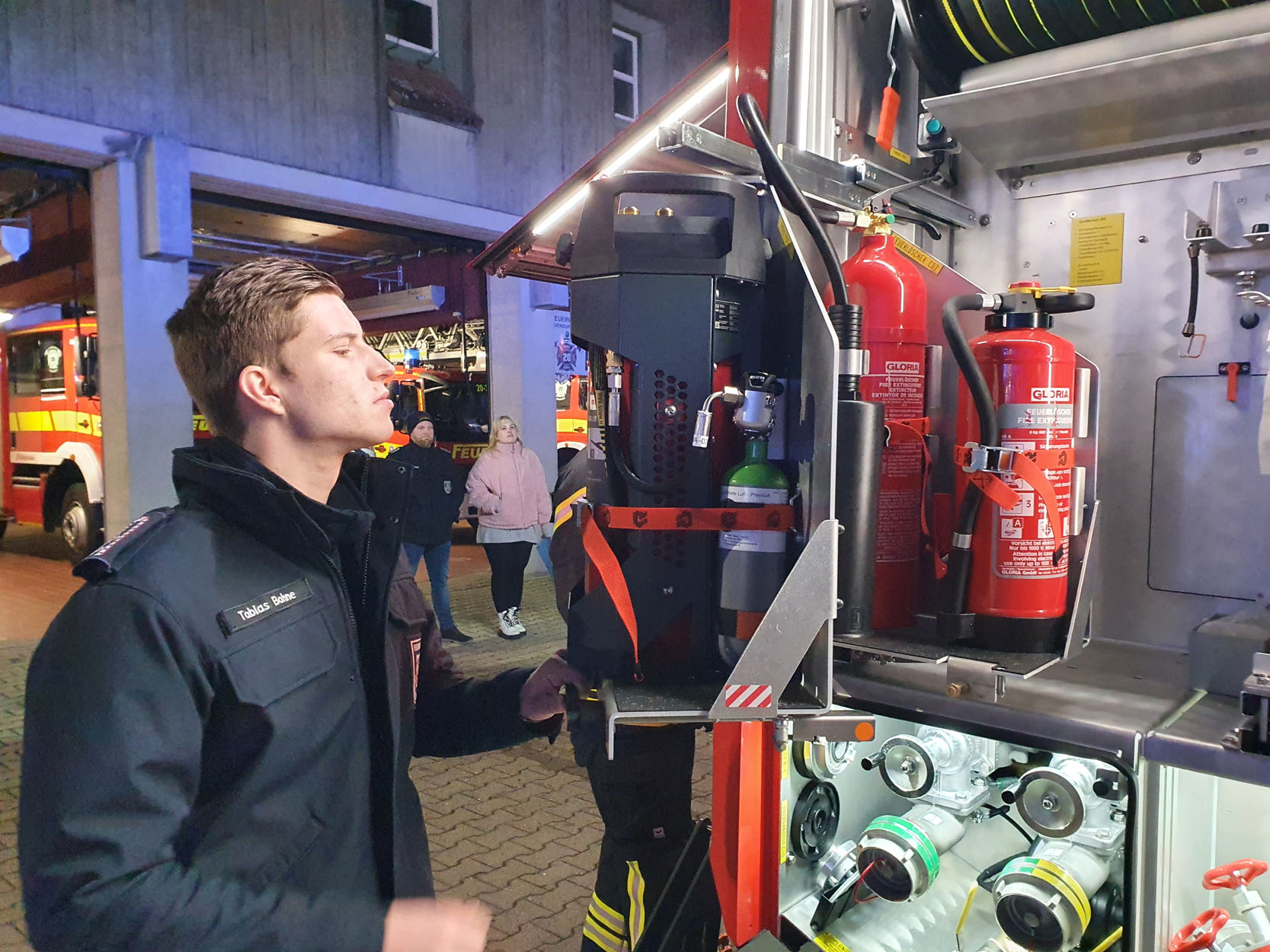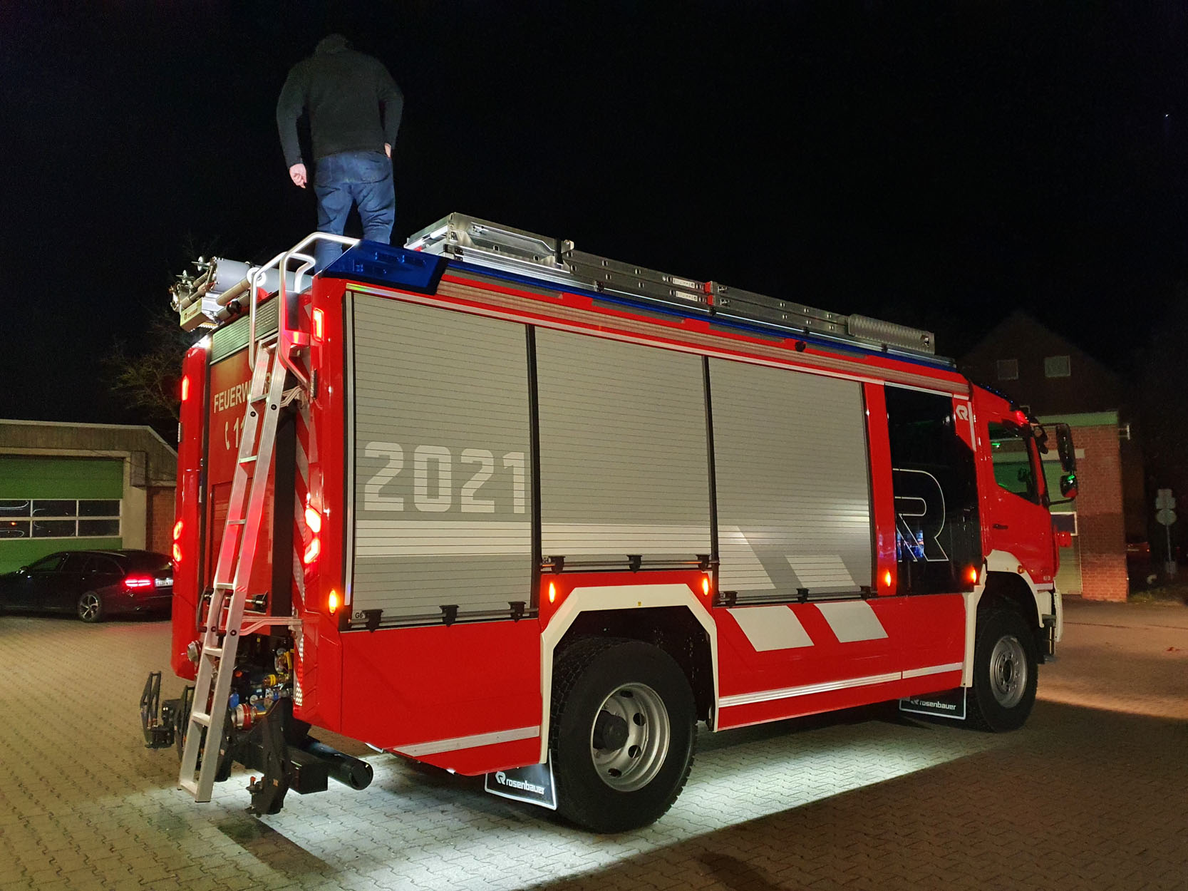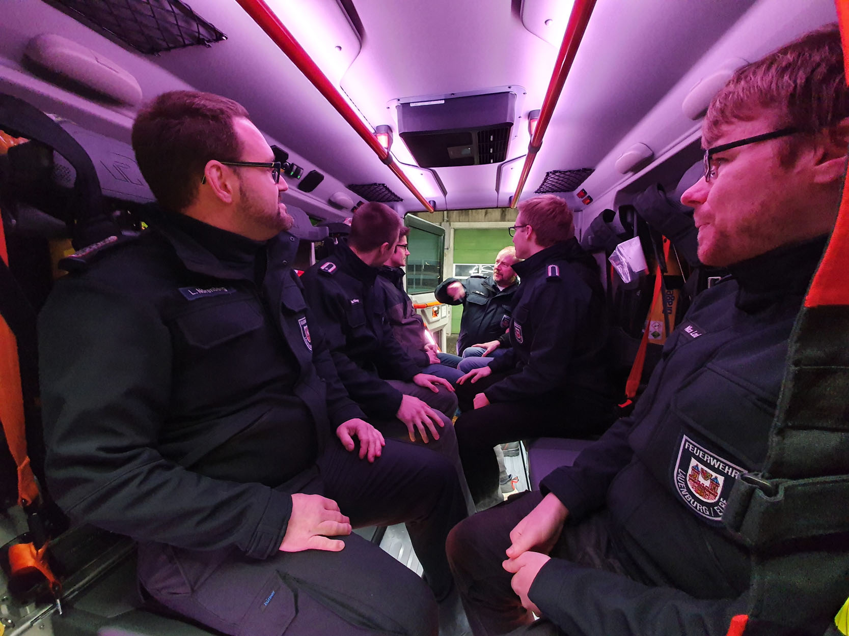 Ein neues HLF 20 stellte die Firma Rosenbauer am Dienstagabend an der Feuerwache in Lauenburg interessierten Mitgliedern vor. Im Rahmen einer Vorführtour organisiert durch Kraft Feuerschutz machten die Vertreter der Firmen halt in Lauenburg. Zahlreiche Mitglieder waren erschienen, um das Messe-Highlight des Österreichischen Herstellers zu bestaunen. Das Hilfeleistungslöschgruppenfahrzeug verfügt über zahlreiche Innovationen. So kann die Bedienung von Pumpe, Blaulicht, Aggregaten oder Beleuchtung gleichzeitig über Tasten aber auch über ein Touchdisplay passieren. Die Schwere Schiebleiter auf dem Dach kann elektrisch abgesenkt werden, sodass eine Entnahme ausschließlich vom Boden möglich ist. Zudem bietet das Fahrzeug viel Platz, um Ausrüstungsgegenstände zu verstauen. Im Mannschaftsraum können sich gleichzeitig Vier Atemschutzgeräteträger ausrüsten. Ganz nebenbei entdeckten die Mitglieder am Heck des Fahrzeuges mehrere Unterschriften, schließlich wurde stolz berichtet, dass dieses Fahrzeug zum Erfolg der Wette bei der ZDF Sendung „Wetten, dass…?“ beigetragen hat. In der Wette hatten Mitglieder aus dem Amt-Hohe-Elbgeest mit Wasserdruck ein Go-Kart beschleunigt.
