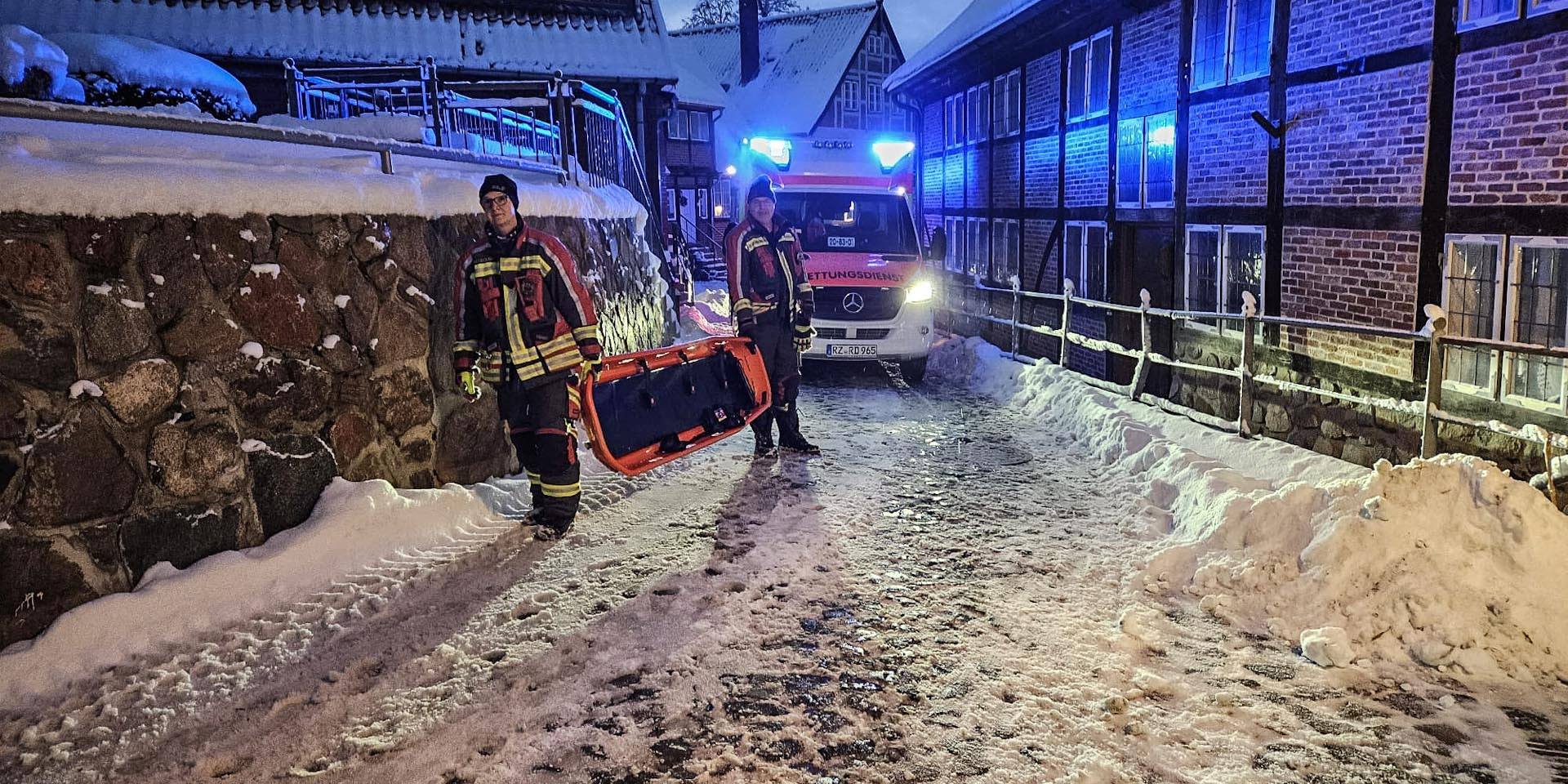 Am Sonntagmorgen wurde die Feuerwehr Lauenburg zur Unterstützung des Rettungsdienstes in den Hohler Weg gerufen. Aufgrund der Straßenverhältnisse durch den Schnee und Glätte teilten sich der KdoW und das HLF auf. Der KdoW rückte mit vier Leuten direkt zur Einsatzstelle aus. Der Rest der Besatzung fuhr mit dem HLF die Friedrichsbrücke an. Ab hier ging es zu Fuß mit der Schleifkorbtrage zur Einsatzstelle. Vor Ort wurde in Form einer Tragehilfe unterstützt. Der Einsatz konnte zügig beendet werden.