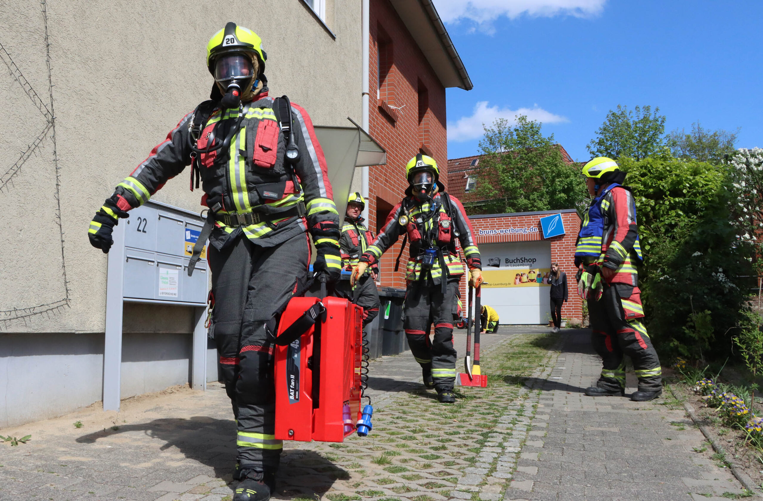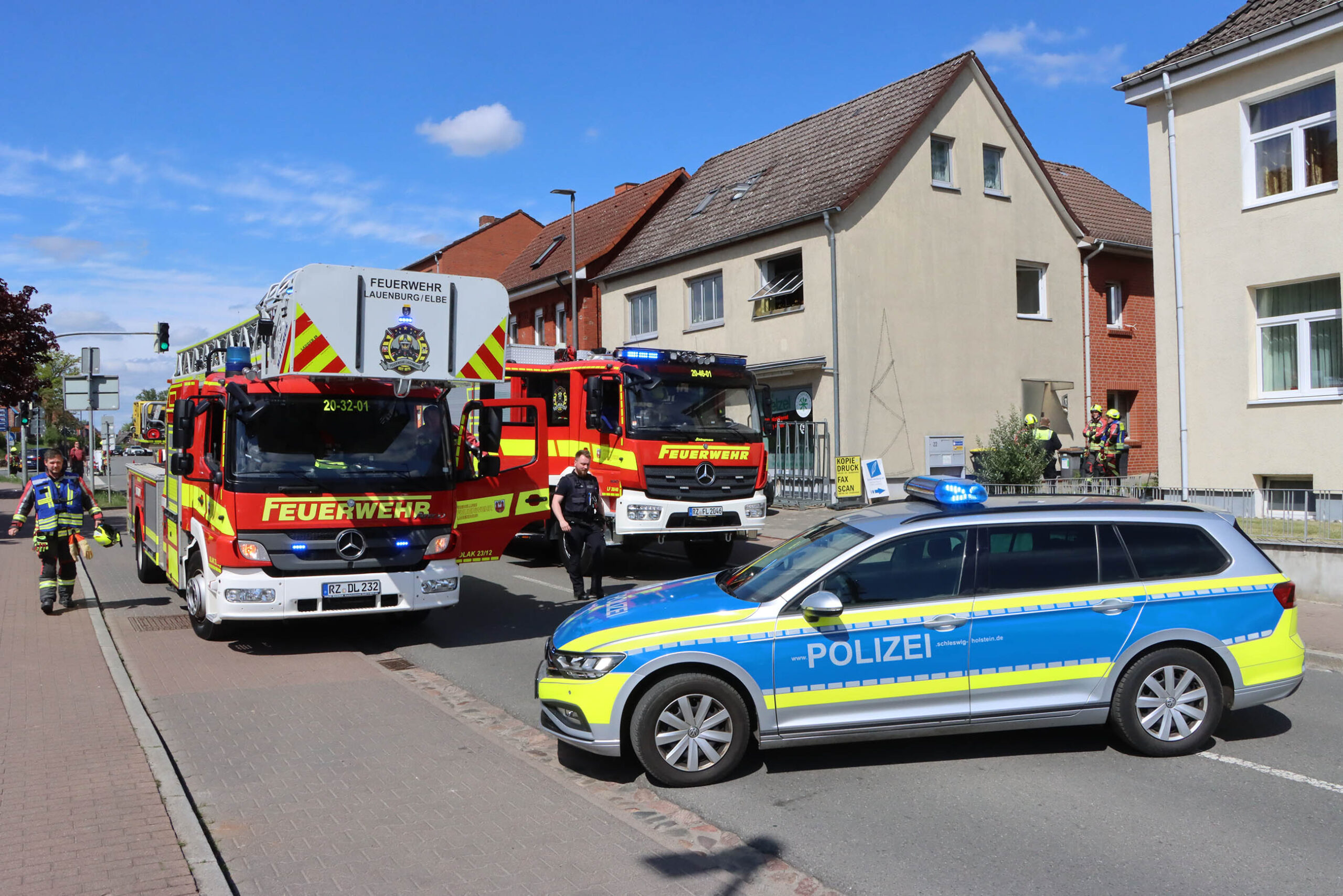 Rauch drang am Samstagmittag aus dem Obergeschoss eines Wohnhauses. Passanten alarmierten daraufhin die Feuerwehr. Wenig später waren die ersten Einsatzkräfte vor Ort. In der Küche eine Wohnung im ersten Obergeschoss war ein Feuer ausgebrochen. Anwohner hatten bereits Löschversuche unternommen. Der Angriffstrupp hatte sich bereits auf Anfahrt mit Atemschutz ausgerüstet und ging in die Wohnung vor. Mittels Wärmebildkamera wurde die Brandstelle kontrolliert. Das Objekt wurde belüftet und konnte schließlich an die Polizei sowie den Bewohner übergeben werden.