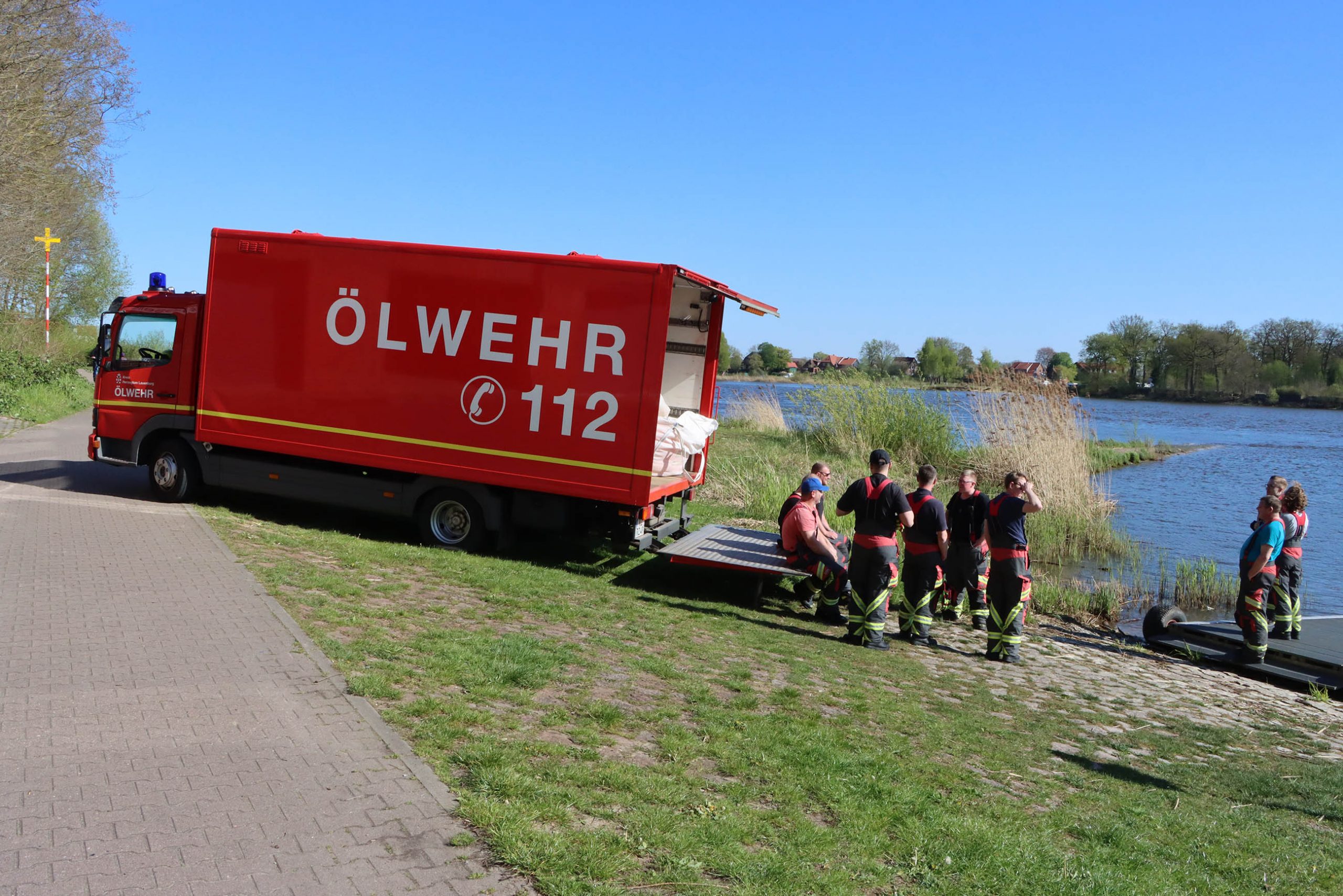 Am Mittwochnachmittag alarmierte die Leitstelle die Feuerwehr Lauenburg mit der Ölwehr auf die Elbe zwischen Schnakenbek und Lauenburg. Passanten war starker Geruch und ein Ölfilm auf dem Wasser aufgefallen. Die Einsatzkräfte erkundeten die Lage, schließlich wurden die beiden Ölwehr-Boote zum Einsatz gebracht. Zeitgleich machten sich GW-Öl und HLF auf dem Weg zum Kuhgrund, wo das Material auf die Boote umgeladen wurde. Mit Absorberschläuchen ausgestattet fuhr die Besatzung weiter in Richtung Schadensstelle. Mit dem Mehrzweckboot wurden die Ölsperren an Land gebracht und dort von Einsatzkräften befestigt. Währenddessen kontrollierte die Besatzung von Elbe 1 die Buhnenköpfe Elbabwärts. Schließlich wurde die Einsatzstelle an die Wasserschutzpolizei und Verantwortliche vom Kreis übergeben.