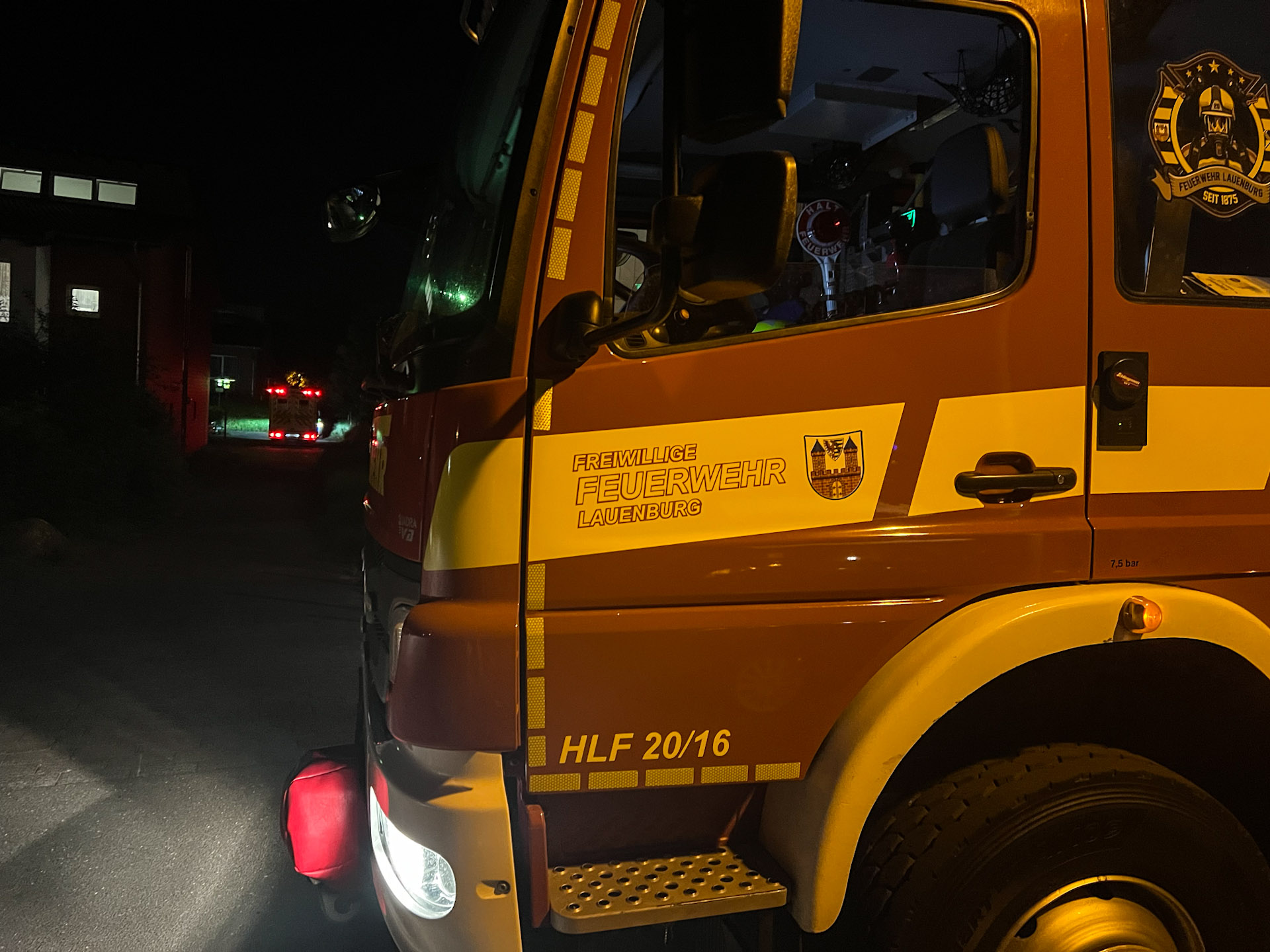 Nachts wurde die Feuerwehr Lauenburg zu einer Notfalltüröffnung alarmiert. Beim Eintreffen war ein Tätigwerden der Feuerwehr aber nicht nötig, das HLF rückte wieder ein.