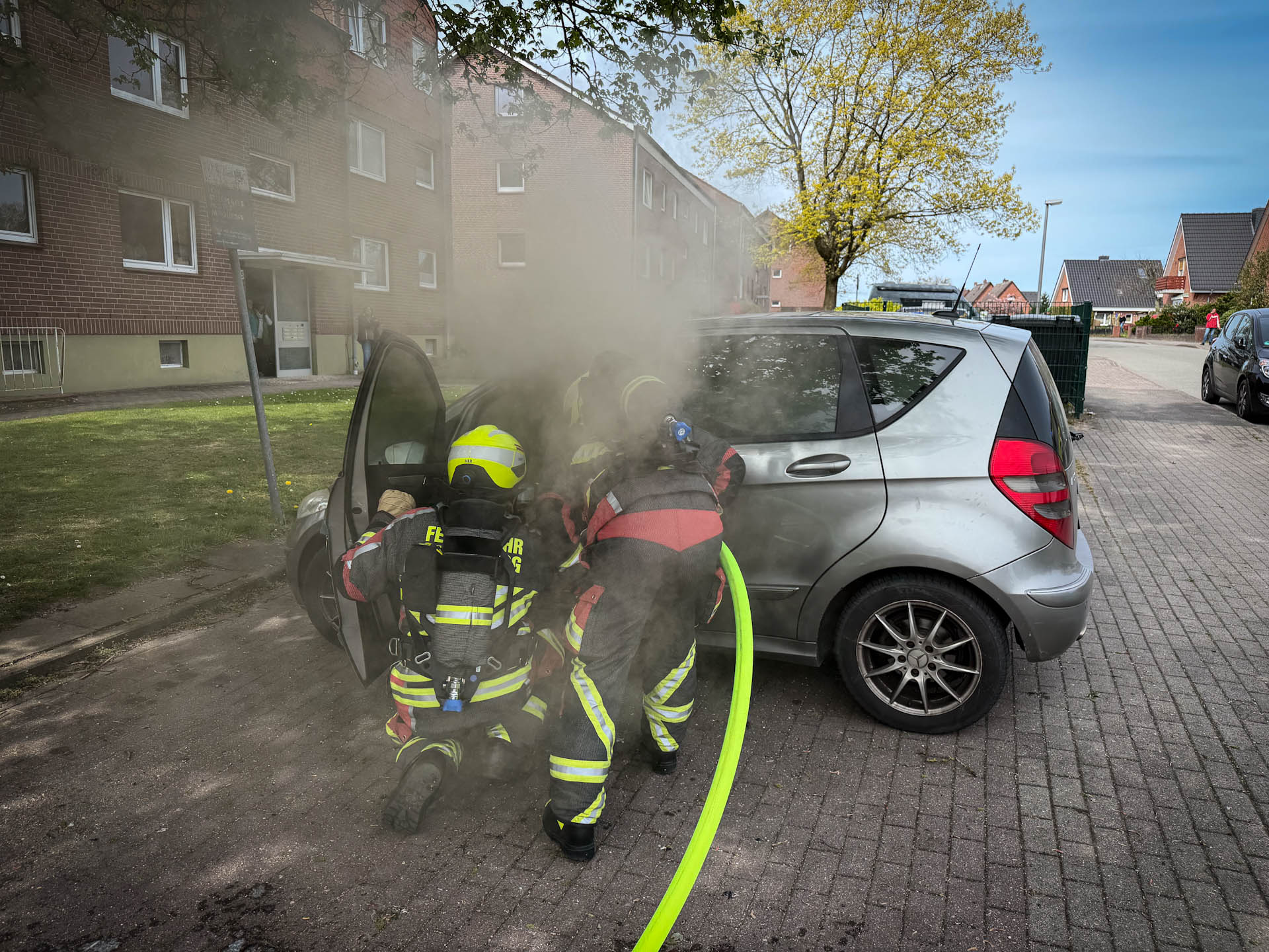 Am Nachmittag rückte die Feuerwehr Lauenburg zu einem PKW Brand aus. Am Einsatzort angekommen stand ein Fahrzeug auf dem Parkplatz abgestellt, bei dem durch die Scheiben erkannte, dass dieses komplett von Innen verraucht war. Glücklicherweise konnte der Besitzer einen Schlüssel reichen, sodass der Angriffstrupp unter Atemschutz direkt die Türen öffnen konnten. Dabei stellen sie im Innenraum des Fahrzeuges ein Kleinfeuer fest. Dieses konnte schnell mittels Kleinlöschgerät bekämpft werden, sodass der Einsatz zügig abgearbeitet werden konnte und die Einsatzstelle an Polizei und Besitzer übergeben wurde.