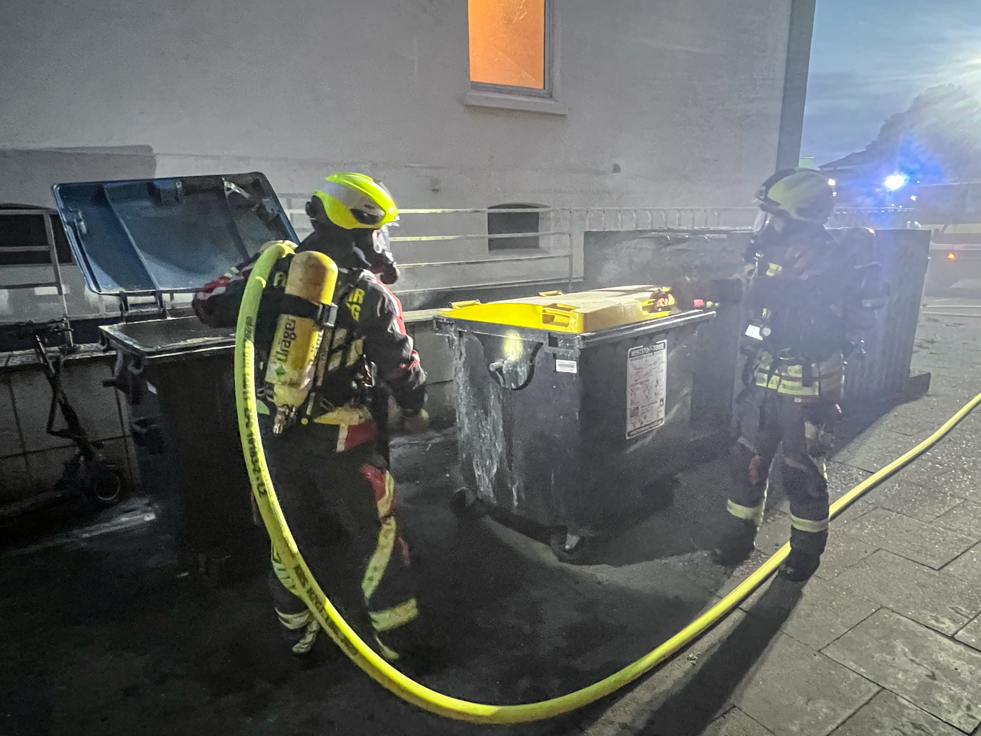 Gerade vom Dienst zurückgekehrt, waren einige Einsatzkräfte noch damit beschäftigt die Fahrzeuge aufzuklaren, da alarmierte uns die Rettungsleitstelle zu einem brennenden Papiercontainer. Demnach rückte schon