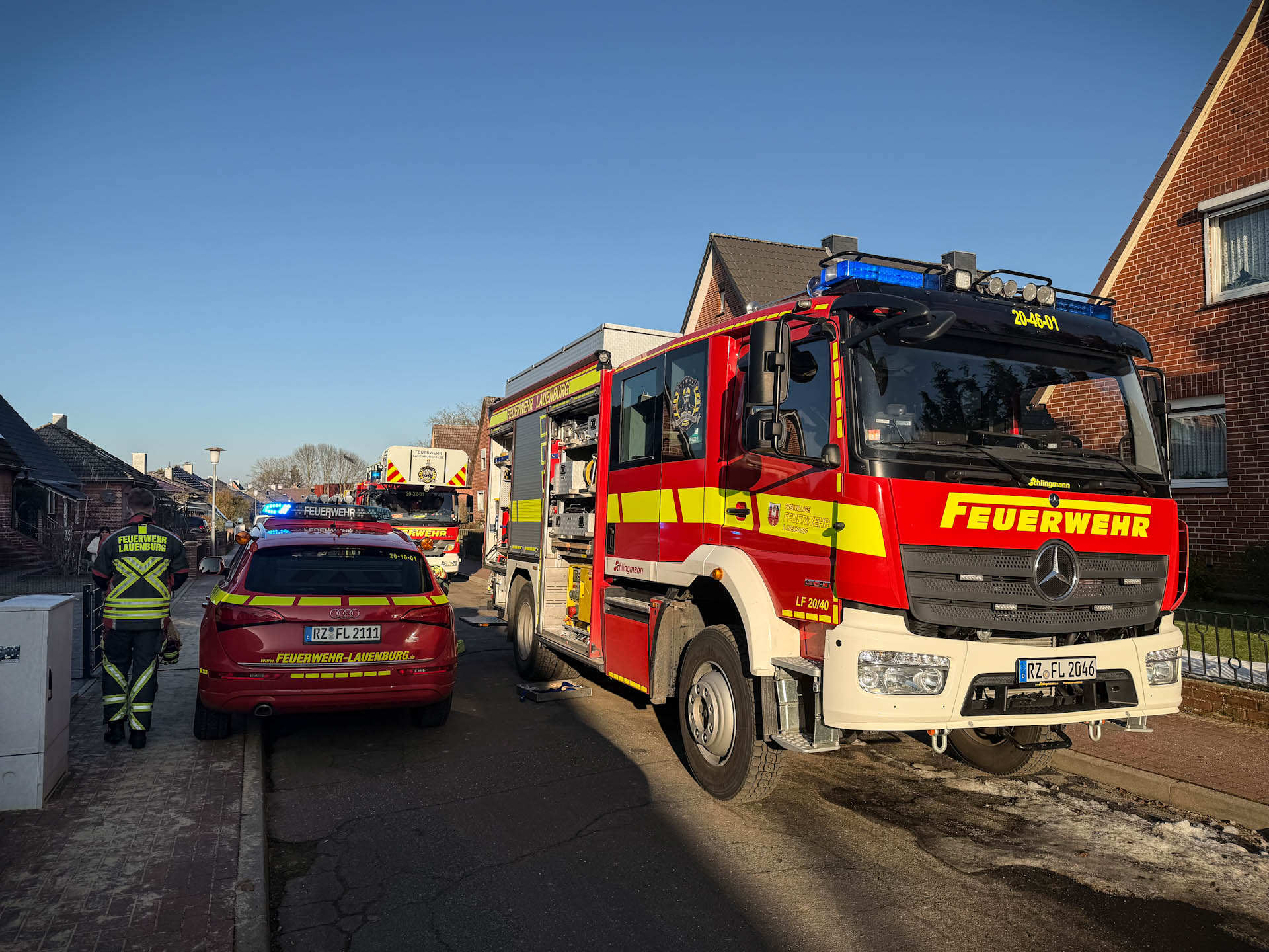 Mit dem Stichwort „Feuer – Menschenleben in Gefahr“ wurde die Feuerwehr Lauenburg heute morgen zur Unterstützung mit nach Schnakenbek alarmiert. Jedoch konnten die Lauenburger Kräfte