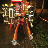 Nach anhaltendem Regen in den letzten Tagen sind die Böden der Region längst übersättigt. Kleinere Bäche und Gräben treten über die Ufer und können die Wassermassen längst nicht mehr abtransportieren. In der Ortschaft Brunstorf drohte das örtliche Klärwerk über zu laufen. Nur wenige Kilometer entfernt ließen die Regenmassen einen Dorfteich in Kollow überlaufen. Die Pumpengruppe des Kreis-Feuerwehr-Verbandes Herzogtum Lauenburg wurde zum Einsatz gerufen. Darunter auch Mitglieder aus Lauenburg, welche im Schichtbetrieb an den Hochleistungspumpen im Einsatz sind. Mit riesigen Schläuchen wird Wasser aus dem Teich gepumpt und über sehr lange Schlauchleitungen abgeleitet. Die Arbeiten werden noch längere Zeit anhalten. Die Einsatzkräfte werden durch die Betreuungsgruppen von DRK und DLRG versorgt.