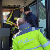 Am Donnerstagmittag wurde die Feuerwehr zum Lauenburger ZOB gerufen. Aus einem Linienbus liefen Kraftstoffe nach einem Defekt aus. Bei Eintreffen der Feuerwehr war bereits eine große Diesellache festzustellen. Der Fahrzeugführer ging sofort zur Erkundung vor. Unter dem Bus lief der Kraftstoffe weiter aus dem mit 300l Diesel gefüllten Tank. Mit einem Akku-Spreizer wurde das Leck sofort abgedichtet um einen weiteren Austritt zu stoppen. Gleichzeitig stoppte ein Trupp die Ausbreitung des Kraftstoffes mit Bindemittel. Der angeforderte Bauhof übernahm die Beseitigung des Bindemittel, kümmerte sich zusätzlich um die Dieselspur im Stadtgebiet. Bis zum Eintreffen einer Fachfirma sicherte die Feuerwehr die Einsatzstelle.