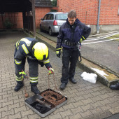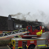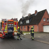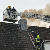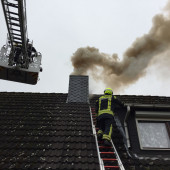 Ein Schornsteinbrand in einem Doppelhaus beschäftige am Samstagvormittag die Einsatzkräfte der Feuerwehr Lauenburg. Dichter Rauch und Flammen schlugen beim Eintreffen von Wehrführer Lars Heuer aus dem Schlot. Temperaturen von bis zu 1000° lassen einen Löschversuch mit Wasser nicht zu. Explosionsartig würde das Wasser verdampfen und Schäden ungeahnten Ausmaßes verursachen. Kurze Zeit später traf der Löschzug ein. Die Drehleiter wurde in Stellung gebracht, um den Kamin zu kehren. Nur so lässt sich der Rußbrand im Inneren reduzieren. Die Feuerwehr ist hierzu speziell mit Schornsteinfegergeschirr ausgestattet. Ein Schornsteinfeger wird dennoch als Sachkundiger hinzugezogen. Um einem Entflammen von Einrichtungsgegenständen vorzubeugen, wurde vor dem Gebäude ein Löschangriff vorbereitet. Mit der Wärmebildkamera wurde die Wand zum Kamin über alle Etagen überwacht. Rund eine Stunde nach dem Alarm war der Einsatz abgearbeitet und alle Kräfte rückten wieder ein.