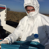 Telefonisch wurde Wehrführer Heuer am Donnerstagvormittag vom Ordnungsamt zur Amtshilfe gerufen. Ein verendeter Vogel wurde auf dem Elbe-Lübeck Kanal oberhalb der Schleuse im Eis gesichtet. Mit dem Mehrzweckboot Elbe 1 machte sich die Besatzung auf den Weg. Das schwere Arbeitsboot brach das Eis auf dem Kanal mühelos. Mit Schutzanzug ausgerüstet wurde der Kadaver aus dem Wasser geborgen. In einem Sack verschlossen und in einer Alu-Kiste gesichert wurde der Vogel dem Ordnungsamt übergeben. Weitere Untersuchungen werden nun eingeleitet. Für die Feuerwehr war der Einsatz kurze Zeit später beendet.