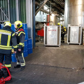 Zu einer ausgelösten Brandmeldeanlange wurde die Feuerwehr Lauenburg am Mittwochnachmittag alarmiert. Beim Eintreffen der ersten Kräfte waren die Betriebsstätten bereits vorbildlich evakuiert. Gemeinsam mit dem Ansprechpartner für die Feuerwehr erkundete Wehrführer Lars Heuer die Lage. In einem Kesselhaus gab es offenbar eine chemische Reaktion innerhalb eines Großbehälters. Über eine Öffnung an der Oberseite entwichen Dämpfe. Da sich im Behälter ein Gefahrstoff befand, entschied sich der Einsatzleiter für einen Einsatz mit Bereitstellung. Ein Schaumangriff wurde vom HLF vorbereitet. Unter schwerem Atemschutz ging ein Trupp, ausgestattet mit Messgerät und Wärmebildkamera in die Halle vor. Auffällige Messwerte konnten jedoch nicht verzeichnet werden. Die übrigen Fahrzeuge standen vor dem Objekt in Bereitstellung. Für längere Zeit wurde der Brandschutz, während der Umfüllarbeiten, welche durch die Firma durchgeführt wurde sichergestellt. Eine Gefahr für die Bevölkerung bestand zu keinem Zeitpunkt. Nach rund drei Stunden war der Einsatz beendet.