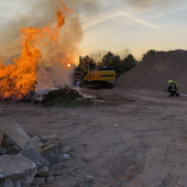 Am Samstagabend wurde die Feuerwehr in das Lauenburger Industriegebiet alarmiert. Die Besatzung eines Rettungswagens wurde auf die dichte Rauchsäule aufmerksam und informierte die Rettungsleitstelle welche daraufhin die Kräfte alarmierte. - Vor Ort brannte ein größerer Haufen Unrat, ohne das jemand in der Nähe war der diesen bewachte. Die Hitzeentwicklung war so groß, dass abgestellte Baumaschinen Schaden nahmen. - Gemeinsam mit dem LF 20 traf auch Lauenburgs Wehrführer Lars Heuer an der Einsatzstelle ein. Sofort wurde ein Löschangriff vorbereitet, bereits auf Anfahrt hatten sich die Atemschutzgeräteträger mit den Pressluftatmern ausgerüstet um sofort einsatzbereit zu sein. Zunächst wurde über ein B-Rohr mit 800l /min gelöscht, später wurden zwei weitere C-Rohre vorgenommen um die Flammen einzudämmen. Dafür kamen weitere Atemschutzgeräteträger von HLF, TLF und LF 8 zum Einsatz. Zunächst wurde die Ausbreitung gestoppt und die teure Baumaschine mit einer Riegelstellung geschützt. Anschließend konnten die Flammen bekämpft werden. Der Löschzug der Feuerwehr war über Stunden im Einsatz.