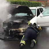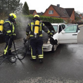 Ein brennender PKW im Stadtgebiet sorgte am Freitagmorgen für einen Einsatz der Lauenburger Feuerwehr. Bereits kurz nach der Alarmierung traf Wehrführer Heuer am Einsatzort ein, Flammen schlugen aus dem Motorraum des PKW. Als das HLF eintraf, konnte der Angriffstrupp sofort unter Atemschutz mit den Löscharbeiten beginnen. Schnell konnten die Flammen gelöscht werden. Um alle Glutnester zu erreichen, musste die Motorhaube geöffnet werden. Aufgrund der hohen Temperaturen sind jedoch Plastikteile zusammengeschmolzen sodass für die gewaltsame Öffnung das Halligan Tool genutzt wurde. Mit der Wärmebildkamera wurde der Motorraum überprüft. Schließlich wurde die Einsatzstelle an die Polizei übergeben.