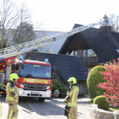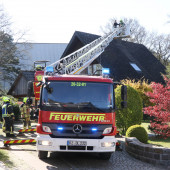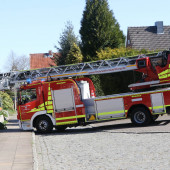 Zur Unterstützung der Feuerwehr Geesthacht rückte am Sonntagmorgen die Lauenburger Drehleiter gemeinsam mit dem TLF aus. - Ein gemeldeter Schornsteinbrand in einem Einfamilienhaus gab Anlass zur Alarmierung. Nach einem technischen Defekt konnte die Geesthachter Leiter nicht ausrücken, weshalb die Lauenburger nachgefordert wurde. Binnen 2 Minuten war das Hubrettungsgerät ausgerückt und machte sich auf den Weg in die Nachbarstadt. Dort waren die Geesthachter bereits mit Sicherung und Kerarbeiten beschäftigt. - Die in mitten eines Wohngebiet gelegene Einsatzstelle war für die Lauenburger Kräfte nicht einfach zu finden. Zahlreiche Baustellen sorgten für ein Labyrinth, sodass die Polizei den Kurzzug an der Ziegenkrugkreuzung in Empfang nahm und zur Einsatzstelle brachte. Dort angekommen hatten die Kameraden bereits alle Löschfahrzeuge in einem Nebenstraße gefahren um Platz für die Drehleiter zu schaffen. Auf dem beengten Platz wurde sie in Stellung gebracht. Mit maximaler Ausladung von 22m wurde der Schlot von oben kontrolliert. - Ein Schornsteinfeger hatte zuvor die Kerarbeiten überwacht und übernahm die Einsatzstelle.