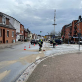 Eine Ölspur im Stadtgebiet von Lauenburg sorgte am Samstagnachmittag für mehrere Einsätze. An diversen Stellen waren Gefahrenbereiche wie Kurven und Kreuzungen mit Öl bzw. Dieselkrafstoff verschmutzt. Mit dem HLF, sowie dem TLF rückten Besatzungen aus, fuhren zunächst eine Einsatzstelle am Kreisel, später am Zob sowie an der Kreuzung am neuen EDEKA Markt an. Mit Bindemittel wurden die am stärksten verunreinigten Stellen abgestreut und die Bereiche abgesichert. Schließlich wurden die Einsatzstellen an den Bauhof übergeben.