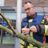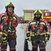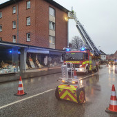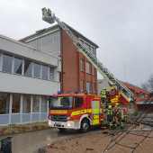 Sturmtief Ylenia zog seit dem Donnerstagmorgen über Deutschland, besonders den Norden trifft das Sturmtief hart. Mehrere Hundert Einsätze fuhren die Einsatzkräfte von Feuerwehr und THW in Schleswig Holstein. Auch die Lauenburger Kräfte rückten zu mehreren Einsätzen aus. Zunächst ging es in die Berliner Straße ein Schornstein drohte abzustürzen darunter die vielbefahrene B5 und Fußwege. Die Drehleiter wurde in Stellung gebracht. Zwei Einsatzkräte demontierten den Schornstein. Gleichzeitig kontrollierte der Stellv. Wehrführer einenen Schaden an der Gemeinschaftsschule. Teile des Daches hatten sich gelöst. Die Drehleiter rückte an um die Dachhaut zu kontrollieren. Wenig später ging es schon weiter, umgestürzte Bäume auf Straßen und Häusern forderten die Einsatzkräfte. Die starke Strömung der Elbe hatte einen Ponton losgerissen, mit Unterstützung des Wasser und Schiffahrtsamtes wurde die Gefahr beseitigt. Im starken Sturm mussten Drahtseile gelöst werden und ein Sicherungsdalben angehoben werden. Nach mehreren Stunden im Einsatz beendeten die Kräfte am Nachmittag ihren letzten Einsatz für diesen Tag.
