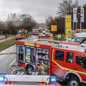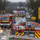 Der Löschzug Gefahrgut wurde am Sonntagnachmittag zu einem Großfeuer nach Mölln alarmiert, darunter auch der Messtrupp Lauenburg. Gegen 14 Uhr meldeten unzählige Anrufer der Integrierten Regionalleitstelle Süd in Bad Oldesloe eine massive Rauchentwicklung und Flammen aus einer Auto-Werkstatt im Möllner Norden. Sofort alarmierte die Leitstelle unter dem Stichwort „FEU 2“ ein Großaufgebot von Feuerwehrkräften. Nach kurzer Zeit trafen die ersten davon ein und meldeten: „Gebäude im Vollbrand, erhöhen auf FEU 3“. Weitere Kräfte aus dem Kreisgebiet wurden hinzugezogen. Neben der Feuerwehr Ratzeburg mit einem Wasserwerfer, dem Teleskopmastfahrzeug und mehreren Löschfahrzeugen kam auch die Technische Einsatzleitung und der Gefahrgutzug zur Einsatzstelle. Vor Ort wurden die Aufgaben verteilt. Während ein Messfahrzeug Kontrollen im Stadtgebiet durchführte, übernahmen andere Arbeiten an der Einsatzstelle. So wurde kontrolliert, in welche Abwasserschächte das kontaminierte Löschwasser abfließt. Teilweise wurden Siele mit Schachtabdeckungen versiegelt. Bis in die späten Abendstunden war die Feuerwehr im Einsatz. Das Gebäude brannte bis auf die Grundmauern nieder. Was zum Brandausbruch führte ist derzeit noch unklar.