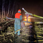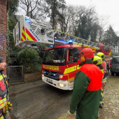 "Unwetterwarnung für Norddeutschland", nach diesen Meldungen bereiteten sich Feuerwehren im ganzen Norden auf eine einsatzreiche Nacht vor. Erstmals wurden die Amtsführungsstellen kreisweit besetzt. Die IRLS Süd stockte ihr Personal massiv auf. Am späten Freitagabend erreichten dann erste Orkanböen Lauenburg. Bäume stürzten um, Dächer wurden beschädigt. Die Leitstelle Süd übergab die Einsätze digital an die Amtsführungsstelle Lauenburg - Amt Lütau. Von dort aus wurden die Einsätze an die entsprechenden Fahrzeuge und Feuerwehren weitergegeben. So rückte zunächst die Schnakenbeker Feuerwehr zu umgestürzten Bäumen in der Gemeinde aus. Wenig später mussten auch die Lauenburger zu einem Einsatz in der Straße: "Auf der Höhe". Zahlreiche Einsatzstellen wurden über Nacht mit mehreren Fahrzeugen abgearbeitet. Bäume waren auf Häuser gestürzt, im Neubaugebiet Birnbaumkamp drohte ein Gartenhaus vom Wind zerstört zu werden. Mitten in der Nacht rückte das HLF dann noch zu einer Türöffnung aus. "Auch das gehört dazu" erklärt Lauenburgs Feuerwehrchef Lars Heuer. "Zwischen all den Unwettereinsätzen halten wir uns auch weiterhin für das "Tagesgeschäft" bereit" so Heuer weiter. Nachdem die Einsätze in den frühen Morgenstunden abnahmen, ging es bei einsetzender Morgendämmerung wieder los. Die Bäckerei Lührs aus Lauenburg hatte die Einsatzkräfte am Morgen mit einer riesigen Lieferung an Spritzgebäck überrascht. An dieser Stelle möchten wir uns für diese Wertschätzung und Unterstützung herzlich bedanken! Nach einer Stärkung ging es im Stadtgebiet und umliegenden Gemeinden weiter. Die Schnakenbeker Feuerwehr arbeitete mehrere Einsatzstellen in ihrer Gemeinde ab, während die Lauenburger ebenso wieder mit mehreren Fahrzeugen ausrückten. Wieder galt es Gefahrenstellen zu beseitigen, Straßen und Wege zu räumen. Im Nachtigallenweg drohte ein Baum auf ein Wohnhaus zu stürzen. Da die Lauenburger Drehleiter in weiteren Einsätzen gebunden war, rückte unsere Partnerfeuerwehr aus Boizenburg mit ihrem neuen Flaggschiff an. Gemeinsam wurde auch diese Einsatzstelle Hand in Hand abgearbeitet. Insgesamt wurden 19 Einsätze erledigt. Die Mitglieder der Lauenburger Feuerwehr hoffen nun auf ein ruhiges Wochenende.