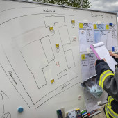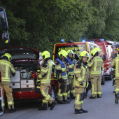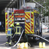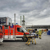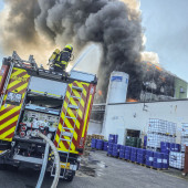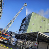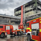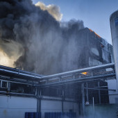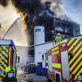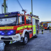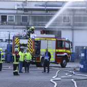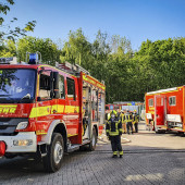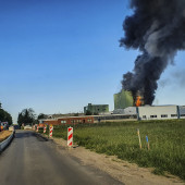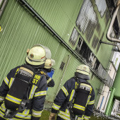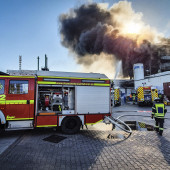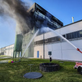 Am Freitagmorgen wurde die Lauenburger Feuerwehr zunächst unter dem Stichwort „FEU BMA“ also: ausgelöste Brandmeldeanlage, in einen Lauenburger Chemie Betrieb alarmiert. Wehrführer Lars Heuer rückte sofort mit dem KdoW aus und erkannte bereits auf Anfahrt eine dichte Rauchentwicklung über dem Werksgelände. Etwa zeitgleich alarmierte die Leitstelle unter dem Stichwort: „FEU 2“ weitere Kräfte, weil es sich um ein bestätigtes Feuer handelte. Als Einsatzleiter Heuer eintraf schlugen bereits meterhohe Flammen aus einem Produktionsgebäude. Die dichte Rauchsäule war weithin sichtbar. Das Alarmstichwort wurde erneut erhöht, um genügend Einsatzkräfte vor Ort zu haben. Vorbildlich hatten die Evakuierungshelfer der Firma die Betriebsgebäude geräumt. „Beim Eintreffen der Feuerwehr befand sich keine Person mehr im Gefahrenbereich, so dass man sich auf den Löschangriff konzentrieren konnte“, erklärt Einsatzleiter Heuer. Die ersten Löschfahrzeuge sowie die Drehleiter konnten schnell in Stellung gebracht werden. Die aufgebaute Riegelstellung zu Nachbargebäuden zeigte bis zum Schluss Erfolg. Das Feuer wurde auf einen Produktionsturm beschränkt. – Für die Löscharbeiten wurden die Feuerwehren Hohnstorf, Boizenburg, Schnakenbek, Buchhorst, Krüzen, Lanze, Lütau, Geesthacht und Schwarzenbek zur Hilfe gezogen. Zusätzlich kamen Kräfte vom LZG Süd sowie LZG Stormarn, Mecklenburg Vorpommern und Niedersachsen, dem THW und des Rettungsdienstes zur Hilfe. Unter massiven Wasser- und Schaumeinsatz konnten rasch die Flammen eingedämmt werden. Die massive Rauchentwicklung, vor welcher auch über die Warn App Nina sowie das Radio gewarnt wurde, konnte eingedämmt werden. Ein Innenangriff war zunächst nicht möglich, zu gefährlich wäre ein Wiederaufflammen der Chemikalien gewesen. Um alle Brandherde zu erreichen, musste ein Teleskopmastfahrzeug der Berufsfeuerwehr Hamburg zur Hilfe gezogen werden. – Die zahlreichen in Stellung gebrachten Wasserwerfer konnten nicht alle Flammen erreichen. – Mit dem 53m hohen Spezialfahrzeug konnten schließlich auch zunächst unerreichbare Stellen abgelöscht werden. Mit einer Drohne von der Technischen Einsatzleitung Stormarn konnte das Objekt von außen kontrolliert und weitere Brandnester ausgemacht werden. Schließlich ging ein Trupp unter Atemschutz zum Innenangriff vor. Mit einem Schaumrohr wurden gezielt letzte Flammen abgelöscht. Nach rund 10 Stunden konnte der Leitstelle „Feuer aus“ gemeldet werden. Wie es zu dem Brand kam, muss nun ermittelt werden.
