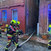 Am Dienstagabend wurde die Feuerwehr in die Lauenburger Altstadt alarmiert. Grund war ein Feuer, das in einer Werkstatt eines Altstadthauses ausgebrochen war. Anwohner bemerkten die Rauchentwicklung und Flammen in der ehemaligen Schmiede. Sofort riefen sie über die 112 die Feuerwehr zur Hilfe. Gleichzeitig versuchten sie mit Feuerlöschern und einem Gartenschlauch die Flammen einzudämmen. Nur wenige Minuten nach der Alarmierung war der Löschzug zur Stelle, der Angriffstrupp ging unter Atemschutz mit dem Schlauchpaket zur Brandbekämpfung vor. Die stark verrauchte Werkstatt musste über eine enge Twiete betreten werden. Im Inneren mussten sich die Einsatzkräfte durch tasten zurechtfinden. Der dunkle Rauch hatte die Sicht unmöglich gemacht. Schnell konnte das Feuer unter Kontrolle gebracht werden. Vor dem Gebäude waren inzwischen weitere Einsatzfahrzeuge eingetroffen. Der Angriffstrupp vom HLF ging zur Erkundung in das Gebäude vor, öffnete Fenster, um eine Belüftung vorzubereiten. Gleichzeitig wurde ein Überdruckbelüfter in Stellung gebracht. Nachdem das Feuer gelöscht war, konnte mit der Entrauchung des Gebäudes begonnen werden. Dazu wurde in der schlecht zugänglichen Werkstatt die Hydro-Mechanische Entrauchung und für den Wohnbereich eine Überdurckbelüftung gewählt. Schnell stellte sich ein Erfolg ein. Die unter Atemschutz eingesetzten Kräfte mussten ihre durch Brandrauch beaufschlagte Kleidung an der Einsatzstelle ablegen. Zu groß ist das Risiko die krebserregenden Stoffe zu verschleppen. In der Elbstraße rüstete sich der Angriffstrupp auf offener Straße ab, legte die verschmutzte Kleidung ab und zog sich Jogginganzüge über. Die Kleidung wurde in Säcke verpackt sie geht nun zur Reinigung zu einer Wäscherei. Nachdem der Brandrauch aus dem Gebäude abgezogen war, konnte die Einsatzstelle an Polizei und Eigentümer übergeben werden. Durch das beherzte Eingreifen der Anwohner konnte vermutlich schlimmeres verhindert werden. Dennoch appellieren wir: Bringen Sie sich nicht selbst in Gefahr! Wählen Sie schnell die 112 und fordern Sie Hilfe an. Bringen Sie sich und andere in Sicherheit. Wie es zum Feuer kam, ist unklar, die Polizei hat die Ermittlungen übernommen.