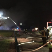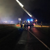 In der Nacht von Mittwoch zu Donnerstag wurde die Feuerwehr Lauenburg mit dem Stichwort "Dachstuhlbrand in voller Ausdehung" kurz nach Zwölf zur Unterstützung nach Echem alarmiert. Dort waren schon mehrere Feuerwehren der Samtgemeinde Scharnebek im Einsatz und forderten die Lauenburger Kräfte speziell wegen der Drehleiter nach. Vor Ort brannte die örtliche Grundschule samt Sporthalle in voller Ausdehnung. Kurz nach Alarmierung rückten von der Wache an der Reeperbahn Drehleiter, Kommandowagen und das Tanklöschfahrzeug richtung Niedersachsen aus. Am Einsatzort angekommen wurde die Drehleiter auf der Ecke der brennenden Sporthalle in Stellung gebracht. Aus einem Tiefbrunnen wurde dann mit Hilfe des Tanklöschfahrzeuges die Wasserversorgung für das Wenderohr der Drehleiter hergestellt. Über dieses wurde dann von Oben die Brandbekämpfung eingeleitet. Danach unterstützten zwei Angriffstrupps des TLF im rückwärtigen Bereich der Schule die Hohnstorfer Feuerwehrkräfte bei den Löscharbeiten. Nachdem das Feuer großteils gelöscht war, konnten Lauenburgs Feuerwehrleute gegen drei Uhr Nachts die Einsatzstelle verlassen. Die Nachlöscharbeiten der Glutnester werden wohl noch bis in die Morgenstunden anhalten. Was zur Brandursache führte ist bisher noch unklar, die Polizei hat die Ermittlungen aufgenommen.