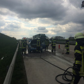 Am Freitag dem 08. April hatten sich ein paar Kameraden der Feuerwehr Lauenburg auf den Weg nach Dissen gemacht, um dort ein zur Reparatur- und Umbaumaßnahmen befindliches Fahrzeug bei der Firma Schlingmann abzuholen. Auf dem Rückweg kamen sie mit dem HLF auf der Bundesautobahn 1 auf der Höhe Anschlussstelle Vechta an einem brennenden Fahrzeug vorbei. Die Autobahnpolizei war bereits vor Ort und hatte mit einem Pulver Feuerlöscher versucht den Brand im Motorraum zu bekämpfen, vergeblich. Nach Absprache mit den Beamten baten Lauenburgs Feuerwehrleute ihre Unterstützung an. Unter Atemschutz wurde der sogenannte Schnellangriff vorgenommen und mit dem Halligan-Tool die Motorhaube geöffnet. Nachdem der Brandherd nun frei lag, konnten die Flammen schnell gelöscht werden, noch bevor die zuständige Feuerwehr die Einsatzstelle durch den Rückstau erreichen konnte. Als die örtliche Feuerwehr Bakum eintraf, wurde die Einsatzstelle an diese übergeben. Mit der Wärmebildkamera suchten die Einsatzkräfte aus Barkum noch nach kleineren Brandnestern und löschten diese ab. Daraufhin wurde sich bei den Feuerwehrleuten aus Lauenburg für die Mithilfe bedankt, welche ihre fahrt Richtung Heimatstadt nun fortsetzen konnten.