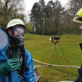 Ausströmendes Chlorgas sorgte am Montagabend für einen Großeinsatz der Feuerwehr im Lauenburger Schwimmbad. „Gegen 18:30 Uhr wurden wir alarmiert“ erklärt Heiko Raubenheimer, Fahrzeugführer des ersteintreffenden Fahrzeuges. Binnen kürzester Zeit rückte ein Hilfeleistungszug in Richtung der Unglückstelle aus. Ersten Angaben zufolge wurde vor Ort ein Techniker im Gefahrenbereich vermisst. Noch auf der Anfahrt rüstete sich der Angriffstrupp mit schwerem Atemschutz aus, um eine Crash-Rettung durchzuführen. Auch die Teilkomponente des LZG war mit vor Ort. Mit Messgeräten wurde die Konzentration gemessen und die Ergebnisse der Einsatzleitung übergeben. Die Arbeit an der Einsatzstelle wurde weiterhin durch Ausstörmende Gase behindert. Zu Beseitigung der Gefahr rückte zusätzlich der Messtrupp Schwarzenbek an. Mit vier Spezialkräften der Einheit, wurde in schweren Chemiekalien-Schutzanzügen in das Innere des Gebäudes vorgegangen. Nach kurzer Zeit konnten die defekten Ventile ausgemacht- und abgedreht werden. Nach Rund zwei Stunden kam dann die Meldung: „Übungsende“ – Der Stv. Wehrführer Dennis Lühr hatte die Alarmübung gemeinsam mit den Versorgungsbetrieben Elbe ausgearbeitet. Mit dem Ergebnis der Übung war er zufrieden. Ein besonderer Dank ging an die auswärtigen Kräfte aus Schwarzenbek, aber natürlich auch an die eigenen Männer und Frauen seiner Wehr.