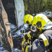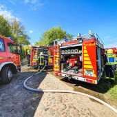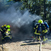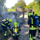Zur Unterstützung der Feuerwehr Krüzen wurde am Montagvormittag die Lauenburger Feuerwehr alarmiert. In der Feldmarkt der Gemeinde brannte ein Kleintransporter der Stadtwerke in voller Ausdehnung. Schnell waren die Feuerwehren aus Krüzen und Schnakenbek vor Ort. Zwei Trupps gingen unter Atemschutz mit Schaum gegen die Flammen vor. Jedoch gingen die 600l Löschwasser schnell zu Neige. Frühzeitig entschied sich der Einsatzleiter deshalb die Feuerwehr Lauenburg mit wasserführenden Fahrzeugen nachzufordern. Mit dem LF 20 (4000l,) dem TLF (2500l) und dem HLF (1600l) rückten die Lauenburger an. „Gern unterstützen wir so die Schlagkraft unserer Nachbarwehren“ sagt Wehrführer Lars Heuer. Mit einer Wärmebildkamera suchte einer der Trupps nach Glutnestern, ein weiterer löschte die Flammen mit einem Schaum-Wasser Gemisch ab. Über eine B-Leitung wurde der Tank des LF aus Krüzen wieder aufgefüllt sodass für die Nachschau wieder ausreichend Wasser bereitstand. Geistesgegenwärtig rettete ein Arbeiter noch hochwertige Messgeräte aus dem brennenden Fahrzeug und brachte sich anschließend selbst in Sicherheit. Verletzt wurde er dabei nicht. Schließlich konnten die Lauenburger Fahrzeuge wieder einrücken.